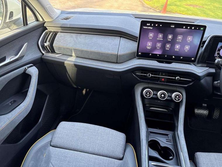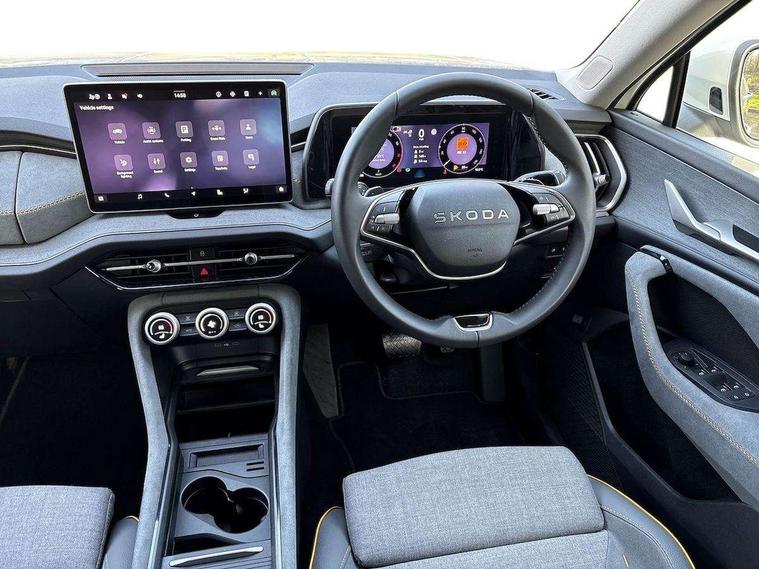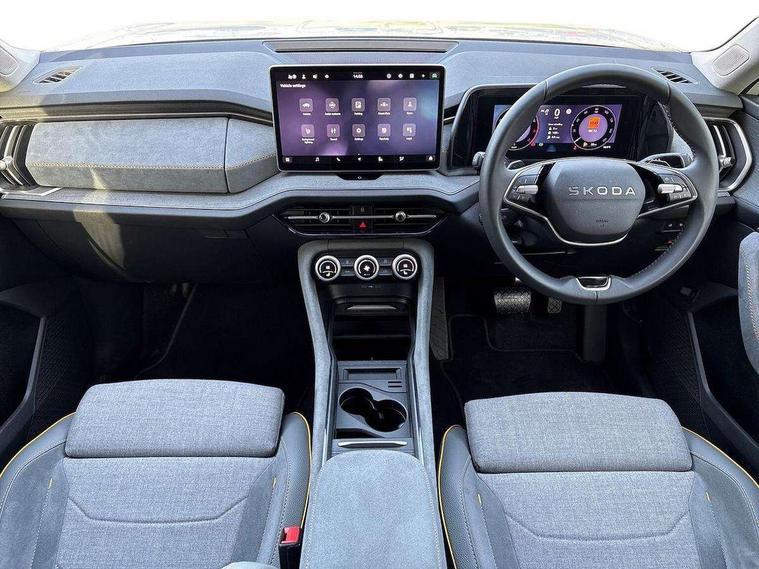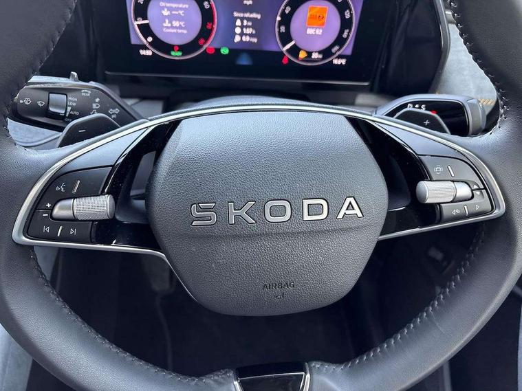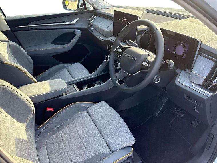 13" satellite navigation touchscreen display, Blind spot detection with door exit warning, Bluetooth system, ChatGPT functionality, Driver alert - Fatigue and drowsiness monitor, Dry display cleaner, Emergency call, Front and rear parking sensors, Front cross traffic assist, Lane assist, PAS, Rear traffic assist, Rear view camera, Tailgate unlocking from outside, Traffic sign recognition, USB C Port x 2 in front centre console, Virtual Cockpit - 10.25" digital display, Voice control system, Wireless charging for two smartphones (15W) with cooling function, Wireless SmartLink for Apple CarPlay and Android Auto, Stop/start function, 2x USB-C in the rear, 8 Speakers, DAB Digital radio, Aero front windscreen wipers with intermittent function, All weather light, Auto dimming rear view mirror, Black wheel arch surrounds, Body colour bumpers, Body colour door mirrors and handles, Cornering light and poor weather light, Electric folding /adjustable/separted heated/folding door mirrors, auto dimming with boarding sports and memory function, Electric front and rear windows, Exterior black decorative trims, Heat insulating glass in windshield, Heated rear window, Ice scraper in fuel tank cap, Invisible tailpipe, LED daytime running lights, LED front fog lamps, LED Headlights, LED rear fog light, LED rear lights, LED third brake light in rear spoiler, Light assistant with automatic headlight control and coming home feature, Logo projection in door mirrors, Rear roof spoiler, Rear side wing doors, Rear window wiper, Safety reflectors on front and rear doors, Unique dark chrome design logo on alloy wheels, Window control switches with black trim, Windscreen wipers with rain sensor, Without engine designation, 1.5l bottle holder points in all door, 1x centre rear reading light, 2 seat bench in 3rd row, 3 configurable smart dials with 32mm coloured display, 3 seat bench in 2nd row, 4 foldable roof handles with rear coat hooks, Ambient interior lighting - Dashboard, front-door stowage compartments, front and rear door panels and footwell lighting, Automatic gear selector on steering column, Chrome interior door handles, Driver/front passenger reading lights, Fabric headlining, Fixed bench 40:60:40 split folding backrests, Front and rear floor mats, Front centre armrest with jumbo box storage compartment, cup holder and 12V socket, Height adjustable front headrests, Isofix child seat fittings in outer middle row rear seats and front passenger with top tether, Manual height adjustment for front passenger seats and thigh support extender, Manual lumbar support for front passenger seat, Manually adjustable steering column, Pollen filter, Rear centre armrest with cupholders, Rear seat boot backrest release, Single front passenger seat, Skoda lettering on steering wheel, Storage pocket including mobile phone pockets on the backs of the front seats, Sunvisors with illuminated vanity mirrors, Three rear height adjustable headrests, Ticket holder on A Pillar, Tri zone climate control, Umbrella in door panel x1 made from sustainable materials, Upper and lower glovebox with card holder and coin compartment, USB C port by rear view mirror for charging only (15W), Variable boot floor, Auto door release and activation of warning lights in the event of an accident, Driver and front passenger airbag with knee airbag and front passenger airbag deactivation, Electric child locks, Electronic parking brake, ESC (incl. ABS+EMD+MSR+ASR+EDL+HBA+DSR+RBS+ESBS+MCB+TSA+XDS), Front assist with braking reaction to vehicles, pedestrians and cyclists, Front disc brakes, Fuel cut off safety device, Height adjustable front 3 point seatbelts + pretensioners, Hill hold assist, Junction assist with automatic emergency braking, Rear disc brakes, Safety vest holder in door, Seat belt reminder for all seats, Three point rear seat belts, Two tone horn, Tyre pressure monitor, Alarm with interior monitoring and tilt sensor with safe function, Anti-theft wheel bolts, Immobiliser, Remote central locking with 2 keys, Breakdown kit, Tool kit,