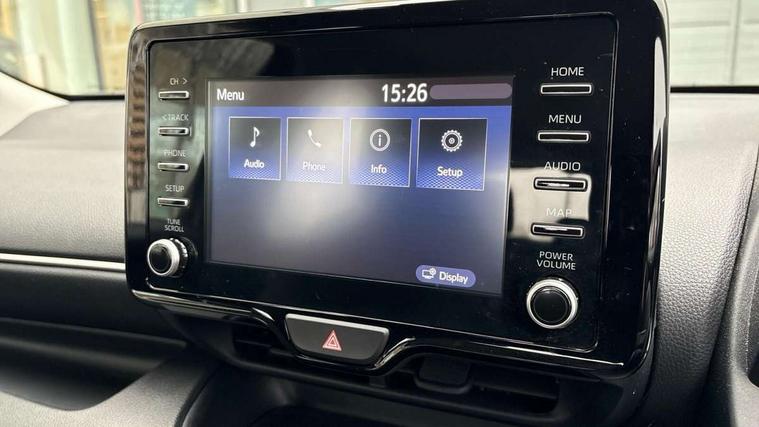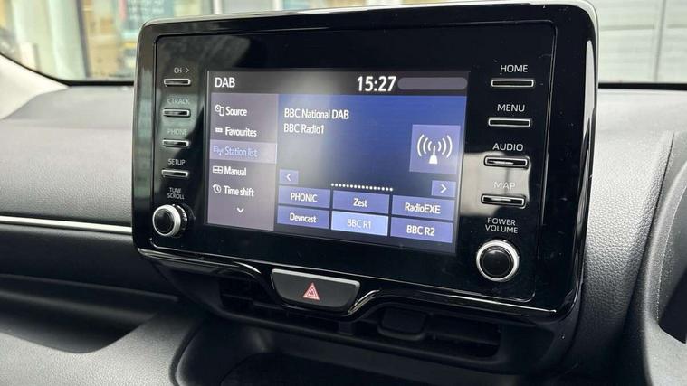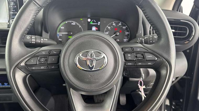 4.2" coloured TFT multi information display with analogue speedometer, Adaptive cruise control, Adjustable speed limit with speed warning, Bluetooth connectivity, E-call, Electric power steering, Hybrid energy display, Multi information display switches on steering wheel, Reversing camera, Smartphone integration with Apple CarPlay and Android auto, Smartphone integration with Apple CarPlay/Android Auto, Tailgate, Voice recognition, Vehicle Stability Control (VSC), 4 speakers, 9" Multimedia touch display, Toyota Touch 3 system with DAB radio, USB connection, Acoustic windscreen glass, Auto windscreen wipers, Automatic headlights, Body coloured door mirrors, Bulb indicators, Chequered front grille, Daytime running lights, Electric adjustable heated door mirrors, Follow me home headlights, Front auto power windows with anti jam protection, Front halogen fog lights, Halogen projector headlights, LED High mounted stop lamp, Manual headlight levelling, Rain sensor, Rear auto power windows with anti jam protection, Rear side wing doors, Rear spoiler, Rear wiper, Shark fin antenna, Turning signal integrated indicators in door mirrors, Variable front intermittent wipers, 3 adjustable rear headrests, 3 seat bench in 2nd row, 3 spoke leather steering wheel, 60/40 split folding rear seat, Active headrests, Adjustable boot height, Auto air conditioning, Coat hooks in rear grab handles, Cup holders (2 front & door), Data Communication Module (DCM) connected services, Fabric upholstery, Front armrest, Glovebox, Grey roof lining, Height adjustable driver's seat, Isofix seat fixing, Leather gearshift, Pollen filter, Shopping bag hooks, Single front passenger seat, Tilt/telescopic steering column, 3 point seatbelts on all rear seats, ABS+EBD+Brake assist, Electronic parking brake, Emergency brake light system (EBS), Front passenger airbag on/off switch, Front seatbelt reminder, Hill start assist control (HAC), Rear child proof door locks, Rear seat belt reminder, Supplemental Restraint System (SRS) 8 airbags: Driver & passenger's airbags, dual side curtain airbags, side impact airbags, front centre airbag, Toyota Safety Sense 3 with over the air updates, Tyre pressure warning system, 2x Master key, Alarm/immobiliser, Remote powered central double locking doors, Soft touch instrument panel, Space saver spare wheel,