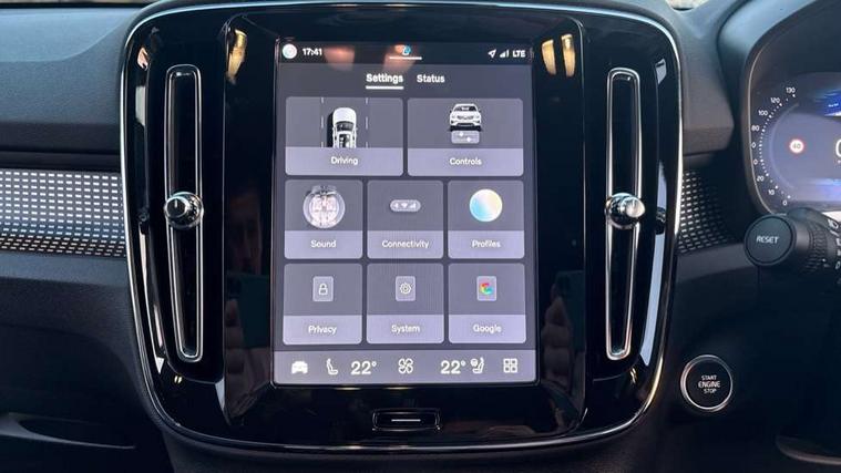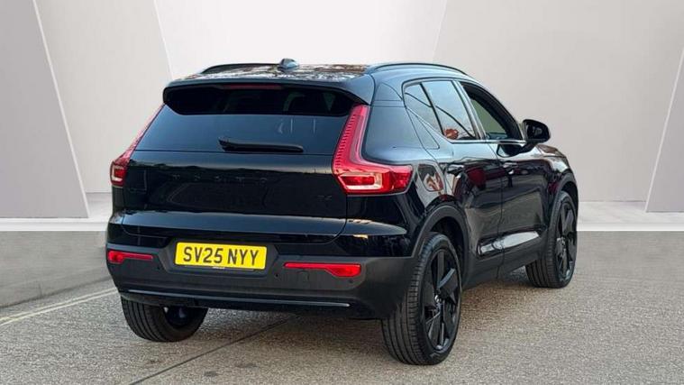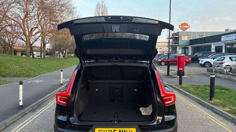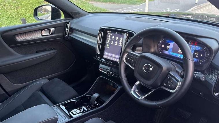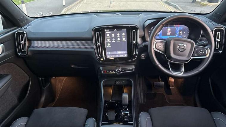 12.3" Progressive Driver Display, 9" centre console portrait touch screen, Adjustable steering wheel force, Android auto (Wired), Apple carplay (wired), Bluetooth handsfree system, Driver alert control, Driver assistance (pilot assist and adaptive cruise control), Driver awareness - Blind spot information system with steer assist, cross traffic alert with autobrake and rear collision warning and mitigation, E-call, Front park assist, Google automotive services - Enabled entertainment apps, navigation with google maps, voice recognition with google assistant, Hands free power tailgate, Intelligent speed assistance, Lane keeping aid, Oncoming Lane Mitigation, Rear park assist, Speed sensitive steering, Volvo cars services with app - Driving journal, emergency and breakdown call, engine remote start, remote door locking/unlocking and vehicle dashboard, Wireless/Inductive Mobile Phone Charging, Automatic transmission with start/stop and manual change functions, Dynamic chassis, DAB Digital radio, Steering wheel mounted remote controls, Adaptive brake lights with high level LED brake lights, Auto dimming feature for exterior door mirrors, Auto dimming interior mirror, Automatic headlamp levelling, Automatic LED Headlights + Active high beam incorporating daytime running lights, Colour coordinated auto folding and heated power door mirrors, Dark tinted windows - rear side windows and rear screen, Front aluminium tread plates, Front and rear electric windows, High gloss black front and rear skid plate, High gloss black front bumper deco, High gloss black front grille strikethrough and ironmark, High gloss black rear model, engine and volvo logo badges, High gloss black window trim, Home safe and approach lighting, Integrated roof rails in high gloss black, LED front fog lights, Puddle lights, Rain sensor with automatic windscreen wiper activation, Rear side wing doors, Rear wiper, Roof antenna, Roof spoiler, Visible VIN plate, 12V socket in front tunnel console and luggage compartment, 2-Zone electronic climate control with CleanZone air quality system and pollen filter, 3 seat bench in 2nd row, 3 Spoke tailored steering wheel with chrome trim, 60/40 versatile split folding rear seat, Centre console cupholders and storage, Charcoal headlining, Connect textile/microtech upholstery, Flexible load floor and grocery bag holder, Floor mats, Front cabin courtesy lights, Front door pocket, front cupholder, ambient front door, rear reading, rear courtesy, instrument panel and tailgate lighting, Front footwell illumination, Front headrests, Front reading lights, Front seat cushion extensions, Front side step illumination (under door), Glovebox bag hook, Heated front seats, Height adjustable passenger seat, Height/reach adjustable steering column, High gloss centre tunnel deco, Illuminated glovebox, Illuminated luggage compartment, Illuminated vanity mirrors + ticket holder, Integrated waste bin, Isofix attachments on outer rear seats, Load cover, Load protection net, Multi directional lumbar support for driver and passenger seat, Power driver seat with memory + exterior mirrors memory, Rear armrest with cupholders, Rear headrests, Single front passenger seat, Underfloor cargo storage, Climate pack without heated front seats - XC40, 3x3 point rear seatbelts, City safety with steering support with Pedestrian + cyclist + front collision warning with full auto brake and rear auto brake, Driver and passenger airbags, Drivers knee airbag, Electronic parking brake with auto hold, First aid kit, Front and outer rear seatbelt reminder and pretensioners, Front seats SIPS airbags, Hill descent control, Hill start assist, Inflatable curtain, Passenger airbag cut-off device, Power child locks on rear doors, Road sign information display, Run off Road Protection, SIPS (Side Impact Protection System), Slippery road and hazard light alert, Stability and Traction Control with Spin control, Engine Drag Control and Corner Traction Control, Tyre pressure monitoring system, Vehicle deceleration control with Anti-lock Brake System, Electronic Brake Distribution and Emergency Brake Assist, Warning triangle, WHIPS whiplash protection system - front, 2 x Key integrated remote control central locking including with deadlocking system and auto open/close windows, Anti-theft alarm including immobiliser/volume sensor + level sensor, Keyless drive includes keyless entry and keyless start, Locking wheel nuts, 20" 5 spoke high gloss black alloy wheels,