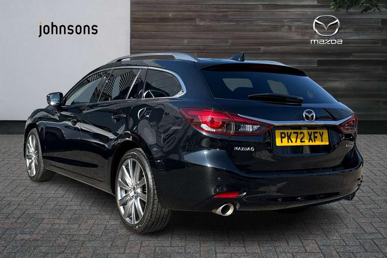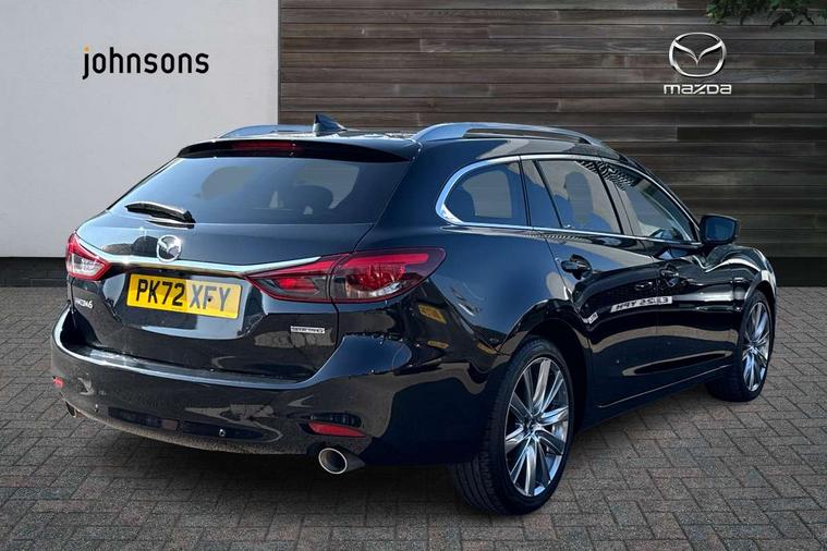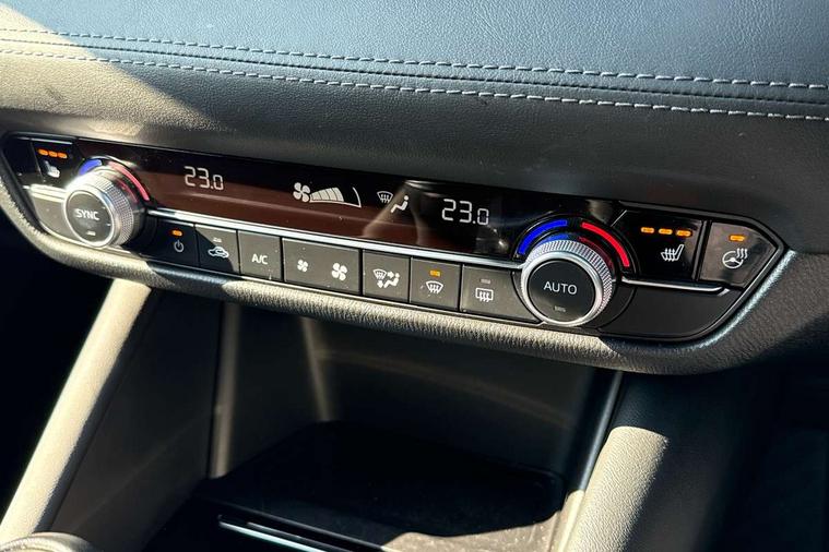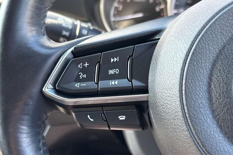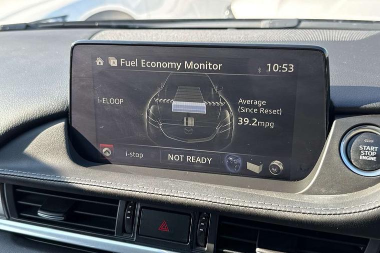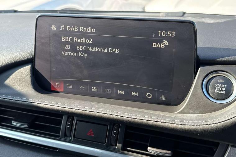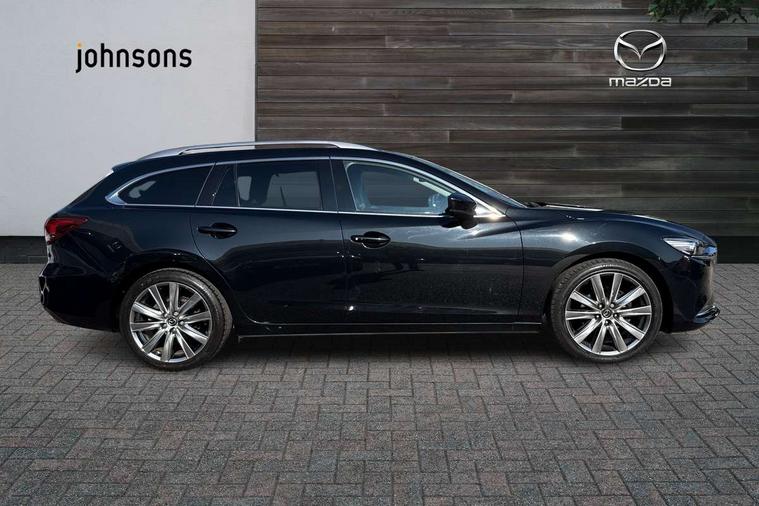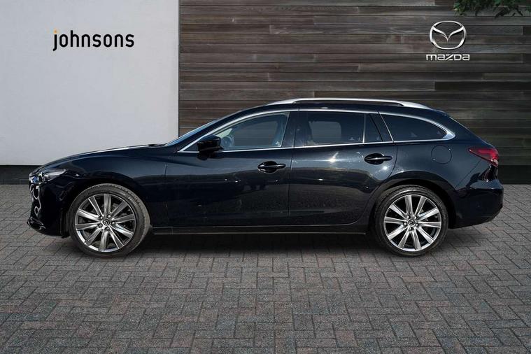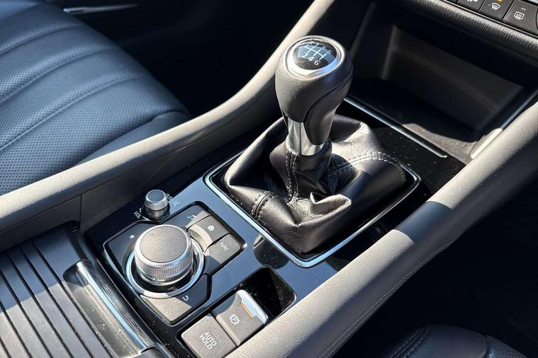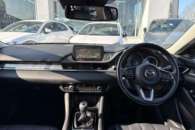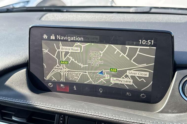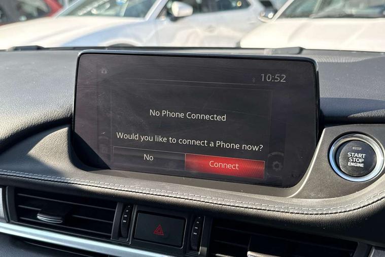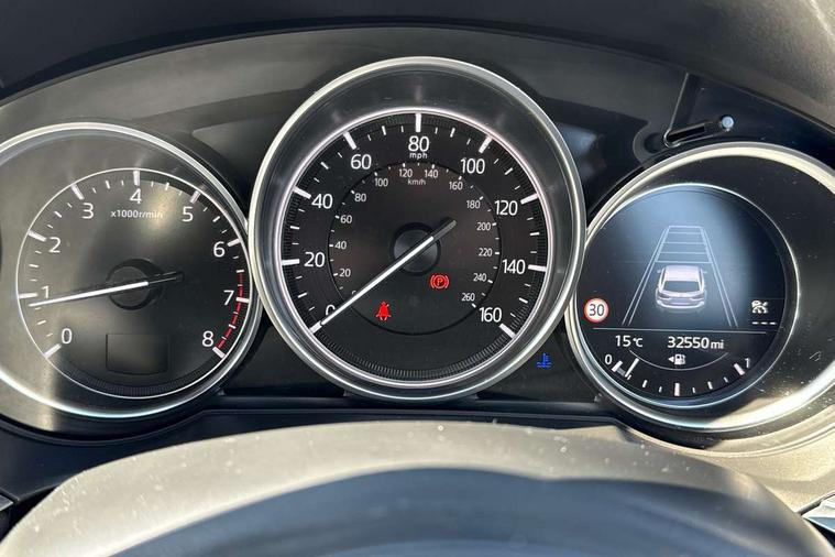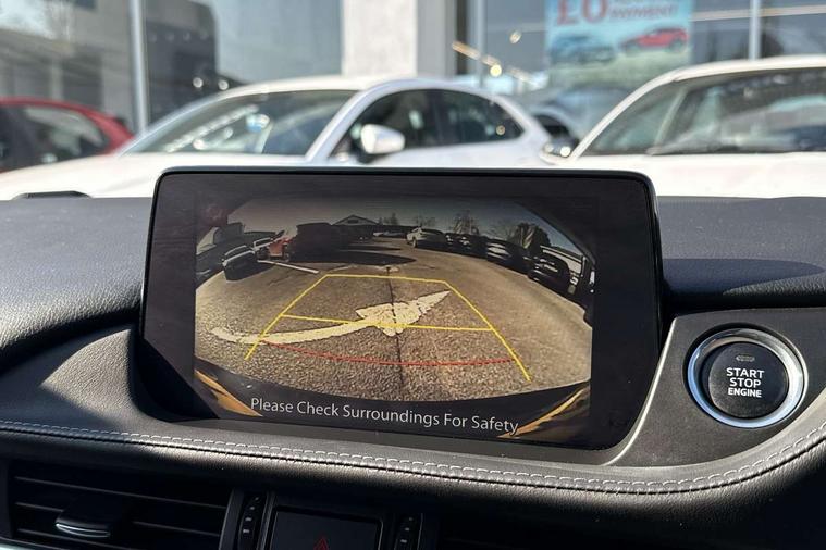 8" touchscreen with multimedia commander, Adjustable speed limiter, Audio transfer from bluetooth devices, Black, soft touch dashboard panel, Blind spot monitoring with rear cross traffic alert, Bluetooth connectivity with voice control, Colour head up display, Colour TFT display with speed, traffic signs and cruise control information, E-call, Electric power steering, Emergency stop signalling system, Engine start/stop button, Front and rear parking sensors, Intelligent speed assist, Lane keep assist system (LAS) with Lane departure warning system (LDWS), Radar cruise control, Reversing camera, Satellite navigation system with european maps, Service indicator, Tailgate, Traffic sign recognition, Trip computer, Wireless Apple CarPlay and wired Android Auto, I-ELOOP, i-stop, 2 USB ports, Additional USB connection in rear, Auxiliary input socket, Mazda Multimedia System - AM/FM/DAB radio, MP3 with 11 Bose speakers, Steering wheel mounted audio controls, 3rd brake light, Adaptive front lighting system, Auto dimming rear view mirror, Body colour door handles, Body colour rear roof spoiler, Body coloured door mirrors, Body coloured rear bumper, Chrome finish signature wing, Coming/leaving home lighting function, Dual chrome exhaust, Dusk sensitive headlamps, Electric front/rear windows/one touch facility, Electrically adjustable/heated/auto power folding door mirrors with integrated indicators, Front body coloured with bright lower mouldings, Front, rain-sensing with adjustable sensitivity and speed wipers, Gloss black grille inserts, High beam control, Intermittent rear wash/wipe, LED auto leveling headlights, LED front fog lights, Privacy glass, Rear bumper with black lower mouldings, Rear fog lights, Rear side wing doors, Roof rails, Scuff plates, Shark fin antenna, Signature LED daytime running lights, Windscreen wiper de-icer, 12V power socket in centre console, 3 height adjustable rear headrests, 3 seat bench in 2nd row, 60/40 split folding rear seat, Auxiliary power socket in luggage area, Driver seat with power slide, recline, height and lumbar adjustment with memory, Driver, Front passenger and two rear grab handles with coat hooks, Driver/passenger sunvisors with ticket holders + vanity mirrors, Dual zone climate control, Folding rear centre armrest with USB input, Front and rear courtesy lamps, Front armrest with storage bin, Front centre storage with two cupholders, Front driver and passenger seatback pocket, Front passenger and driver door pockets, Front passenger seat with power slide, recline and height adjustment, Gear shift indicator, Heated front seats, Heated steering wheel, Illuminated glovebox with lock, Interior incandescent lighting, Isofix rear child seat fastenings, Karakuri tonneau cover, Leather upholstery, Leather wrapped gearshift, Leather wrapped steering wheel, Light roof lining, Luggage compartment lighting, Luggage compartment power outlet, Rear air vents, Roof mounted sunglasses holder, Single front passenger seat, Tilt/telescopic adjustable steering wheel, 3 point ELR front seat belts, 3 rear 3 point seatbelts with ELR, ABS + EBD + EBA, Active bonnet, Active front headrests, DSTC-Dynamic Stability and Traction Control, Electronic parking brake with auto hold, Front Advanced Smart City Brake Support (SCBS), Front and rear curtain airbags, Front dual stage driver and single stage front passenger airbags, Front passenger airbag cut off switch, Front side airbags, G-Vectoring control plus, Height adjustable front seatbelts with pre-tensioners and load limiters, Hill hold control, Manual child lock in rear doors, Seatbelt reminder front and rear, Tyre pressure monitoring system, Automatic door locking, Deadlocking system, Remote central locking, Smart keyless entry, Thatcham category 1 alarm + immobiliser, Vinyl leather door panel trim, 19" Bright alloy wheels, Tyre repair kit,