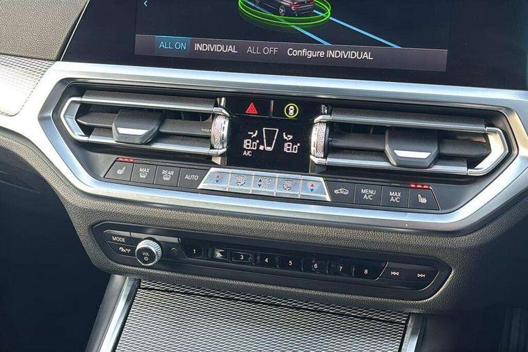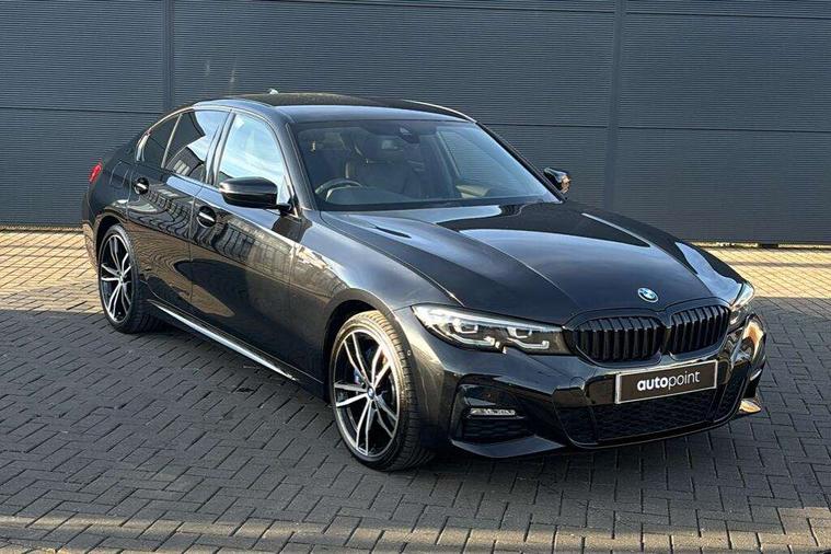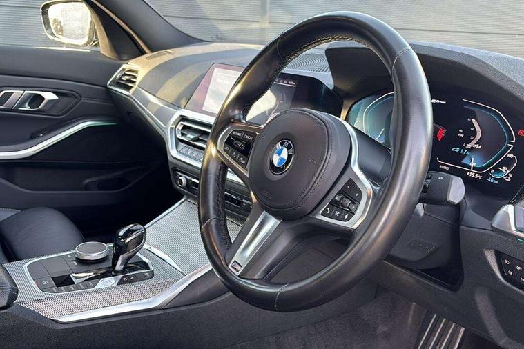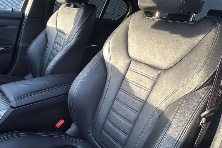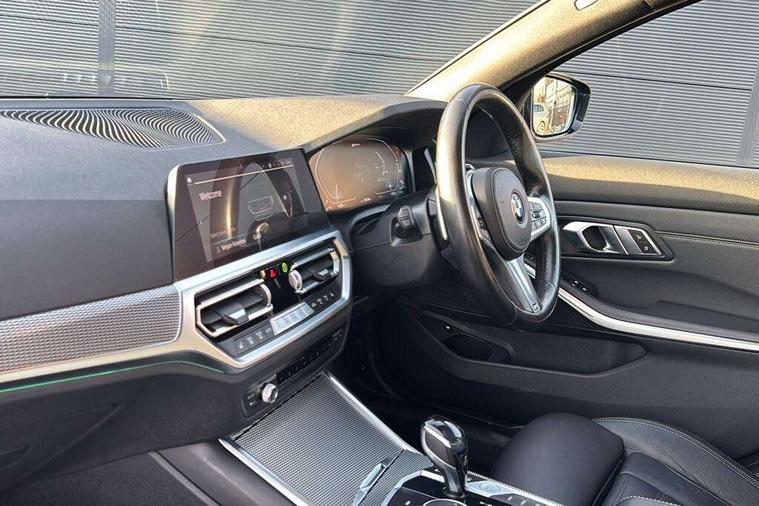 Active guard plus, Attentiveness assist, Auto start-stop, Bluetooth hands free facility with USB audio interface with audio streaming, BMW Live Cockpit Professional Nav with 12.3" instrument display + 10.25" display, Intelligent Voice Assist, BMW OS 7, HDD, 2USB, 4G LTE connect, BMW service history, BMW Teleservices, Brake pad wear indicator in front and rear, Check Control warning system for monitoring of lights and door/luggage compartment open warning, Condition based service, Cruise control with brake function + speed limiter, Electric power steering with Servotronic steering optimised at all speed ranges, iDrive controller on centre console, Instrument cluster with speedometer with mph readout, tachometer, fuel gauge and oil temperature gauge, Integrated owners handbook, Oil sensor for level and grade, warning by check control system, On board computer - average speed+fuel consumption, service interval, clock/date, odometer/trip meter, outside temperature display and ice warning, Optimum shift indicator, Personal Profile - automatic lock when driving away selectable, Balanced 50/50 weight distribution, Battery cut-out switch, Charging cable - Mode 2, Drive performance control - ECO PRO, comfort and sport modes, Petrol Particulate Filter, Stroke dependent dampers, DAB tuner, Electronic service booklet, Stereo speaker system with 2 mid range speakers in the front door trims and rear parcel shelf + 2 central bass speakers underneath the front seats, Acoustic glazing, Active airstream chrome frame kidney grille with 8 high gloss black vertical slats, Automatic headlight beam throw control with load dependent regulating reaction, dynamic compensation of braking dive and acceleration squat, Black roof mouldings, Body colour door handles, Body colour front and rear bumpers, Body colour fuel filler flap, Body colour mirror caps with bottom segment in matt black, Dynamic brake lights, Electric windows - front and rear, with open/close fingertip control, anti-trap facility and comfort closing, Exhaust tailpipe - split left and right, Exterior mirrors - electrically folding with anti-dazzle, Fading support, Front and rear bumper system with replaceable deformation elements, Front black door sill finishers with BMW designation, Green tinted heat protection glazing, High gloss shadow line exterior trim, Interior rear view electrochromatic mirror with automatic anti dazzle function, LED daytime running lights, LED front fog lights, Lightweight engineering, M designation on front side panels, left and right, Matt black exterior B pillar, Model designation on right side of tailgate, Rain sensor with automatic headlight activation, Shark fin antenna, Two part LED tailights in L-shape with components in smoked glass, brake light, LED turn indicator and rear fog light, Visible VIN plate, Welcome lights in interior and door handle area, Windscreen wipers with integrated washing jets, 12V power socket in front storage compartment, 2 front cupholder in centre console with clamping elements and matt black inlay, 3 rear seats with non folding headrests with 3 point seat belts, 3 zone automatic air conditioning, 4 pieces lashing eyelets in luggage compartment, 40:20:40 split folding rear seat with loading system, Ambient lighting with welcome carpet light, Anthracite headlining, Armrest integrated in front and rear door trim + front centre console armrest, Backrest width adjustment, Centred top Luggage compartment lights, Four grab handles integrated in roof lining, Front and rear door exit lighting (left / right), Front and rear door pockets, Front and rear reading lights, Front and rear velour floor mats, Front head restraints, Front sport seats, Heated front seats, Height adjustable mechanically and infinitely variable steering column, Illuminated armrest storage compartment, Illuminated glove compartment with separate small compartment, Interior lighting - front centre over interior mirror with soft light, rear centre and front and rear footwell lighting, M sport leather steering wheel, Make-up mirror lights, Rear centre armrest with 2 cupholders, Rear centre console with storage compartment and ventilation grille, Sunvisors with vanity mirrors and ticket pocket, Toolkit located in luggage compartment, Connected pack professional - 3 Series Saloon/Touring, M sport exterior styling pack - 3 Series Saloon/Touring, 2 tone horn, BMW emergency call, Brake energy regeneration, Braking pre-tensioning, Child proof locking system in rear door, Child seat ISOFIX attachment rear outer seats, Coasting in idle in ECO PRO mode, Crash sensor activating of airbags, Unlocking doors, hazard warning lights, fuel cut off, interior lighting+activation of safety battery terminal clamp, Driver and front passenger side airbags, integrated in the door side seat backrest bolsters for all seat variants, Driver/Front Passenger airbags, Dry braking, Dynamic brake control, Dynamic stability control + (DSC+) - Anti-lock Braking System (ABS) with brake assist and cornering brake control + Automatic Stability Control (ASC), Dynamic Traction Control - DTC, Electromechanical parking brake including automatic hold function and automatic release of the parking brake when pulling away, Electronic differential lock control (EDLC), Front passenger manual airbag deactivation, Head airbags for all 4 outer seats, Hill start assist, Seat belt security check for driver and front passenger, Side impact protection, Three 3 point seat belts on all seats including front belt stopper, pyrotechnic belt tensioners and belt force limiters, Tyre pressure monitoring with three level warning strategy, Ventilated front and rear disc brakes, Warning triangle and first aid kit, Alarm system (Thatcham 1) with remote control and electronic engine immobiliser, Central locking switch for all doors, fuel filler cap and luggage compartment, Remote control with integrated key one button open/close vehicle and windows, sole opening of the luggage compartment lid and pa