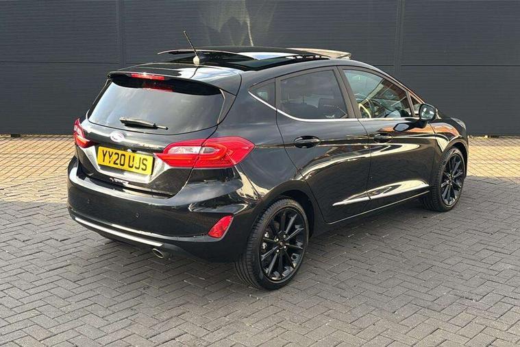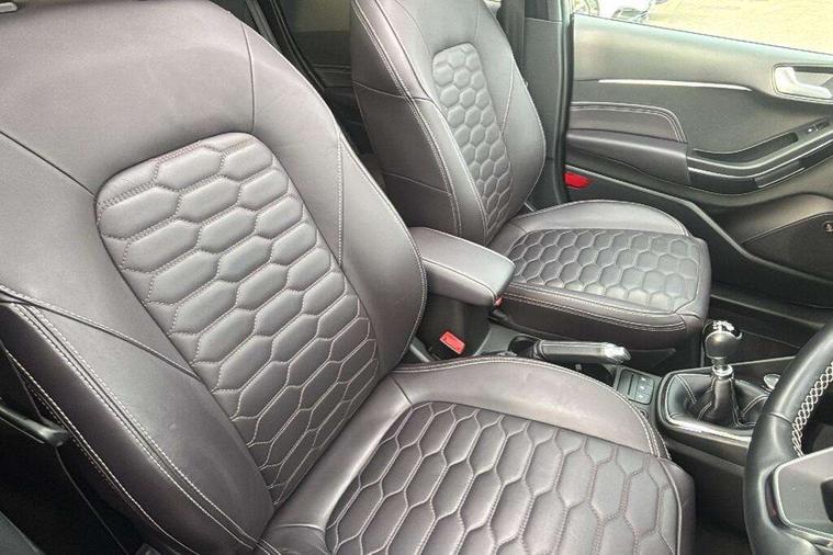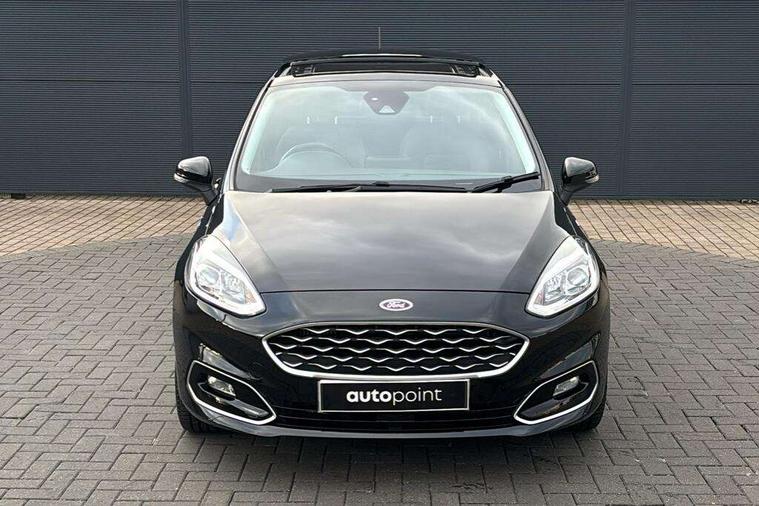 Bluetooth system, Electric power steering, Ford easy fuel, Trip computer, 2 USB ports, Auxiliary input socket, B&O Premium audio system with 8" touchscreen, 10 speakers, 360 degree sound system, Ford SYNC 3 navigation system and Ford pass connect, DAB Digital radio, Steering wheel mounted controls, Auto dimming rear view mirror, Body colour bumpers, Body colour door handles, Body colour electric adjustable heated door mirrors with integral indicators, Body colour rear spoiler, Chrome beltline trim, Chrome door handles, Chrome lower window surround, Cornering front fog lights, Electric front windows/one touch facility, Electric rear windows, LED Night signature to rear lights, LED rear lights, Openable panorama roof, Power foldable door mirrors with puddle lights, Privacy glass, Quickclear heated windscreen, Rain sensing wipers and auto dimming rear view mirror, Rear privacy glass, Rear wiper, Tinted glass, Unique Vignale front grille & bodystyling, Vignale front door threshold plates, Vignale rear & wing badges, 12V Accessory socket in centre console, 3 spoke leather trimmed steering wheel with audio control, 60/40 split folding rear seat, Adjustable head restraints, Air conditioning + Electric Auto Temperature Control (EATC), Ambient lighting, Boot carpet, Centre console with armrest and illuminated cupholders, Chrome inner door handles, Drivers and Passenger lumbar support, Footwell illumination, Front map reading lights, Front seat and rear pockets, Front/rear floor mats, Illuminated glovebox, Leather gear knob, Leather trimmed handbrake handle, Leather upholstery, Load area light, Luxury woven headliner, Overhead console with sunglasses holder, Pollen filter, Rake/reach adjustable steering wheel, Rear centre head restraint, Comfort Pack - Fiesta, NCAP Pack - Fiesta, Rear view camera pack - Fiesta, 3 point seatbelts on all rear seats, ABS+EBA, Curtain airbags, Driver and passenger airbags, Drivers knee airbag, Electronic stability control with hill start assist, Front passenger airbag deactivation, Front side airbags, Seatbelt warning, Tyre pressure monitoring system, Ford keyfree system with Keyless entry and keyless start with two remote keys, MyKey system, Remote central locking & engine immobiliser, Thatcham Cat.1 alarm, Tyre repair kit,