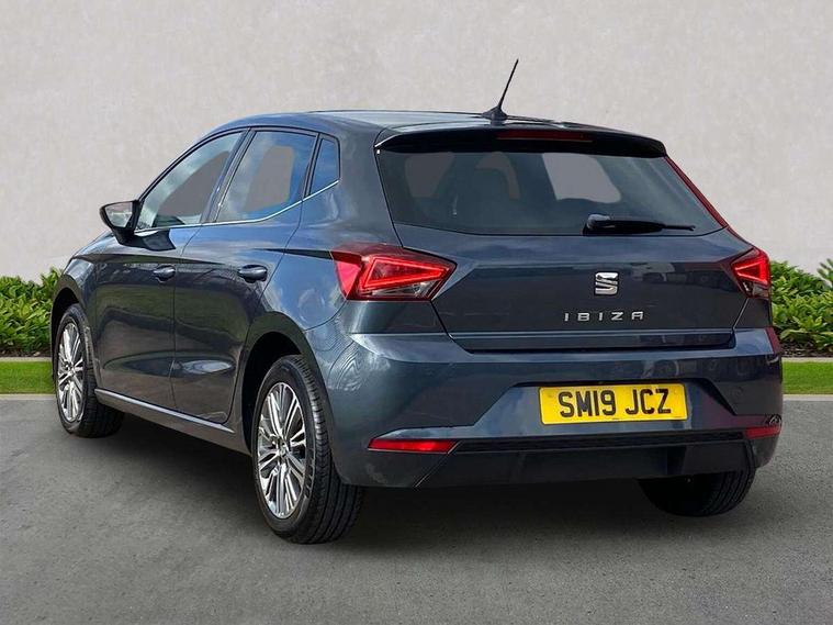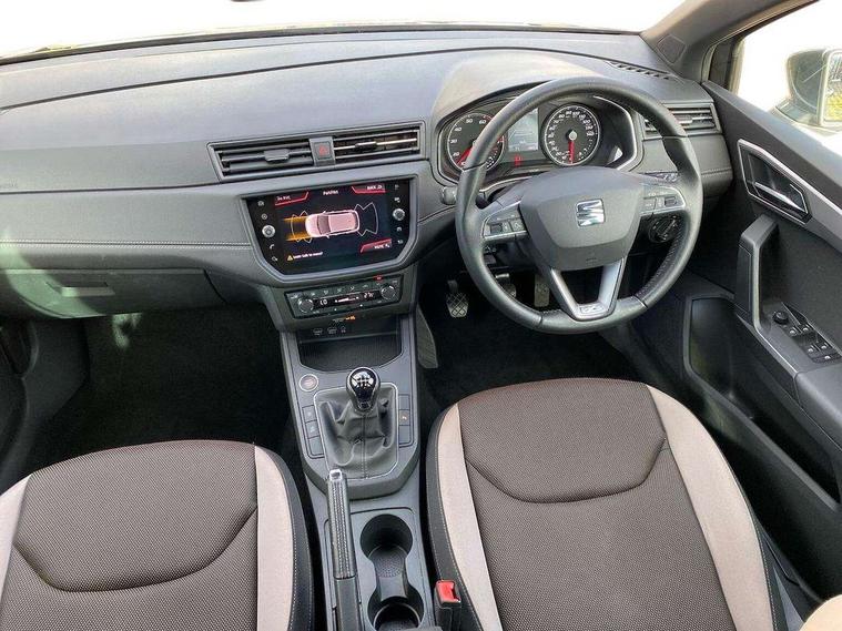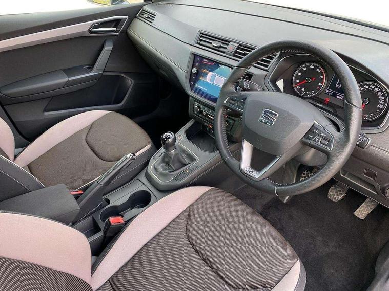 Full LED headlight pack - Ibiza, Full link media system pack with apple Carplay - Ibiza, 16" Design machined alloy wheels, 2 folding remote keys with window open/close function, Electronic engine immobiliser, Keyless entry and start, Locking wheel bolts, Remote central locking + deadlocks, Volumetric alarm with back up horn, 6 speakers, Auxiliary input socket, CD player, Digital Audio Broadcast (DAB) Tuner, Radio/MP3 player, SD card slot, SEAT USB media cable, Steering wheel mounted controls, USB port, 3 point seatbelts on all 3 rear seats, ABS, Active front headrests, Child locks on rear doors, Curtain airbags, Driver/Front Passenger airbags, ESP+EBA, Front assist (AEB), Front passenger airbag deactivation, Front side airbags, Hill hold control, Multi-Collision braking, Seatbelt warning, Tiredness recognition system, Tyre pressure monitoring system, Anti theft roof antenna, Atom grey door mirrors, Auto dimming rear view mirror, Automatic headlights, Automatic rain sensing wipers, Body colour bumpers, Body colour door handles, Chrome grille, Chrome side window trim, Coming/leaving home lighting function, Cornering front fog lights, Dark tinted rear windows, Electric folding door mirrors, Electric front/rear windows with one touch/auto up/down, Electric headlight adjustment, Electrically adjustable and heated door mirrors, Ice metal door side panels, LED daytime running lights, LED tail lights, Rear fog lights, 3 rear headrests, 60/40 split folding rear seat, Cloth upholstery, Driver's sunvisor with ticket holder/vanity mirror, Dual zone climate control, Dust/pollen filter, Front centre armrest, Front courtesy lights, Front cupholders x 2, Front reading lights, Front seat and rear pockets, Gear shift indicator, Glovebox, Height adjustable driver's seat, Height adjustable front/rear head restraints, Height adjustable passenger seat, Height/reach adjust steering wheel, Illuminated boot, Instrument lighting with brightness control, Leather dashboard, Leather handbrake, Leather steering wheel and gear knob, Leather trim on side panels, Passenger sunvisors with vanity mirrors and ticket holder, Rear top tether child seat ISOFIX attachment, Storage box under drivers seat, 'Lights On' Reminder warning buzzer, Adaptive cruise control, Bluetooth Handsfree Phone Connection, Digital clock, Front parking sensors, Low fuel warning light, Outside temperature gauge, Rear parking sensor, Rear view camera, Satellite navigation system with 3D mapping, 8" touch screen, voice control and additional USB port, SEAT logo boot release, Speed sensitive power steering, Trip computer, Comfort suspension,