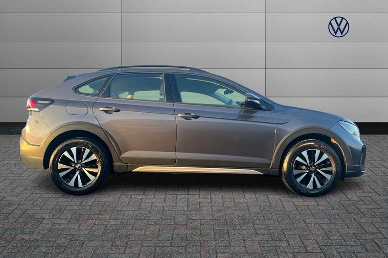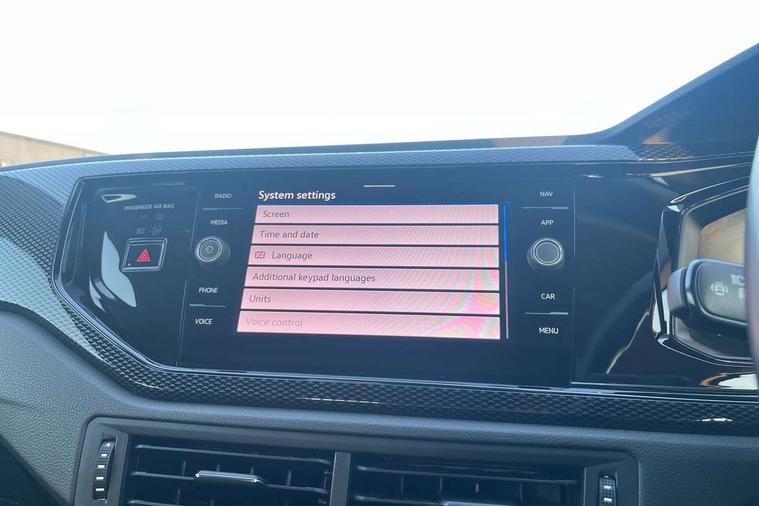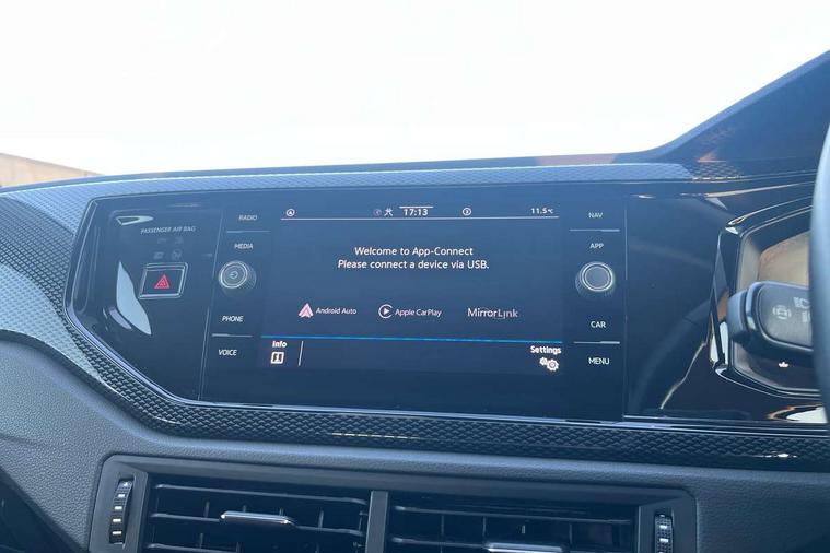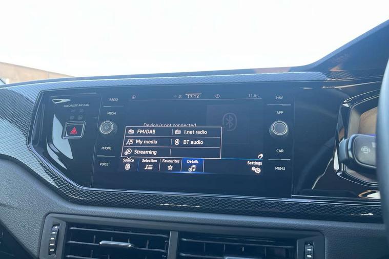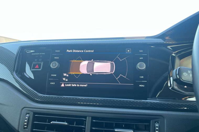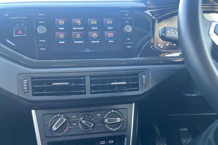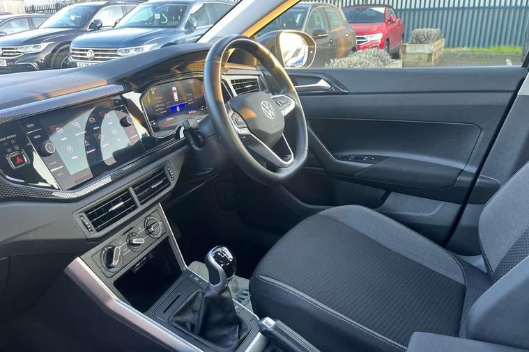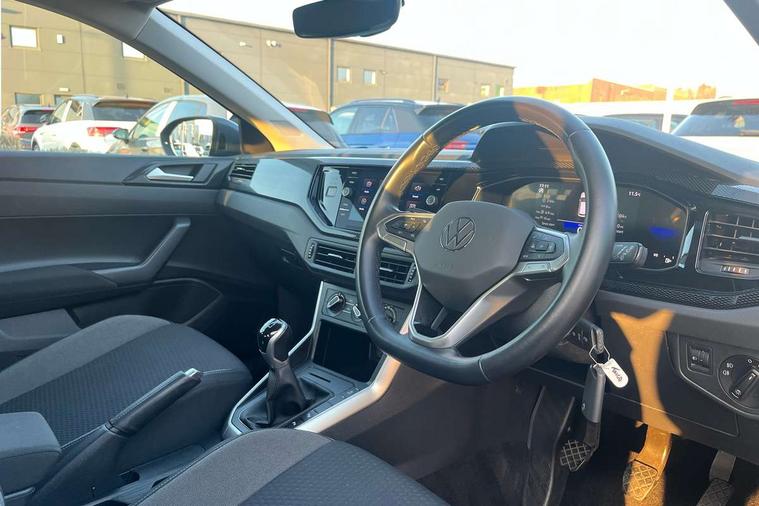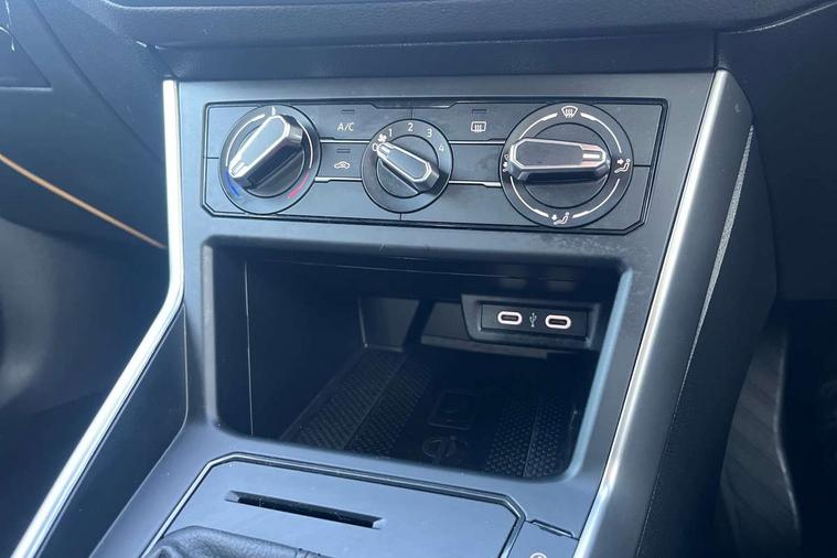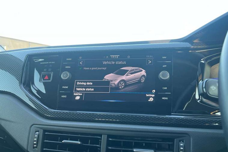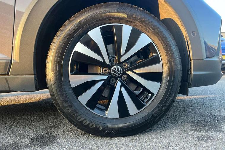 Driver alert system, e-Call (emergency call), Power Steering, Travel assist including emergency assist, Washer fluid level indicator, Wireless Charging including Bluetooth, Start-stop system with battery regeneration (recuperation - energy recovery during braking), WeConnect plus, Ambient lighting with logo projection, Aspherical driver's exterior mirror, Auto headlights, Body coloured bumpers, Body coloured exterior mirror housings and door handles, Electric windows, External USB type C socket and charging sockets, Front fog lamps with cornering function, Headlight range control, Heat insulating glass windscreen, LED headlamps, LED rear combination lamp, LED third brake light, Left convex exterior mirror, Power folding adjustable/heated exterior mirrors and front passenger exterior mirror lowering function, Rear fog light on one side, reversing light on both sides, Rear side wing doors, Rear wash/wipe with intermittent wipe setting, 'Slash/ Austin' Cloth upholstery, 12V socket in centre console, 2 front reading lights, 3 rear head restraints, 3 seat bench in 2nd row, Black carpets, Child seat anchor for child seat system i-Size, 2x top tether and child seat anchor in front on front passenger side, Door and side trim panels in titan black, Driver and front passenger seat height adjustment, Front centre armrest, Handbrake lever handle in leather, Height and reach adjustable steering wheel, Leather trimmed gear knob, Leather wrapped multifunction steering wheel, Luggage compartment floor, Luggage compartment light, Lumbar support for driver's and front passengers seat, Seat covers in titanium black, Single front passenger seat, Split folding backrest with centre armrest and unsplit rear seat bench, Storage compartment under front seats, Sun visors with illuminated vanity mirrors, Chrome Package - Taigo, Drivers assistance pack - Taigo, Light and Sight pack including High beam assist - Taigo, 2 x 3-point seatbelts/outer rear seats with ECE label, 3-point seat belts in front with pretensioner and height adjustment, 3-point seatbelt for centre rear seat, Driver and front passenger airbags with front passenger airbag de-activation, front side and curtain airbags, Driver and front passenger safety-optimised head restraints, Electronic stability control, Extended and predictive pedestrian/ cyclist protection, Front and rear disc brakes, Front curtain and side airbags with center airbag, Hill start assist, Manual rear child locks, Single tone horn, Tyre pressure loss indicator, Anti-theft alarm system with interior monitoring, backup horn, and towing protection, Anti-theft wheel bolts, Lava stone black gloss/matt decorative inserts in dash and front door panels, Low rolling resistance tyres,