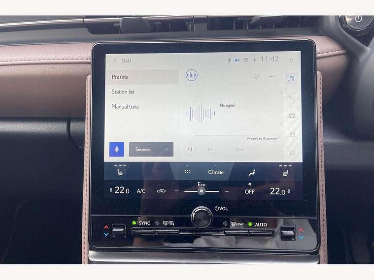 12.3" Digital instrument binnacle, Bluetooth connectivity, Cloud navigation, e-Call (emergency call), Electric power steering, Extended Lexus safety system+ 3 includes blind spot monitor, safe exit assist, camera washer and rear cross traffic alert, Front and rear parking sensors with intelligent clearance sensor, Front and rear smart entry, Head up Display, Lane change flasher function, Lexus link connected services, Lexus safety systems+ 3 includes dynamic radar cruise control, pre collision system day and night, lane tracing assist, road sign assist, Pre-collision system with driver monitor, Push button start, Rear view camera, Tailgate, Wireless Apple CarPlay and wired Android Auto, Wireless Smartphone charger, Vehicle dynamic integrated management (VDIM), 1 USB (Type-C) charging ports in bottom of the instrument panel, 1 USB (Type-C) multimedia communication ports in bottom of the instrument panel, 1 USB (Type-C) ports inside front console box, 6 speaker audio system, AM/FM and DAB radio, Lexus Link Connect with 9.8" Touchscreen, Rear side monitor, Auto dimming interior rear view mirror, Auto headlights, Black wheel arches, Electric adjustable/heated/auto folding door mirrors, Front and rear electric windows, Full body colour bumpers, LED 3rd brake light, LED daytime running lights, LED rear lights, Power back door without kick function, Privacy UV glass, rear doors and tailgate, Rain sensing wipers, Rear side wing doors, Rear wiper, Single bulb LED headlights with auto high beam, Wet arm wipers, 12V accessory connector in front console box, 3 bench rear seats in 2nd row, 3 rear headrests, 6 way manually adjustable front seats, 60/40 split folding rear seat, Aluminium scuff plates, Armrest with sliding cup holder, Centre armrest with storage, Cup holder in centre console, Driver and passenger door pocket, Driver's lumbar support, Dual zone automatic air conditioning, Front headrests, Glovebox, Heated front seats, Illuminated entry system (cabin, footwell, console and door handles), Nanoe-X Technology, Single colour ambient lighting, Single passenger seat, Storage tray under audio panel and lower tray, Synthetic leather gear lever, Synthetic leather steering wheel, Touch Sensor Buttons on Steering Wheel, Tsuyasumi interior ornamentaion, Under deck storage, 2 x Isofix child rear seat restraints, 3 point ELR (Emergency Locking Retractor) front seat belt with pretensioners, 3x3 point rear seat belts, ABS, Adjustable seatbelt anchor points, Driver and front passenger side airbags, Driver and front passenger single stage airbags, Driver knee airbag, E-Latch electric door release, Electronic parking brake, ESP, Front and rear curtain shield airbags, Front centre airbag, Manual rear child locks, Passenger airbag cut-off switch, Tyre pressure monitoring system, Alarm/anti-theft (with siren and 2 sensors), Engine immobiliser, Thatcham approved locking wheel nuts, Two motion door lock with double lock, VIN etching, Tyre repair kit,