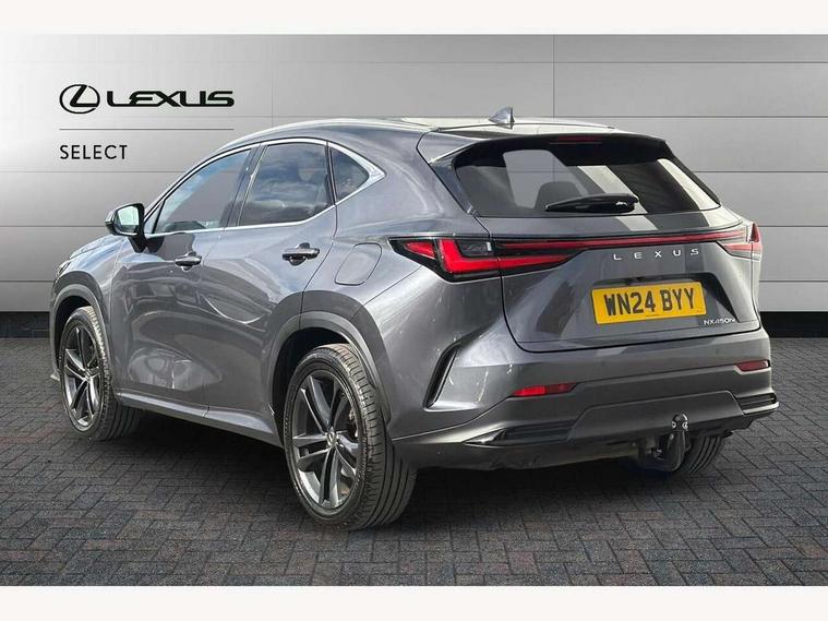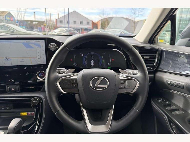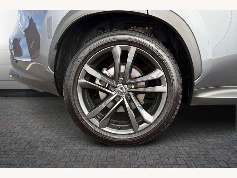 4 driving modes EV/Eco/Normal/Sport, 7" display in instrument binnacle, Blind spot monitoring with rear cross traffic alert, Bluetooth telephone connectivity, eCall emergency system, Electric speed sensitive power steering, Intelligent parking sensors - 4 front and 4 rear, Lane change flasher function, Lexus link connect - Cloud based navigation, cloud based voice assistant, always online and 9.8" VGA touchscreen, Push button starter, Reversing camera with back guidelines, Service interval indicator, Tailgate, Wireless Apple CarPlay and wired Android Auto, Wireless Smartphone charger, 6.6 kW onboard charger, All Wheel Drive (AWD), Hybrid automatic transmission, Vehicle Dynamics Integrated Management (VDIM), Vehicle Stability Control (VSC), 10 speakers, 4 USB ports - 2 front, one USB C, 2 rear USB C, DAB Digital radio, Auto dimming interior rear view mirror, Automatic headlights, Bi LED headlights, Double hidden exhaust pipes, Front and rear one touch power windows, with anti-jam protection, Heated, auto-folding, auto-dimming outside mirrors with reverse tilt function and turn indicators, Illuminated door handles with puddle light, LED brake lights and rear lights with emergency brake signal, LED cornering lights, LED daytime running lights, LED front fog lights, LED Indicators, Power back door with kick sensor, Privacy glass, rear doors and tailgate, Rain sensor windscreen wipers, Rear side wing doors, Rear wiper, Roof rails, 12V accessory port centre console and luggage compartment, 2 cupholders in front centre console, 2 way electrical lumbar adjustment for driver, 2 x fixed shopping bag hooks in boot, 2 x sun visors with vanity mirror and lamp, 3 seat bench in 2nd row, 4 x tie down hooks in the boot, 60/40 split folding rear seat, 8 way driver/passenger electrically adjustable front seats, Adjustable rear seat backrest, Card holder installed in driver and passengers sun visors, Centre armrest with storage box, Dual climate control air conditioning system, Front and rear head restraints, Front and rear textile carpet mats, Front passenger seat, Heated front seats, Heated steering wheel, Leather gear lever, LED interior illumination, Power adjustable leather steering wheel with paddle shifts, Premium Tahara leather upholstery, Rear centre armrest with 2 cupholders, Whiplash Injury Lessening (WIL) feature (active headrest) for seats, 2 x Isofix child rear seat restraints, 3 point ELR front seatbelts with pretensioners, 3x3 point rear seat belts, ABS, Adjustable seat belt anchor points, Driver and front passenger 2 stage airbag, Driver/front passenger side airbags, Drivers knee airbag, E-Latch with safe exit assist, EBD + Brake Assist, ECB (Electronically Controlled Brake System), Electronic parking brake, Front and rear curtain shield airbags, Front center airbag, Front passenger seat cushion airbag, Hill assist control, Lexus safety system - dynamic radar cruise control, pre collision system day and night, lane tracing assist, road sign, automatic high beam, OTA, Manual rear child locks, Passenger airbag cut-off device, Traction control, Tyre pressure warning, Anti-theft system with alarm, intrusion sensor, glass breakage sensor, tilt sensor and engine immobiliser, Locking wheel nuts, Smart keyless entry, Speed sensitive auto door locking, Two motion door lock with double lock, Ultra Wide Band (UWB) Anti-theft system, VIN Window etching, 3D prism black Inlay, Organic inlay, Tyre repair kit,