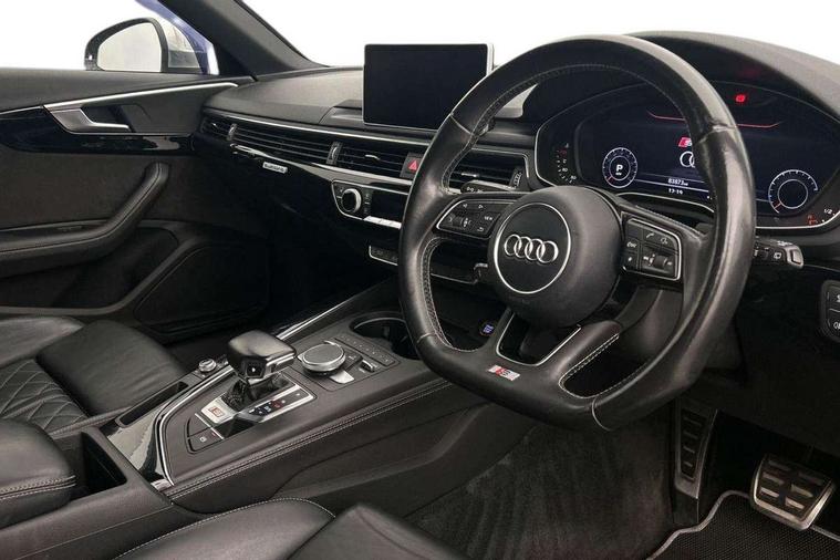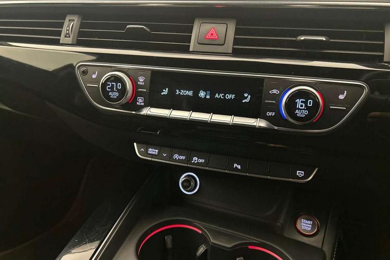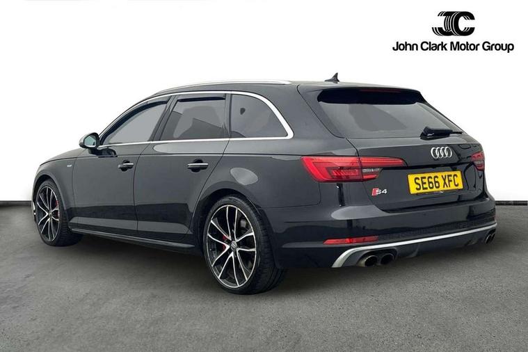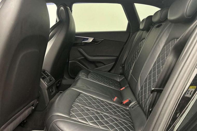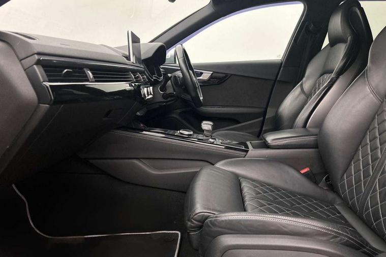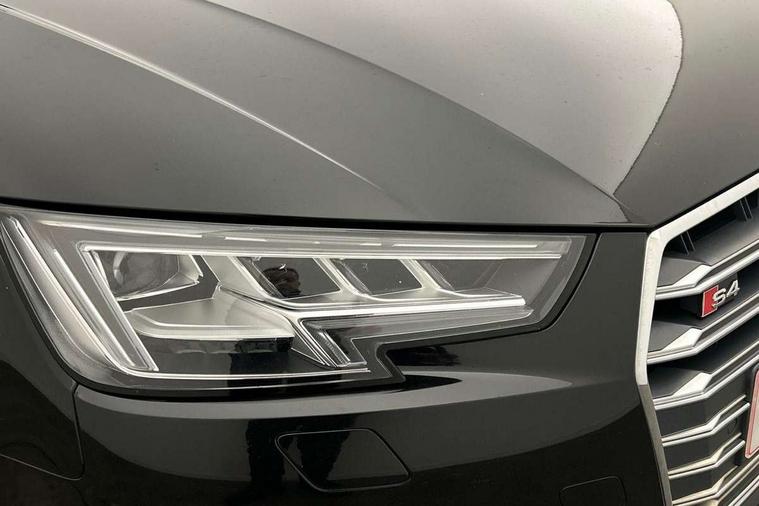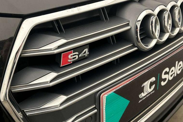 Audi connect, Audi drive select, Audi Pre sense collision avoidance, Audi smartphone interface, Electro-mechanical PAS, MMI navigation plus with HDD and jukebox storage + 2 SD card readers + single CD/DVD player, Power boot opening and closing, Service interval indicator, Stop/start button, Voice control system, 2 USB ports, Aux input, DAB digital radio module, Acoustic windscreen, Air inlets in titan black with chrome inlays, Auto dimming rear view mirror, Automatic headlights + automatic windscreen wipers, Body colour bumpers, Chrome door handles, Chrome rolled exhaust, Electric adjustable heated door mirrors, Electric front windows, Electric rear windows, Headlight range control, Headlight washer jets, High beam assistant, Honeycomb radiator grille - black, LED daytime running lights, LED indicators in door mirrors, Rear diffuser in Twilight grey matt, Rear spoiler, Rear wiper, Twin oval exhaust tailpipes with chrome finish, 3 zone climate control, 4 way electric lumbar support for driver and front passenger, Black cloth headlining, Electric adjustable front seats, Front centre armrest with 12v socket, Front headrests, Front/rear floor mats, Gearshift paddles, Heated front seats, Illuminated door sill finishers, Isofix child seat preparation for front passenger/outer rear seats inc passenger airbag deactivation, Jack and tool kit, Lumbar support with massage function, Massage function for front and rear seats, Perforated leather gearknob, Reach + rake adjustable steering column, Rear headrests, Retractable load area cover, S Super sports front seats, Split folding rear seats, Sunvisors with vanity mirrors, Top tether anchor plate for isofix child seat, Extended Interior Upholstery Pack - A4/S4, 3 point seatbelts on all rear seats, ABS/EBD, Adaptive driver and front passenger airbags, Electromechanical parking brake, ESP, First aid kit, Front head airbags, Front seatbelt pretensioners + load limiters, Front side airbags, Multi-Collision braking, Seatbelt warning, Traction control, Tyre pressure monitoring system, Warning triangle, Anti theft alarm, Keyless start, Locking wheel bolts, Remote central locking, Thatcham category 1 alarm + immobiliser,