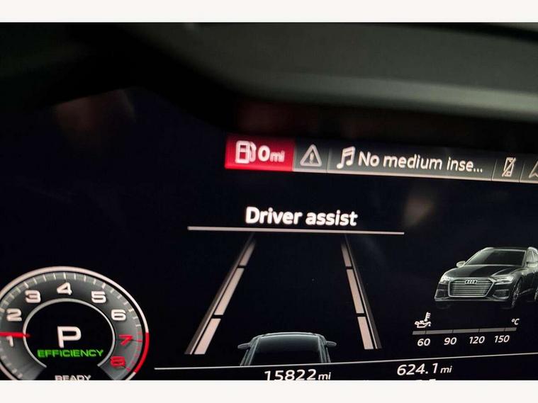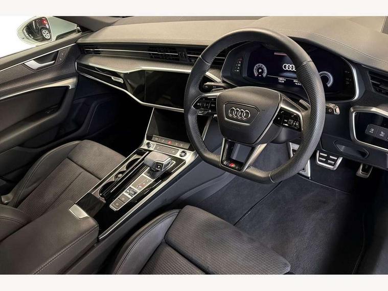 7" high resolution colour driver information display system, Audi connect safety and service (e-call), Audi connect with Amazon Alexa Integration, Audi drive select, Audi parking system plus - acoustic and visual park assist system for front and rear, Automatic start/stop system with coasting functionality, Bluetooth interface, Lane departure warning system, Power operated tailgate, Progressive steering, Rear view camera, Service interval indicator, Smartphone interface includes wireless Apple carplay/Android Auto, Voice control system, Sports suspension, Audi front music interface, Audi sound system, Auxiliary input socket, DAB Digital radio, USB connection, Black roof rails, Electric front/rear windows, Frameless auto dimming interior rear view mirror, Front intermittent wipers, Gloss black highlights on the exterior area of the Audi Single frame, Gloss black highlights on the front and rear bumpers, Gloss black highlights on the radiator grille, Gloss black highlights on the side windows trim strips, Headlight washers, Heat insulating darkened glass in side and rear windows, Heat insulating glass in windshield, LED signature front daytime running light, LED third brake light, Matrix LED headlights, Matt black rear diffuser with diffuser strip and tailpipes in chrome, Matt black side air intake grille with inlay in matt aluminium, Privacy glass, Rain and light sensors, Rear roof spoiler, Rear side wing doors, Rear wiper, Signature rear LED light design, 2 zone deluxe electronic climate control, 4 way electric lumbar support for driver and front passenger, 40/20/40 split folding 3 rear seat bench in 3 parts with rear centre armrest, Black cloth headlining, Black front and rear carpet floor mat, Black steering wheel insert, Electrically adjustable front seats with driver memory, Front centre armrest, Front head restraints, Heated front seats, Height/reach adjust steering wheel, Illuminated door sill trims with S logo, Illuminated sun visors with vanity mirrors, ISOFIX child seat mounting and Top Tether with front passenger airbag deactivation, Leather gear knob, Luggage compartment system, Rear headrests, Single front passenger seat, Stainless steel pedals and foot rest, LED Interior Ambient Lighting Pack - A6, Non smoking pack - A6, Technology pack - A6, 3 point seatbelts on all seats, Airbags - Front side, front and rear including head, Audi pre-sense front, Black seatbelts, EBD - Electronic brakeforce distribution, Electromechanical parking brake, Electronic Stability Control (ESC) including ABS, ASR and EDL, Extended pedestrian protection measures, Manual child proof rear door locks, Seatbelt monitoring, Tyre pressure warning light, Warning triangle and first aid kit, Anti theft alarm with tow away protection, Anti-theft wheel bolts and wheel loosening detection, Immobiliser, Keyless Go, Remote central locking, Carbon twill inlays, 20" 5 V spoke star design Audi sport cast aluminium alloy wheels in matt grey look,