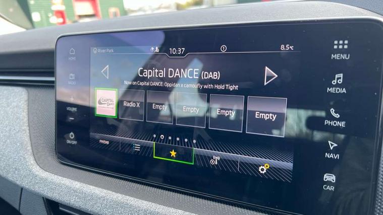 Advanced driver attention and drowsiness monitor, Bluetooth system, E-call, Front assist system, PAS, Rear parking sensors, Rear view camera, Service indicator, Speed limiter, Traffic sign recognition, Virtual cockpit with 10.25" display, Wireless smartlink, 4 USB C ports, 8 Speakers, 9.2" Skoda navigation display, DAB Digital radio, Auto dimming rear view mirror, Automatic headlight control with coming home and leaving home feature, Black roof rails, Body colour bumpers, Body colour door mirrors and handles, Chrome grille surround, Front and rear electric windows, Full LED headlights, Heated rear window, LED brake lights, LED daytime running lights, LED front turning lights, LED high beam, LED low beam, LED third brake light, Rear LED fog light, Rear side wing doors, Rear wiper, Ticket holder inside windscreen, 12V socket in luggage compartment, 3 seat bench in 2nd row, Black hotstamping, Cargo elements, Chrome inner door handles, Driver and passenger sun visors with vanity mirror, Dual zone climate control, Front and rear roof lights, Front centre armrest, Front head restraints, Glove compartment with illumination, Height adjustable driver seat, Height adjustable front passenger seat, Ice scraper, Inner circulation control with pollen filter, ISOFIX on front passenger seat, Isofix preparation for back seats, Krepp recycled decor inserts, Leather gearknob and handbrake lever, Loft cloth upholstery, Manual lumbar support for front seats, Net package and top tether hooks in boot space, Net under rear shelf, Overhead glasses storage compartment, Pocket on the back of both front seats include mobile phone pockets, Rake/reach adjustable steering wheel, Reading lights, Satin black door inserts, Single front passenger seat, Textile floor mats, Third rear headrest, Top tether for front passenger seat, Umbrella in driver's door, 3x3 point rear seatbelts, Airbags - driver and front passenger, Disc brakes, ESP, Extended and predictive pedestrian/cyclist protection, Front passenger airbag deactivation switch, Front side airbags with curtain airbags, Hill hold control, Manual leather parking brake, Manual rear child locks, One tone horn, Seatbelt reminder for driver an co-driver, Traction control, Tyre pressure monitor, Anti-theft alarm system with interior monitoring, backup horn, towing protection and remote central locking with SAFE system, Anti-theft wheel bolts, Electronic engine immobilizer,