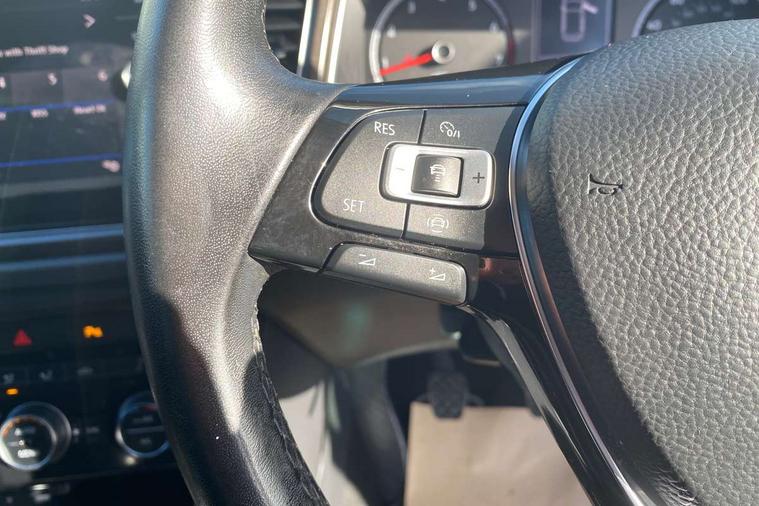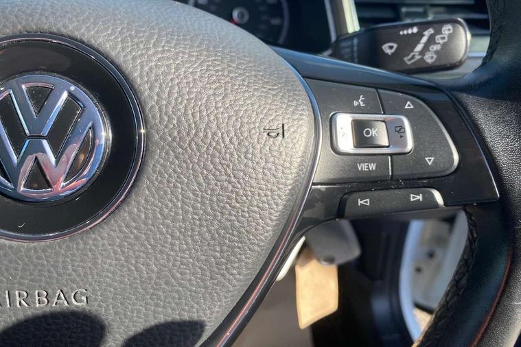 App-Connect, 'Lights On' Reminder warning buzzer, 2 USB connection charging sockets, Adaptive cruise control with front assist, radar sensor controlled distance monitoring, city emergency braking, Automatic start/stop system, Bluetooth telephone and audio connection for compatible devices, Car information display, Driver alert system with audible and visual fatigue detection system, Driver tips and journey analysis, Dusk sensor, Lane assist, Multifunction computer with visual gear change recommendation for fuel consumption, Service interval indicator, Think blue trainer driver tips and journey analysis, Warning sound and light for doors and tailgate open, Warning sound and light for front seatbelts unfastened, We Connect Go Dongle, Battery regeneration during braking, DAB Digital radio, Multi device interface (MDI) with USB connection, Music playback - MP3, WMA and AAC files, Premium USB cable in choice of either Apple or Android smartphone compatibility, SD card slot, Simultaneous pairing of 2 compatible mobile devices, SMS functionality - read, compose and send SMS messages using touch-screen display, Title and cover art display, Auto dimming interior rear view mirror, Automatic hazard lights activation under emergency braking, Black grained lower door protectors, Black grained wheel arches, Body colour door handles, Body colour sports bumpers with silver metallic underbody fascia, Body coloured door mirrors with integrated indicators, Chrome effect left and right trapezoid exhaust tailpipe fascia surround, Chrome trim on upper and lower radiator grille, Electrically foldable, adjustable and heated door mirrors with puddle lights and reverse activated kerb-view adjustment on passenger's door mirror, Front and rear electric windows, Front windscreen wiper with intermittent wipe and 4 position delay, Fully galvanised body, Heated rear window, High level 3rd brake light, LED rear number plate lights, Manual coming/automatic leaving home lighting function, Rain sensor, Rear tinted glass from B-pillar backwards approx 65% tinted, Rear wash/wipe with intermittent wipe setting, 12V socket in centre console storage area, 2 Front and rear reading lights incorporating LED technology, 3 rear head restraints, 4 load lashing points in luggage compartment, Ambient lighting in front footwell and light strips below trim in front doors, Climate control - 2 zone electronic air conditioning with automatic air recirculation and allergy filter, Drawer under drivers seat, Front centre armrest with storage compartment, longitudinal and height adjustable and two rear air vents, Front cupholders x 2, Front footwell illumination, Front seat back storage pockets, Glovebox, Height adjustable front seats, Height/reach adjust steering wheel, Illuminated vanity mirrors, Instrument lighting, white adjustable panel illumination, Interior light delay, Isofix easy fit child seat preparation for 2 outer rear seats, Load through provision with single cup holder when folded down, Luggage compartment cover, removable, Luggage compartment lighting, Split folding rear seat backrests with centre armrest, Storage compartment in left and right luggage area, Storage compartment in rear doors, Storage compartments in driver and front passenger doors, 3 rear three point seatbelts, ABS, Curtain airbags, Driver and front passenger safety-optimised head restraints, Drivers and front passengers airbags with passengers deactivation switch, Electronic parking brake with auto hold, Electronic stability control (ESC) includes ASR, EDL, EDTC and trailer stabilisation function, Front seat side impact airbags, Predictive pedestrian protection, Rigid safety cell with front and rear crumple zones, Three point height adjust front seatbelts + pretensioners, Tyre pressure loss indicator, Ventilated front and rear disc brakes, Volkswagen roadside assistance, Alarm with interior protection and deactivation via infotainment system, Electronic engine immobiliser, Remote central locking with 2 remote folding keys, Limestone grey decorative inserts in dash and door panel, Space and weight saver spare wheel,