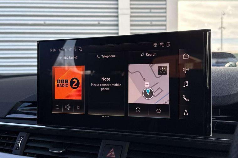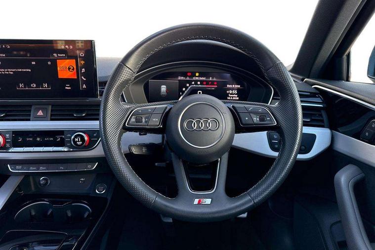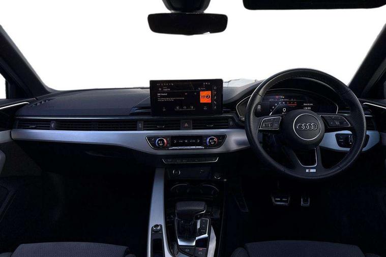 Audi connect safety and service (e-call), Audi drive select, Audi smartphone interface, Audi virtual cockpit, Automatic start-stop system with coasting functionality and efficiency programme, Bluetooth interface, Camera based traffic sign recognition, Electromechanical power steering, Email, calendar and text messages displayed via MMI, Front and rear parking sensors, Lane departure warning, MMI Navigation plus with MMI touch includes 10.1" high resolution colour MMI display, 3D map, Power operated tailgate, Rear view camera, Voice control system, 54 litre fuel tank, Sports suspension lowered by 23mm, 2 USB charging ports, 8 passive loudspeakers, DAB digital radio reception, Aluminium roof rails, Auto dimming rear view mirror, Body colour door handles, Body colour front spoiler lip, Body colour side sill trim, Body coloured door mirrors, Electric adjustable/heated/folding door mirrors with auto dimming, Grained matt black side air inlets with matt aluminium silver inlay, High beam assistant, Honeycomb structure radiator grille in grained matt black, LED headlights with LED rear lights + dynamic rear indicators + headlight adjustment and high beam, turning light + LED daytime running lights, LED third brake light, Matt aluminium silver tailpipe trim, Privacy glass, Rain and light sensors, Rear side wing doors, Rear wiper, S Line badges on the front wings, S line front and rear bumpers with side skirts, S Line rear diffuser in matt anthracite black with trim strip in matt aluminium silver, S Line roof edge spoiler, Variable intermittent front wash/wipe, Windscreen with acoustic glazing, 3 spoke high multi-function sports leather steering wheel grips in perforated leather with S badging including paddle shift, 4 way electric lumbar support for driver and front passenger, 40/20/40 split folding 3 rear seat bench in 3 parts with rear centre armrest, Black carpets, Black cloth headlining, Black perforated leather gearknob, Contrast stitching on seats, steering wheel and gear lever gaiter, Deluxe 3 zone electronic climate control, Electric load area cover, Front and rear head restraints, Front centre armrest, Heated front seats, Illuminated door sill trims with S logo, ISOFIX child seat mounting and top tether, Manual seat adjustment, Single front passenger seat, Stainless steel pedals and foot rest, High gloss package - A4, LED Interior light pack - A4/S4, 3 rear seatbelts, 6 airbags - Driver, front passenger, curtain and side windows, Attention and drowsiness assist, Electronic Stabilisation Control (ESC) including ABS, ASR and EDL, Hill hold assist, Multi collision brake assist, Pop-up bonnet for pedestrian protection, Pre sense city, Rear door child safety locks, Seatbelt monitoring, Warning triangle and first aid kit, Anti theft alarm, Anti theft wheel bolts, Central locking, Keyless Go, Matt brushed aluminium inlays, Tool kit, Tyre repair kit,