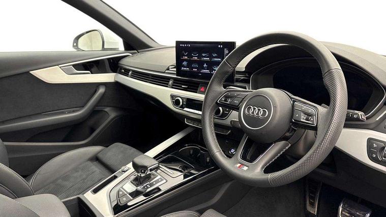 Audi connect safety and service (e-call), Audi drive select, Audi smartphone interface, Audi virtual cockpit, Automatic start-stop system with coasting functionality and efficiency programme, Bluetooth interface, Camera based traffic sign recognition, Electromechanical power steering, Email, calendar and text messages displayed via MMI, Front and rear parking sensors, Lane departure warning, MMI Navigation plus with MMI touch includes 10.1" high resolution colour MMI display, 3D map, Power operated tailgate, Rear view camera, Voice control system, 54 litre fuel tank, Sports suspension lowered by 23mm, 2 USB charging ports, 8 passive loudspeakers, DAB digital radio reception, Aluminium roof rails, Auto dimming rear view mirror, Body colour door handles, Body colour front spoiler lip, Body colour side sill trim, Body coloured door mirrors, Electric adjustable/heated/folding door mirrors with auto dimming, Grained matt black side air inlets with matt aluminium silver inlay, High beam assistant, Honeycomb structure radiator grille in grained matt black, LED headlights with LED rear lights + dynamic rear indicators + headlight adjustment and high beam, turning light + LED daytime running lights, LED third brake light, Matt aluminium silver tailpipe trim, Privacy glass, Rain and light sensors, Rear side wing doors, Rear wiper, S Line badges on the front wings, S line front and rear bumpers with side skirts, S Line rear diffuser in matt anthracite black with trim strip in matt aluminium silver, S Line roof edge spoiler, Variable intermittent front wash/wipe, Windscreen with acoustic glazing, 3 spoke high multi-function sports leather steering wheel grips in perforated leather with S badging including paddle shift, 4 way electric lumbar support for driver and front passenger, 40/20/40 split folding 3 rear seat bench in 3 parts with rear centre armrest, Black carpets, Black cloth headlining, Black perforated leather gearknob, Contrast stitching on seats, steering wheel and gear lever gaiter, Deluxe 3 zone electronic climate control, Electric load area cover, Front and rear head restraints, Front centre armrest, Heated front seats, Illuminated door sill trims with S logo, ISOFIX child seat mounting and top tether, Manual seat adjustment, Single front passenger seat, Stainless steel pedals and foot rest, High gloss package - A4, LED Interior light pack - A4/S4, 3 rear seatbelts, 6 airbags - Driver, front passenger, curtain and side windows, Attention and drowsiness assist, Electronic Stabilisation Control (ESC) including ABS, ASR and EDL, Hill hold assist, Multi collision brake assist, Pop-up bonnet for pedestrian protection, Pre sense city, Rear door child safety locks, Seatbelt monitoring, Warning triangle and first aid kit, Anti theft alarm, Anti theft wheel bolts, Central locking, Keyless Go, Matt brushed aluminium inlays, Tool kit, Tyre repair kit,