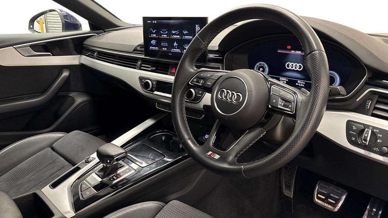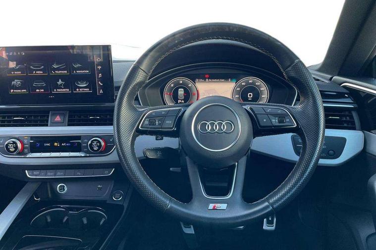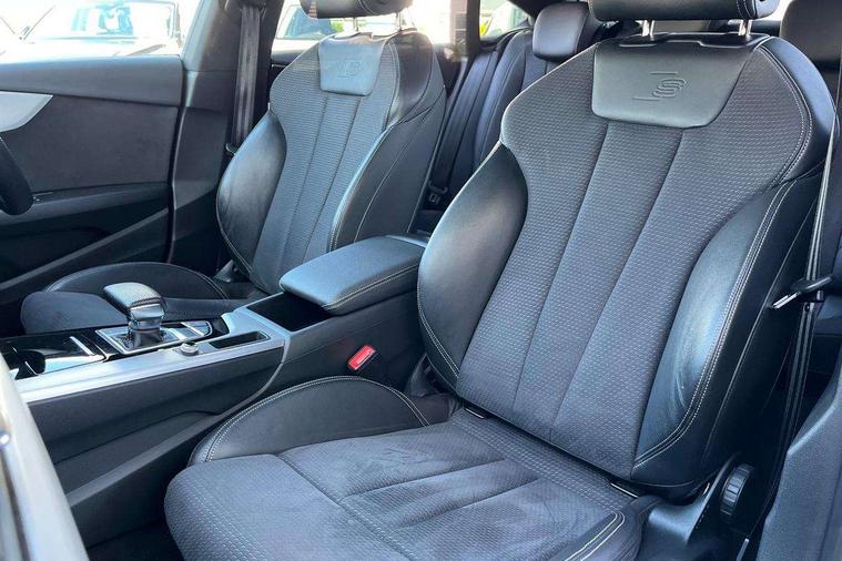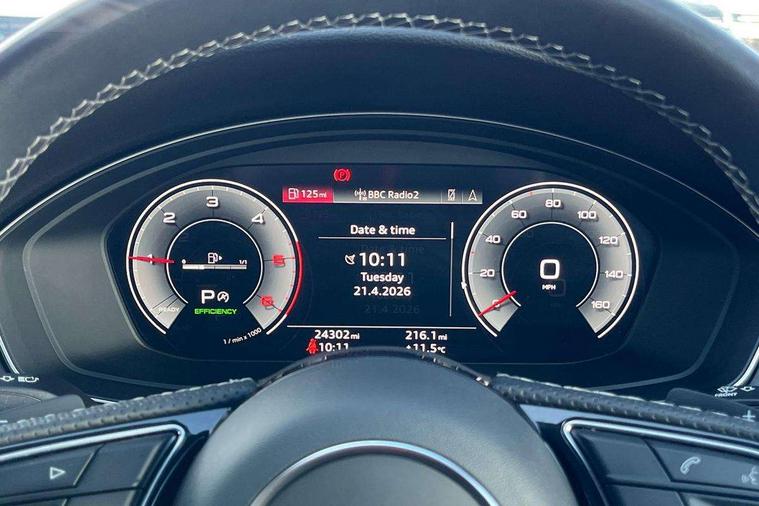 Audi connect safety and service (e-call), Audi connect with Amazon Alexa Integration, Audi drive select (Auto, Comfort, Dynamic, Efficiency and Individual), Audi parking system plus with front and rear sensors, Audi smartphone interface, Audi virtual cockpit - 12.3" full colour digital instrument cluster, vehicle/engine speed, Radio/media information+Driver assistance systems, Automatic start-stop system with coasting functionality and efficiency programme, Bluetooth interface, Electro-mechanical power steering, Email, calendar and text messages displayed via MMI, MMI nav+ with MMI touch - 10.1" high resolution MMI display, touch sensitive, 3D map, route/country info, dynamic route guide, personal route assist, Power operated tailgate, Rear view camera, Service interval indicator, Voice control system, Diesel particulate filter, Sports suspension lowered by 23mm, 8 passive loudspeakers, CD player, DAB digital radio reception, Two additional USB ports for rear passenger in rear centre console, Two SDXC card slots, Audi matrix LED headlights with LED rear lights + dynamic front and rear indicators, Auto dimming door mirrors, Auto dimming rear view mirror, Body colour bumpers, Body colour door handles, Body colour front spoiler lip, Body colour side sill trim, Body coloured door mirrors, Electric adjustable heated door mirrors, Electric folding door mirrors, Electric front windows, Front fog lights, Honeycomb structure radiator grille in grained matt black, Kerb-view function for passenger side, LED daytime running lights, LED side indicator lights integrated into door mirrors, LED third brake light, Matt aluminium silver tailpipe trim, Privacy glass, Rain and light sensors, Rear side wing doors, S line badges on front wings, S line front and rear bumpers with side skirts, S Line rear diffuser in matt titanium black with trim strip in matt aluminium silver, Side air inlets in grained matt black with matt aluminium silver inlay, Variable front intermittent wipers, Windscreen with acoustic glazing, 3 seat bench in 2nd row, 4 way electric lumbar support for driver and front passenger, 40/20/40 split folding 3 seater rear bench seat, Adjustable steering column, Black cloth headlining, Black perforated leather gearknob, Contrast stitching on seats, steering wheel and gear lever gaiter, Deluxe 3 zone electronic climate control, Front centre armrest, Front head restraints, Front/rear floor mats, Heated front seats, Illuminated door sill trim with S logo, ISOFIX child seat mounting and top tether, Luggage compartment mat, Manual seat adjustment, Rear centre armrest, Rear headrests, Single front passenger seat, Stainless steel pedals, Sunvisors with vanity mirrors, LED interior light pack - A5/RS5, 3x3 point rear seatbelts, 6 airbags - Driver, front passenger, curtain and side airbags, Electromechanical parking brake, Electronic Stabilisation Control (ESC) including ABS, ASR and EDL, Front passenger airbag deactivation, Height adjustable front seatbelts, Hill hold assist, Manual child lock in rear doors, Multi collision brake assist, Pop-up bonnet for pedestrian protection, Pre sense city, Seatbelt monitoring, Tyre pressure warning, Variable restraint system, Warning triangle and first aid kit, Anti theft alarm system, Anti theft wheel bolts, Immobiliser, Keyless Go, Remote central locking, Matt brushed aluminium inlays, Tool kit, Tyre repair kit,