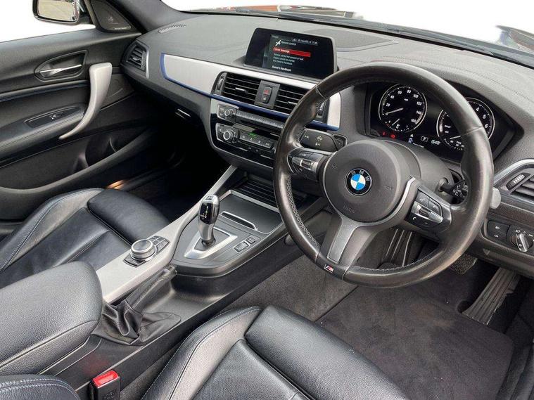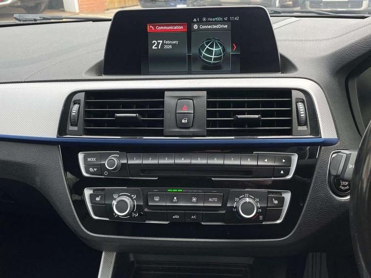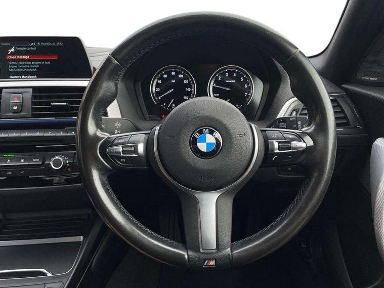 Automatic start/stop system, BMW Online services, BMW remote services, BMW Teleservices, Brake force display, Brake pad wear indicator in front and rear, Check Control warning system for monitoring of lights and door/luggage compartment open warning, Eco pro mode, Instrument cluster with speedometer with miles per hour read out, tachometer and fuel gauge, Lights on warning by audio warning signal when ignition is switched off, Oil temperature display via on board computer in instrument cluster, On board computer - average speed+fuel consumption, service interval, clock/date, odometer/trip meter, outside temperature display and ice warning, On board diagnostics, Optimum shift indicator, Personal Profile, Real time traffic information, Servotronic PAS, Speed limiter, Battery age recognition function, Drive Performance Control, BMW professional radio with CD player, DAB Digital radio, Harman/Kardon loudspeaker system, Body colour door handles, Body colour front and rear bumpers, Body colour mirror caps, Body colour roof mouldings, Clear lenses direction indicator lights, Dark chrome exhaust tailpipe, Darkened rear lights with LED light bars, Daytime driving lights, Direction indicator side lights in exterior mirrors, Dynamic brake lights, Electrically adjustable heated door mirrors and washer jets, Follow me home headlights, Front and rear bumper system with replaceable deformation elements, Front and rear electric windows with open and close fingertip control, anti trap facility and comfort closing, Green tinted heat protection glazing, Headlight beam throw control, Heated windscreen washer jets, High gloss black kidney grille with black slats, High level third brake light, Lightweight engineering, M aerodynamic bodystyling, Nearside reverse light in rear light cluster, Offside rear fog lights, Rain sensor including auto headlights activation, Rear window aerial, Rear window wiper, Shark fin antenna, Sun protection glass, Visible VIN plate, Welcome lighting, 12V power socket in centre console, 12V power socket in passenger footwell, 60/40 split folding rear seat, Ambient lighting - switchable BMW classic orange/ cold white LED, Anthracite headlining, Anthracite Velour front and rear floor mats, Conditioned based service, Door sill finishers with illuminated M designation, Four grab handles integrated in roof lining, Front and rear side armrest integrated into door trim, Front folding sliding armrest with storage compartment, Front head restraints, Front sports seats with electric side bolster adjustment, Front storage compartment in centre console and in door trim, Front/rear courtesy lights with soft on/off dimming, Glove box handle with chrome surround, Glovebox, Interior light in front centre interior mirrors and rear centre auto interior light activation when door is opened when ignition switched off, Isofix child seat for two outer rear seats, Leather gear knob and handbrake grip, Luggage compartment access via BMW roundel, Luggage compartment lighting, M sports multi function leather steering wheel, Manually adjustable steering column, Multi-function controls for steering wheel, Rear folding head restraints, Sunvisors with vanity mirrors and ticket pocket, Two cupholders with sliding cover and inlay mat, Two sills lashing eyes in the luggage compartment, 3 point seatbelts on all seats, front pyrotechnic belt tensioners, stopper and belt force limiters, rear coded belt buckles, Active differential brake (ADB), electronic differential lock in DSC-OFF mode, Airbags - Front driver and passenger, front and rear head, front side, curtain head protection, Anti lock braking system (ABS) with brake assist, Automatic Stability Control (ASC), Battery safety cut-off, BMW emergency call, Brake drying, Brake energy regeneration, Braking readiness, Cornering brake control (CBC), Crash sensor activating central locking release, hazard warning lights, Driver and front passenger seat belt security check, DSC+, Dynamic brake control, Dynamic Traction Control - DTC, Front passenger manual airbag deactivation, Front ventilated brake disc, Hill start assist, M Sport braking system, Rear brake discs, Rear child proof door locks, Side impact protection, Twin horns, Tyre pressure monitoring system, Warning triangle and first aid kit, Automatic drive away locking facility, Central locking switch for all doors, fuel filler cap and luggage compartment, Locking wheel bolts, Remote central locking with two Integrate key, one button for opening and closing all lock, open and close window, button for open luggage compartment, Remote control integrated key with blue inset, Start/stop button with comfort go keyless engine start and auto start stop deactivation button, Thatcham Cat.1 alarm and immobiliser, Reduced rolling resistance tyres, Run flat tyres,