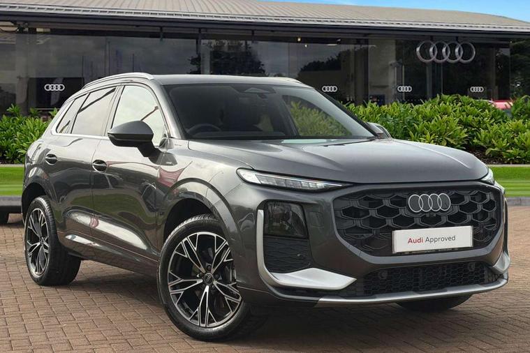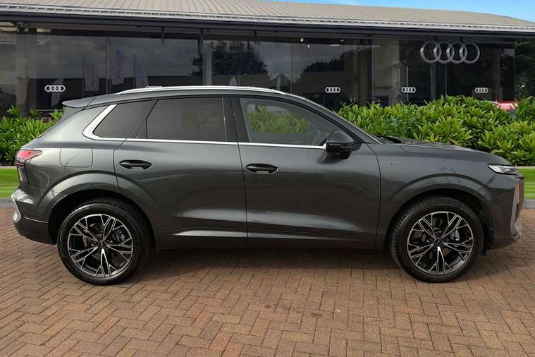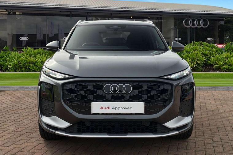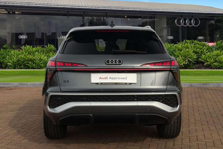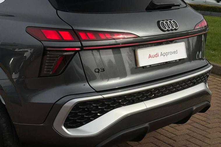 Adaptive cruise control, Audi connect emergency call and service, Audi connect remote and controls, Audi drive select (Balanced/Individual, effeciency, comfort and dynamic), Audi virtual cockpit plus - 11.9" display, Bluetooth interface, Camera based traffic sign recognition, Driver attention and fatigue monitor with driver monitoring, Front cross traffic assist, Lane departure warning with emergency assist, Panoramic curved display with 12.8" MMI navigation plus and MMI touch, Park assist plus with parking system and 360 display, Phonebox light with wireless charging, Reversing camera, Smartphone interface includes wireless Apple carplay/Android Auto, Start/stop system, Swerve assist and turn assist, Traffic sign based speed limiter, Voice control system with natural language interaction, 3 pin 10 amp domestic charging cable, Charging socket CCS type 2, Comfort suspension, Compact charging system, Industrial connector CEE 32A, 230V, Mode 3 charging cable for public charging, 22 KW (AC), Petrol Particulate Filter, 2 USB-C ports with charge and data functions, Audi sound system with 10 loudspeakers, subwoofer, 8 channel amplifier with 260 watts, DAB digital radio module, Acoustic glass for front door windows, Acoustic windscreen, Aluminium roof rails, Aluminium window trim, Audi Q3 lettering on the B-pillars, Auto dimming door mirrors, Auto dimming rear view mirror, Body colour door mirrors, Contrasting finish in volcano grey, Electrically folding, adjustable and heated door mirrors with integrated LED side indicators and kerb view function for passenger side, Full paint finish, Illuminated door sills with aluminium inserts at the front with S logo, LED daytime running lights, LED headlights plus with LED rear lights pro with continous light strip, illuminated Audi rings, rear, LED third brake light, Loading sill protector in stainless steel, Main beam assist, Privacy glass - dark tinted rear window, rear door and side windows, Projection light in the exterior mirrors - Projects a graphic element onto the ground, Q3 badging on the rear, Rain and light sensors, Rear side wing doors, Rear window, rear door windows and rear side windows in clear glass, Rear wiper, Sports bumpers, 3 seat bench in 2nd row, 3 spoke flat top and bottomed leather multi function sport steering wheel with gear shift paddles and "S" badging, 3-zone deluxe automatic air conditioning, 4 way lumbar support for the front seats - electric with horizontal and vertical adjustment in four directions, Black cloth headlining, Convenience auxiliary air conditioning, Front and rear floor mats, Front and rear headrests, Front centre armrest, Heated front seats, Height and reach adjustable steering wheel, Interior storage compartment, Leather/artificial leather upholstery combination with S emblem + front sports seats, Luggage compartment lid, electrically opening and closing, Manual front seats with height adjustment, Rear seat bench plus with split folded 40:20:40, Single front passenger seat, Stainless steel pedals, Steering wheel operating unit, gloss black, Storage compartment in front centre console, Ambient lighting package pro - Q3, S line exterior styling pack - Q3, 3x3 point rear seatbelts, Acoustic vehicle alerting system, Convenience key with safelock, Driver and front passenger airbag with passenger airbag deactivation, Electromechanical parking brake, Electronic stabilisation control including ABS, ASR and EDL, First aid kit with warning triangle and high visibility vests, Front emergency brake assist, Hill hold assist, i - Size child seat mounting on the front passenger side and i - Size and top tether on the outer rear seats, Power operated child locks, Seatbelt monitoring, Three point automatic belts with belt tensioner and height adjustment, Tyre pressure loss indicator, Anti theft wheel bolts, Remote central locking, Thatcham approved category 1 anti theft alarm, Dark aluminium divergence inlay, Interior elements in dinamica microfibre, Interior trims in aluminium look, Tool kit and Jack, Tyre repair kit,