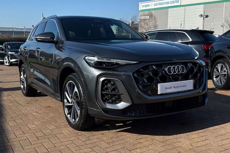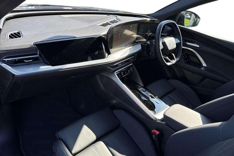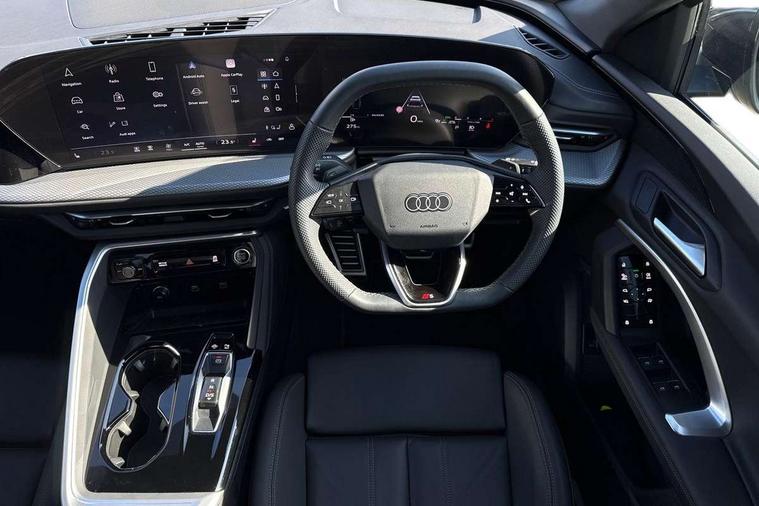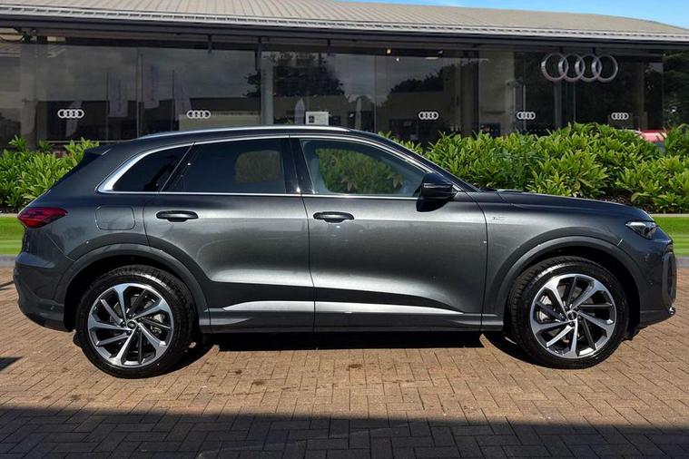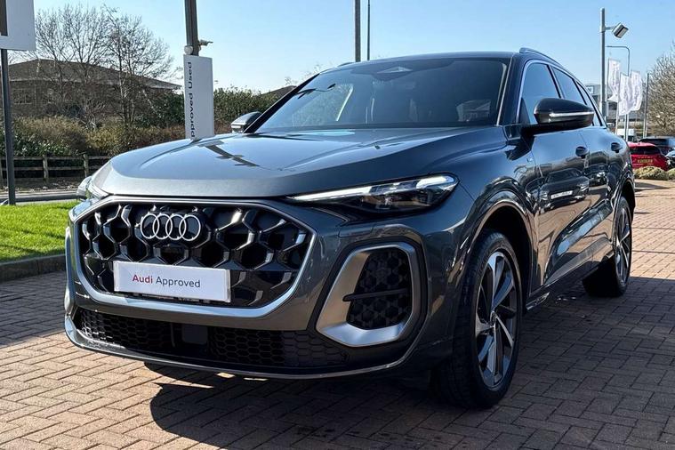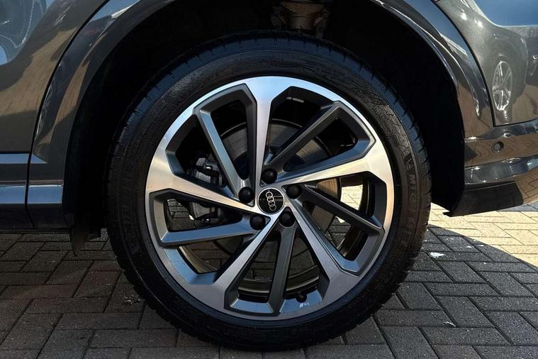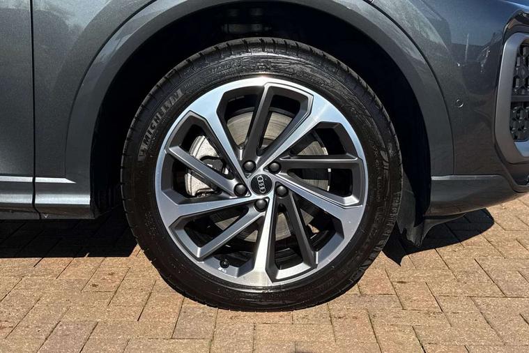 Adaptive cruise control, Advanced driver attention alert, Audi application store, Audi connect emergency call and service, Audi drive select, Audi smartphone interface, Audi virtual cockpit plus with 11.9" OLED colour display, Camera based traffic sign recognition, Fatigue monitor, Front cross traffic intersection assist, Lane departure warning system, MMI navigation plus with high resolution 14.5" OLED touchscreen colour display, Park assist plus, Parking system plus with 360 display, PAS, Reversing camera, Traffic sign based speed limiter, 2 USB-C ports in both the front and rear, Audi sound system impressive sound with 8 loudspeakers including centre speaker and subwoofer, 6-channel amplifier with a total output of 180 watts, DAB Digital radio, Smartphone compartment with wireless charging, Aluminium roof rails, Auto dimming rear view mirror, Body coloured door mirrors, Coming/leaving home lighting function, Electrically adjustable heated and folding + automatically dimming exterior mirrors, Front and rear electric windows, Front door sill trims with aluminium inlays, illuminated with 'S' logo, Grill frame, inlay and front air inlets in matt anthracite chrome, Headlight cleaning system, Heated rear window, High beam assist, High gloss window surrounds, LED headlights plus incl. digital DRL, dynamic coming and leaving home function with turning/all weather/motorway/manouevring and intersection lights, LED rear lights pro incl. dynamic rear indicators and illuminated light strip with animated coming and leaving home function, Logo projection light in exterior mirrors, Privacy glass, Projection third brake light for rear window in LED, Radiator grille in phantom black, Rear and side windows with heat insulating glass, Rear honeycombe grille in matt black with inlay in matt anthracite chrome, Rear side wing doors, Rear wash/wipe, S Line badge on the front wings, S line bumpers in contrasting Volcano grey metallic paint finish, Towbar preparation, Windscreen with acoustic glazing, 3 rear head restraints, 3 seat bench in 2nd row, 3 spoke leather steering wheel with multi-function buttons with touch control, flattened on top and bottom, with S badging and contrast stitching, Comfort centre armrest front, Deluxe 3 zone electronic climate control, Front and rear floor mats, Front sport seats with integrated head restraints, Headlining in black cloth, Heated front seats, i-Size child seat mounting on the front passenger side and outer rear seats, i-Size and top tether on the outer rear seats, Interior trim in aluminium look, Luggage compartment lid, electrically opening and closing, Manual steering column adjustment, S embossed logo on front sport seats, Single front passenger seat, Softwrap in leatherette, Stainless steel pedals and footrest, Steering wheel grips in perforated leather and shift paddles, Ambient lighting package plus - Q5, 3x3 point rear seatbelts, ABS, Acoustic vehicle alerting system, Convenience key with safelock, Driver and front passenger airbag with passenger airbag deactivation, Electric child safety locks, First aid kit with warning triangle and high visibility vests, Front emergency brake assist, Front side airbags with head airbag system and front interaction airbag, Hill hold assist, Rear seat occupant reminder, Tyre pressure loss indicator, Anti theft alarm, Anti-theft wheel bolts, Accent surfaces and control buttons in gloss black, Anthracite matt brushed aluminium inlays with linear embossing, Black dashboard with contrast stitching, Upper and lower interior elements in artificial leather, Tyre repair kit,