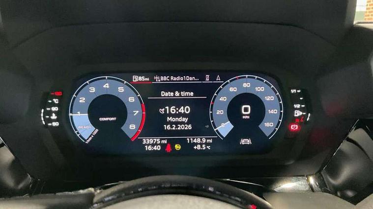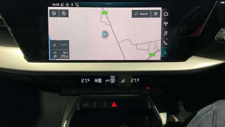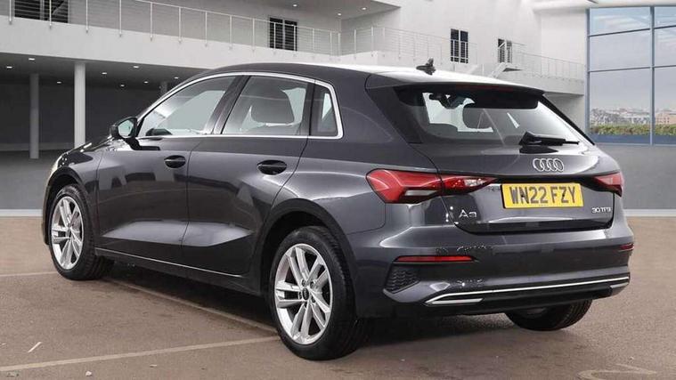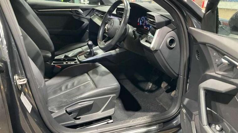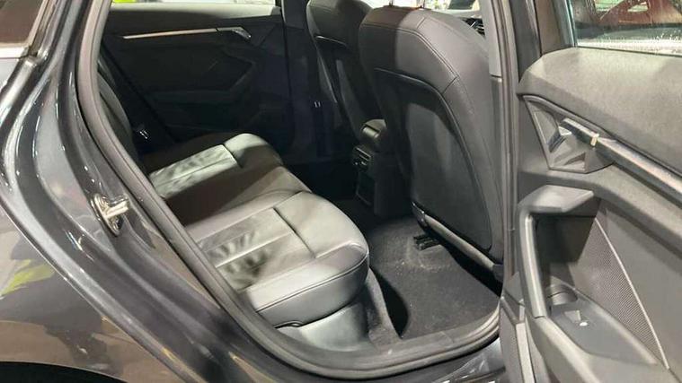 Audi connect emergency call and service, Audi drive select (Auto, Comfort, Dynamic and Individual), Audi smartphone interface, Audi Virtual Cockpit - 10.25" digital and colour instrument cluster, Automatic start/stop system with recuperation, Bluetooth interface, Collision avoidance assistant, Electromechanical power speed sensitive steering, Lane departure warning system, MMI Navigation Plus with high resolution 10.1" colour touch screen display, Service indicator, Trip computer, Voice control system with natural language interaction, Standard suspension, 2xUSB-C connection with data and charging functions, 6 passive loudspeakers, DAB Digital radio, 3rd brake light, Acoustic glass windscreen, Aluminium window trim, Auto dimming frameless rear view mirror, Body colour exterior mirrors, Body colour roof spoiler, Electrically adjustable/heated/folding/auto dimming door mirrors with integrated LED indications + kerb view function for passenger side, Front electric windows, LED daytime running lights, LED headlights and halogen rear lights, Light and rain sensors, Rear electric windows, Rear window, rear door windows and rear side windows in clear glass, Rear wiper, 12V socket and storage compartment in front centre console, 40/20/40 split folding rear seat bench with cupholder, Dual zone electronic climate control, Front and rear centre armrest, Front and rear headrests, Front door sill trims with aluminium inlay, Front/rear floor mats, Height and reach adjustable steering wheel, Interior lighting - Front and rear roof module including reading lights, glove compartment light and right hand side, Luggage compartment floor covering, Manual boot compartment lid, Manually adjustable front seats, Seat side bolsters, Steel grey cloth headlining, Twin leather upholstery, Aluminium interior elements pack - A3 Sportback, Sport styling pack - A3 Sportback, 3x3 point rear seat belts, Driver and front passenger airbag with passenger airbag deactivation, Electronic Stabilisation Control (ESC) including ABS, ASR and EDL, First aid kit with warning triangle and 2 safety vests, Front side airbags with head airbags and interaction airbag, Hill hold assist, Pre-sense front with pedestrian and cyclist detection, Seatbelt monitoring, Tyre pressure loss indicator, Anti theft alarm, Anti-theft wheel bolts, Electronically operated child lock, Immobiliser, Remote control central locking, Inlays with silk effect paint in platinum grey,