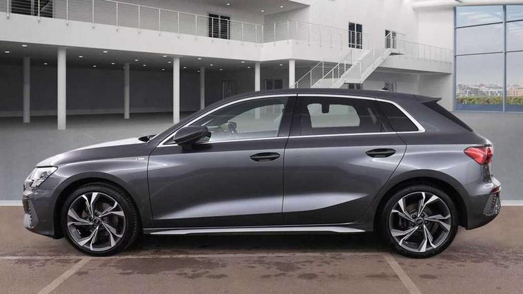 Audi drive select (Auto, Comfort, Dynamic, Efficiency and Individual), Audi smartphone interface, Audi Virtual Cockpit - 10.25" digital and colour instrument cluster, Automatic start/stop system with recuperation, Bluetooth interface, Collision avoidance assistant, e-Call (emergency call), Electromechanical power speed sensitive steering, Lane departure warning system, MMI Navigation Plus with high resolution 10.1" colour touch screen display, Service indicator, Trip computer, Voice control system with natural language interaction, Sports suspension, 2xUSB-C connection with data and charging functions, 6 passive loudspeakers, DAB Digital radio, 3rd brake light, Acoustic glass windscreen, Aluminium window trim, Auto dimming frameless rear view mirror, Body colour exterior mirrors, Electrically adjustable/heated/folding/auto dimming door mirrors with integrated LED indications + kerb view function for passenger side, Front electric windows, Illuminated aluminium inserts front door sills with S logo, LED daytime running lights, LED headlights with LED rear lights and dynamic rear indicators, Light and rain sensors, Privacy glass - dark tinted rear window, rear door and side windows, Rear electric windows, Rear side air outlets in grained matt black, Rear side wing doors, Rear wiper, S line bumpers, S roof spoiler, 12V socket and storage compartment in front centre console, 3 seat bench in 2nd row, 3 spoke leather multifunction steering wheel with paddle shift, 4 way electrically adjustable lumbar support for driver and front passenger, 60/40 split folding rear seat bench, Black cloth headlining, Dual zone electronic climate control, Front and rear centre armrest in leather, Front and rear headrests, Front/rear floor mats, Height and reach adjustable steering wheel, Interior lighting - glove compartment light and right hand side, Luggage compartment floor covering, Manual boot compartment lid, Manually adjustable front seats, Seat side bolsters, Single front passenger seat, Stainless steel pedals and front footrest in black, Twin leather upholstery with front sports seats S embossed logo, Aluminium interior elements pack - A3 Sportback, LED interior lighting pack - A3 Sportback, S line styling pack - A3 Sportback, 3x3 point rear seat belts, Driver and front passenger airbag with passenger airbag deactivation, Electronic Stabilisation Control (ESC) including ABS, ASR and EDL, First aid kit with warning triangle and 2 safety vests, Front side airbags with head airbags and interaction airbag, Pre-sense front with pedestrian and cyclist detection, Seatbelt monitoring, Tyre pressure loss indicator, Anti theft alarm, Anti-theft wheel bolts, Electronically operated child lock, Immobiliser, Remote control central locking, Dark spectrum aluminium inlays, accent surfaces in the dashboard and centre console in platinum grey silk effect paint finish,