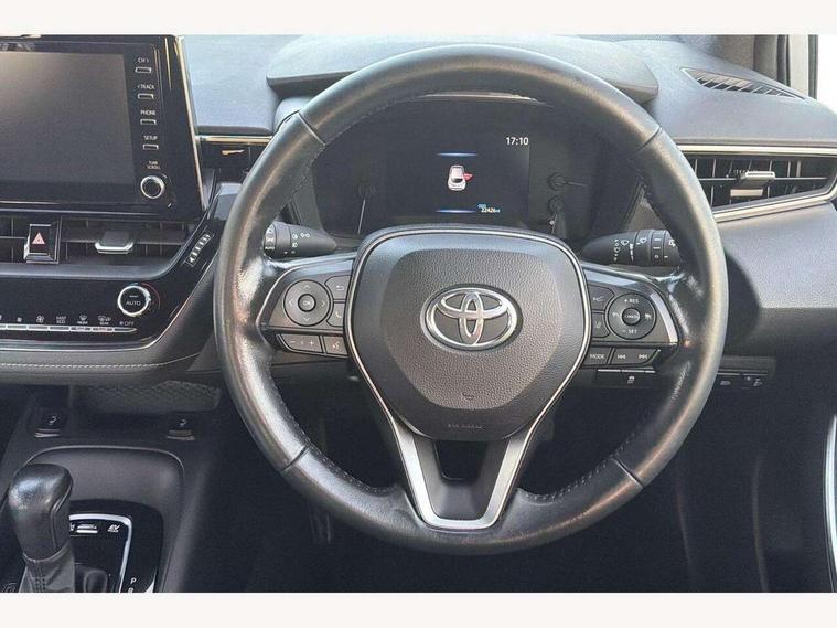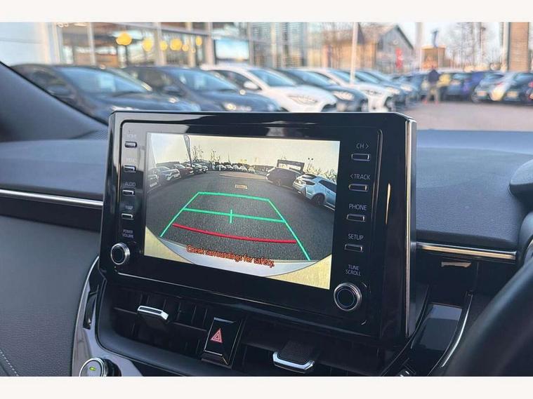 7" Multi information display screen, Bluetooth telephone connectivity, Connected car functionality upgrade, tracker, remote status and e-care, Dynamic radar cruise control (with RSA) including switch on steering wheel, E-call, Electrically assisted power steering, EV drive indicator, Lane Departure Alert (LDA) switch on steering wheel, Memory on adjustable speed limiter, Push button start, Reversing camera, Smartphone integration with Apple CarPlay and Android auto, Gasoline particulate filter, Vehicle Stability Control (VSC), 6 speakers, 8" Touchscreen with MM19 Multimedia system and voice recognition, AM/FM radio, DAB Digital radio, USB and Aux in connectors + 12V front outlet, Anti-jam protection on power windows, Auto up and down function on all power windows, Automatic headlights with high beam assist, Black metallic surround on lower front grille, Black toyota logo in front, Black window frames, Body colour rear spoiler, Body coloured bumpers, Body coloured door mirrors, Body coloured outside door handles, Follow me home headlights, LED daytime running lights, LED front fog lights, LED Headlights, LED High mounted stop light, Manual day/night rear view mirror, Power adjustable heated door mirrors, Power front windows, Power rear windows, Rain sensor, Rear side wing doors, Rear window defogger, Rear window wiper, Shark fin antenna, Time adjustment on intermittent wiper, Turning signal integrated indicators in door mirrors, Unique lower skirt, Unique side rocker with black insert, UV-filter on driver and passenger windows, 3 rear headrests, 3 seat bench in 2nd row, 3 spoke leather steering wheel + gear knob, 60/40 split folding rear seat, Adjustable speed limiter switch on steering wheel, Audio, multimedia and telephone switches on steering wheel, Boot light, Centre room light, Clean air filter, Driver and front passenger personal light, Driver and passenger assist grip, Driver and passenger sun visor with mirror and light, Dual zone automatic air conditioning with ECO mode switch, Fabric armrests, Front and rear cup and bottle holders, Front door pockets, Front head restraints, Front passenger seat, Heated driver and front passenger seats, Illuminated entry system in room lamp, ISOFIX seat fixing (2 fixings on rear outer seats), Leather gear shift with satin chrome on gear shift console, Manual height adjustable for driver and front passenger seat, Parcel shelf, Passenger seat back pocket, Pollen filter, Power adjustable lumbar support on driver seat, Power window switches with satin chrome inserts, Quilted fabric upholstery with grey stitches seats, Rear armrest with 2 cupholders, Rear passenger coat hooks (2), Satin chrome inside door handles, Shopping bag hooks in luggage compartment, Sliding armrest on centre console box, Slow opening glovebox with lights, Tilt/telescopic steering column, Voice recognition switch on steering wheel, Whiplash Injury Lessening (WIL) feature (active headrest) for seats, Toyota safety sense 2 pack - Corolla, 3x3 point rear seatbelts, Adjustable driver and front passenger seat belt extender to top anchor point, Anti lock braking system + Electronic brake force distribution, Brake assist function, Child locks on rear doors, Downhill Assist Control (DAC), Electronic parking brake, Emergency brake light signal (EBS), Front passenger airbag on/off switch, Front seatbelt reminder, HAC - Hill start assist control, Rear seat belt reminder, Seatbelt pretensioners and force limiters, Supplemental restraint system (SRS) 7 airbags - dual driver, dual side curtain, side impact and driver knee airbags, Traction control, Tyre pressure warning system, Acoustic vehicle alert system (AVAS), Alarm with motion sensor and immobilizer, Remote central locking + deadlocks, Satin chrome dash trim, Soft touch texture on upper dashboard, Unique wheel finish with red wheel cap,