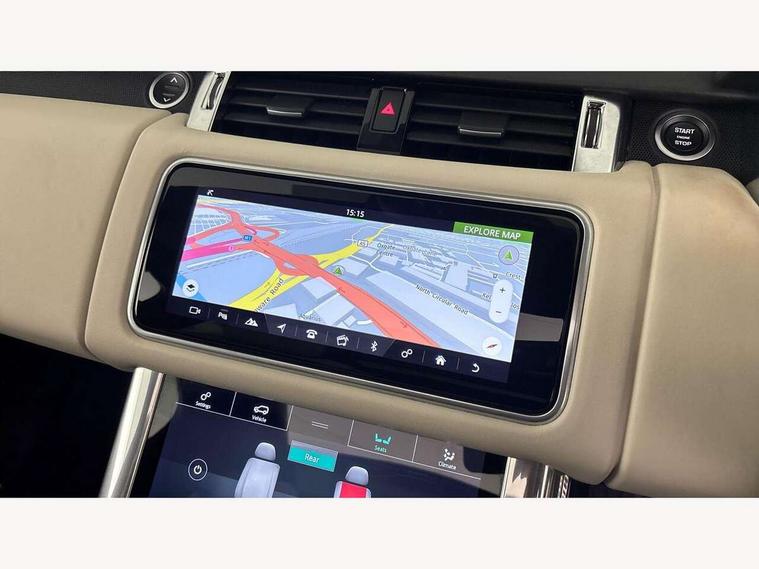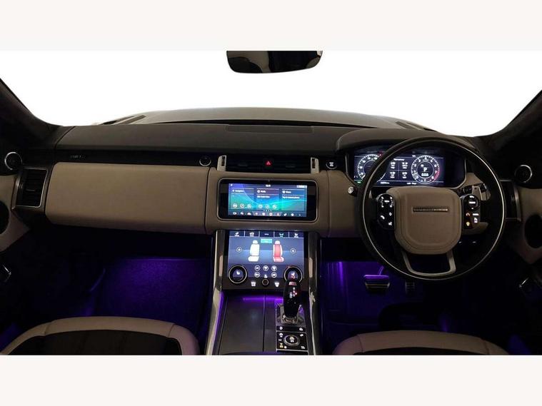360 Parking aid, All Terrain Info Centre, Android Auto, Apple car play, Bluetooth connectivity, Clear exit monitor, Driver condition monitor, Electric power assisted steering (EPAS), Incontrol apps in vehicle touchscreen, Interactive Driver display instrument cluster, Mist sensor, Navigation pro system with 10" touch screen, app interface and media storage, Pro services and wifi hotspot, Push button start, Rear traffic monitor, Remote premium - Upgraded Incontrol remote app including remote climate control (engine dependent), remote lock + Unlock and remote beep + flash, TFT Virtual Instrument Panel, Touch pro duo system, Traffic sign recognition with adaptive speed limiter, Trip computer, Adaptive dynamics, All terrain progress control, Configurable dynamics, Electronic air suspension, Gradient release control (GRC), Terrain Response 2 with dynamic program, Twin speed transfer box, Bluetooth audio streaming, DAB Radio (Digital Audio Broadcasting), Incontrol protect - SOS emergency call with automatic collision detection, optimised assistance call and Incontrol remote app essential, USB/aux input socket, Acoustic front and toughened rear side glass, Acoustic laminated front windows, Adaptive brake lights, Auto dimming interior rear view mirror, Automatic headlights, Body coloured side sills and bumpers corners, Centre high mounted stop light, Electric windows with one touch open/close and anti trap, Electrical towing preparation, Engine cover, Follow me home lighting, Front and rear recovery eyes, Front fog lights, Headlight power wash, Heated rear window, Heated windscreen includes heated washer jets, HST badge, Illuminated metal treadplates with brand name script, LED rear lamps, Narvik black mirror caps, Power fold, auto-dimming, heated door mirrors with memory and approach lights, Privacy glass (Tinted glass rear of B pillar), Rain sensing windscreen wipers, Rear fog lights, Rear side wing doors, Rear wash/wipe, Remote window closing, Side repeater indicators in mirror, Sport Badge in black, Standard bonnet, Trailer stability assist, Twin bright tailpipes, 2 way active front head restraints, 2 way rear head restraints, 3 seat bench in 2nd row, 60/40 load through rear seats, Aluminium gear shift paddles, Auto air recirculation, Bright metal foot pedals, Centre console with armrest, Climate control memory, Customer configurable single point entry, Driver's footrest, Extended leather upgrade includes door top rolls and leather instrument panel mid section, Front and rear cupholders, Front door storage space, Front map lights, Front seat back map pockets, Front stowage pocket, Front/rear passenger grab handles, Heated steering wheel, Isofix child seat preparation, Loadspace light, Loadspace mounting provisions, Lockable glovebox, Multifunction steering wheel, Pollen filter, Power socket, Reach/rake electric adjustable steering column + entry/exit tilt away, Rear centre armrest, Rear ISOFIX, Roller blind loadspace cover, Single front passenger seat, Sports pedals, Suede cloth headlining, Suede cloth steering wheel, Three 12V accessory power outlets, Carbon fibre exterior pack - Range Rover Sport, Smartphone pack - Range Rover Sport, 3 point seatbelts on all seats, Anti-lock braking system (ABS), Brake pre-fill technology, Cornering brake control (CBC), Curtain airbags, Customer configurable autolock, DSC - Dynamic Stability Control, Dual stage driver/passenger airbags, EBD - Electronic brakeforce distribution, Electric parking brake, Electronic traction control, Emergency braking includes city, urban AEB and pedestrian, Front seatbelt pretensioners, Gradient acceleration control, Height adjustable front seatbelts, Hill descent control, Hill launch assist, Low traction launch, Passenger seat occupant detector with front airbags, Power operated child locks, Roll stability control, Seatbelt warning, TPMS (Tyre pressure monitoring system), Immobiliser, Intrusion sensor, Keyless entry, Locking wheel nuts, Perimetric and volumetric anti theft alarm, Remote locking,