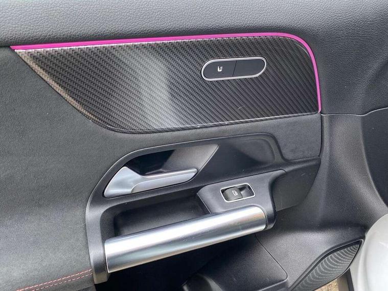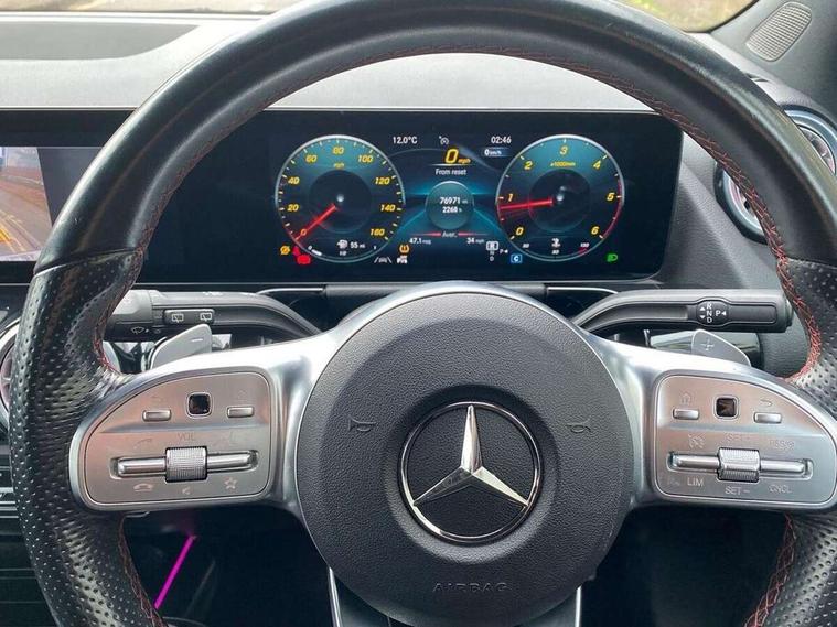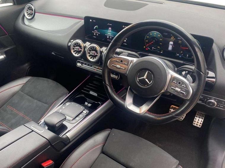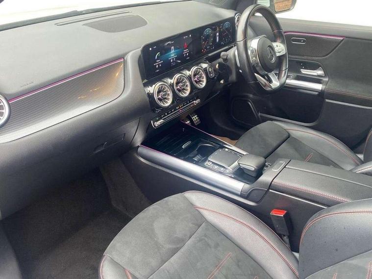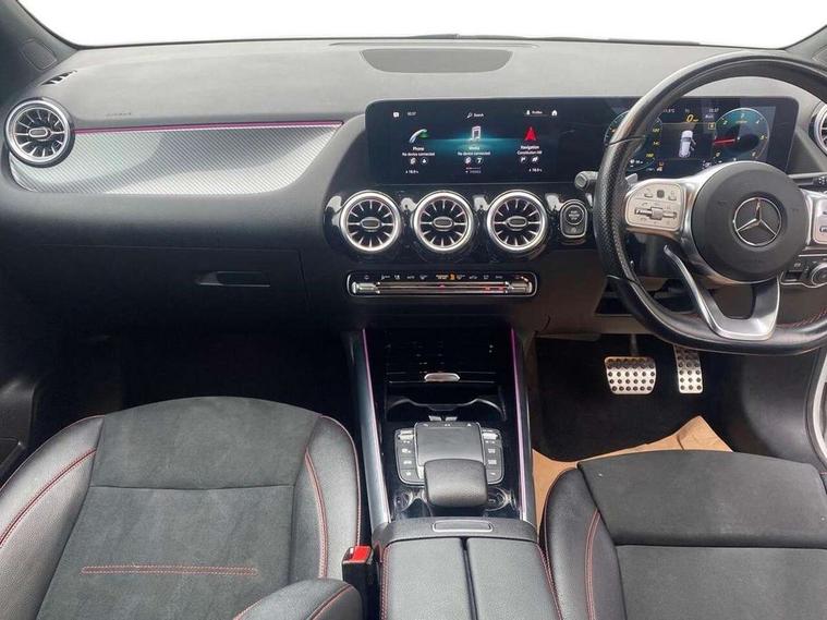10.25 inch touchscreen central media display, 10.25" Digital instrument cluster display screen, Active lane keeping assist, Attention assist, Cruise control + speed limiter, Direct steering, DYNAMIC SELECT with a choice of driving modes (ECO, Comfort, Sport and Individual), ECO start/stop function, Fluid level warning indicator for fuel, oil, coolant and washer fluid, Hard-disk navigation, Hey Mercedes Voice activation, Lamp failure indicator, Mercedes me connect including emergency call system, accident recovery, breakdown and maintenance management, Mercedes me remote services, Multi function trip computer, Outside temperature gauge, Owners manual and service booklet in English, Pre-installation of private car share, Radio aerial integrated into front and rear windshields, Service indicator (ASSYST), Smartphone integration with Apple CarPlay and Android auto, Speed limit assist, Status display for rear seat belts in instrument cluster, Lowered comfort suspension, Rear axle multi-link, 2 USB ports (type C) in rear stowage compartment and one in front of center console, Bluetooth connectivity including audio streaming, DAB Digital radio, MBUX multimedia system, Media interface, Mercedes-Benz (225w) sound system with 10 speakers, Adaptive brake lights, Aerial for GPS, Aluminium roof rails, AMG front and rear apron, AMG specific/dual flow exhaust pipes in chrome (non-functional), Automatic headlamp activation, Beltline strips and weather strip in chrome, Black grained claddings with chrome parts, Body colour bumpers, Body colour door mirrors, Body coloured door handles with chrome insert for keyless entry, Car wash function, Dark privacy glass from B-pillar backwards, Electric front windows, Electric rear windows, Electrically adjustable and heated door mirrors with integrated LED indicators, Heated glass rear windscreen + timer control, Heated windscreen wash system, Interior mirror with black reading lamps and frameless, LED high performance headlamps with integrated LED daytime running lights, LED tail lights in two piece design, LED third brake light, Matt titanium grey front and rear apron trim, Pre-installation for trailer coupling, Rain sensor windscreen wipers, Rear fog lights, Rear side wing doors, Roof spoiler, Single lamella raditor grille with chrome dotted diamond grille and inlay, 12V power socket in centre console, 3 seat bench in 2nd row, 3 spoke multifunction sports steering wheel in nappa leather with flattened bottom and perforated grip area, 40:20:40 split folding rear seat backrests, Adjustable head restraints, Air conditioning - Two zone thermotronic luxury automatic climate control with display, Ambient lighting in front headrests, AMG floor mats with AMG lettering in front, Artico man-made leather/Microfibre Dinamica upholstery with red contrast stitching, Auto Mercedes-Benz child seat recognition sensor, Black roof lining, Brushed door pulls in silver chrome, Courtesy light in boot, Front centre armrest with stowage, Galvanished gear shift paddles on steering wheel, Heated front seats, illuminated door sills with changeable cover, Illuminated glovebox, Interior lighting - 64 colour Ambient lighting, Leather trimmed gearknob, Luggage net on driver/front passenger seat backrest, Manually height and reach adjustable steering column, Multi-gesture touchpad control on center console, Single front passenger seat, Sports pedals in brushed stainless steel with black rubber studs, Sports seats, Stowage compartment in centre console, Stowage compartment with retractable cover, Sunvisors with illuminated vanity mirrors, Twin front cup holders, Two outer rear seat isofix and top tether child seat fixing points, AMG body styling pack - GLA, Comfort seat pack - GLA Class, Interior lighting with light and sight pack - GLA, Load compartment pack - GLA, Mirror pack - GLA Class, Parking pack - GLA, 3 rear 3 point seatbelts, ABS with Brake Assist, Active bonnet pedestrain safety measure which detects an impact and raises bonnet by 65mm, Active brake assist includes forward collision warning system with autonomous braking, Adaptive brake assist with hold function and hill start assist, Bonnet with power domes, Brake pad wear warning indicator, Childproof locks manually operated for rear doors and electrically operated for rear power windows, Crash responsive emergency lighting, Driver and passenger head and side airbags, Drivers knee airbag, Dual stage driver/passenger airbags, Electronic parking brake, ESP curve dynamic assist, ESP with ASR, Front and rear seatbelt reminder, Front brake callipers with Mercedes Benz logo lettering on front, Front brake discs internally ventilated and perforated, Front passenger seat occupancy sensor, Tyre pressure monitoring system, Warning triangle and first aid kit, Window airbags, Alarm system with immobiliser and interior protection -Thatcham category 1, Keyless Go starting function, Remote central locking and crash sensor with emergency opening function, Urban guard vehicle protection, Vehicle key with decorative surround in chrome, Carbon structure trim, Chrome air vent surrounds, 19" AMG 5 twin spoke light alloy wheels aerodynamically optimised painted in tantalite grey with a high sheen finish, Summer tyres, Tirefit tyre sealant kit,