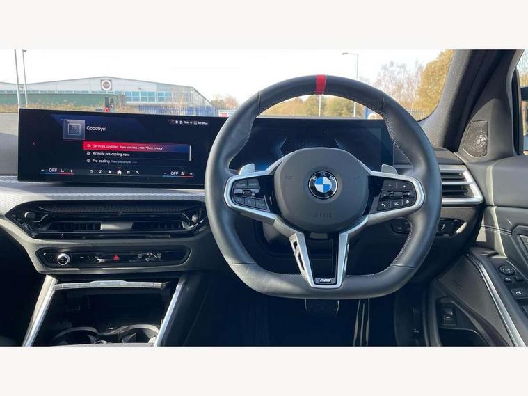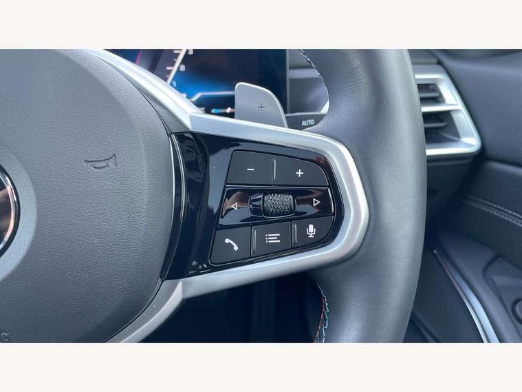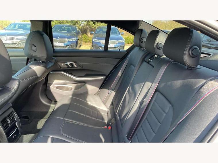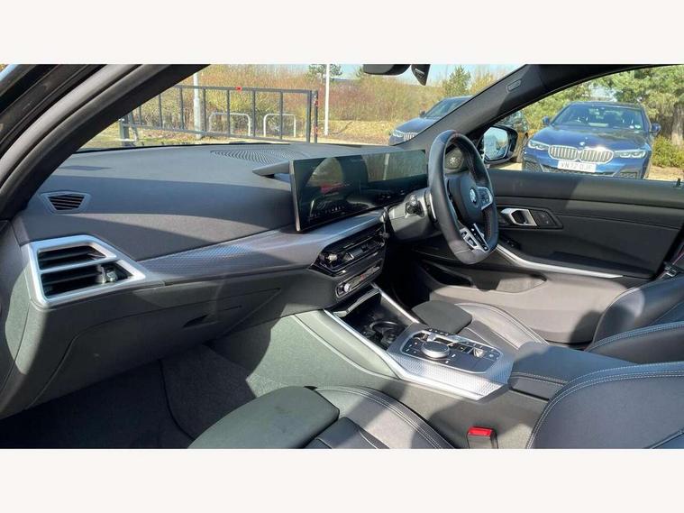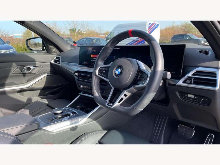Active guard plus, Attentiveness assist, Automatic Start/stop button, Bluetooth Wi-Fi interface, BMW iDrive, BMW Teleservices, ConnectedDrive Services - last state call, Oil sensor for level and grade, Personal e-SIM, Shifting point display, Variable sport steering, 48V Mild hybrid technology, Double joint spring strut front axle, Electronic differential lock control (EDLC), Fuel tank breather system, M Sport differential, Steptronic Sport automatic transmission with steering wheel mounted gearshift paddles launch control and xtreme drive lever control, DAB tuner, 3rd brake light, Auto dimming rear view mirror, Automatic headlight beam throw control with load dependent regulating reaction, dynamic compensation of braking dive and acceleration squat, Bi-LED Low and high beam headlights, BMW emblem, engine compartment lid and tailgate, Body colour roof fin, Door sill strips, Electric windows - front and rear, with open/close fingertip control, anti-trap facility and comfort closing, Fading support, Follow me home headlight function, Front and rear bumper system with replaceable deformation elements, Front apron plastic in body colour, Fuel filler flap - right rear in body colour, Heat protection glazing on front windows and windscreen, Heated washer jets, LED daytime running lights, LED rear lights, LED turn indicator, Licence plate panel integrated into front bumper and tailgate, M high gloss shadow line exterior trim, Matt black B-pillar finsher, Matt black window recess cover, One piece front bumper cover including towing eye cover in body colour, Rain sensor with automatic headlight activation, Rear boot, Rear side wing doors, Reversing lights, Side frame decorative moulding black matt, Sun and heat protection glass dark tinted on rear windows and windscreen, Trailer stabilisation logic, Welcome lights in interior and door handle area, 12V power socket in front storage compartment, 2 front cupholder in centre console with clamping elements and matt black inlay, 3 seat bench in 2nd row, 3 spoke M Sport multifunction flat bottom leather steering wheel, 3 zone automatic air conditioning, 40:20:40 split folding rear seat with loading system, Ambient inside door handle light, Ambient light design projected onto the left and right entering and exiting area, Ambient lighting front and rear with 9 selectable colours, Ambient storage compartment lighting in the centre console, Anthracite headlining, Armrest integrated in front and rear door trim + front centre console armrest, BMW ID, Contour lighting in instrument panel and door trim panel, Cruise control operation in steering wheel, Driving experience mode switch, Dynamic ambient lighting for welcome, goodbye, open doors, phone call, Electric memory seats, Folding rear centre armrest with 2 cupholders, Front ambient footwell lighting, Front and rear headrests, Front and rear velour floor mats, Front reading light, Heated front seats, Height adjustable mechanically and infinitely variable steering column, Illuminated armrest storage compartment, Illuminated glove compartment, Illuminated luggage compartment, Lashing eyelets in luggage compartment, Single front passenger seat, Sunvisors with illuminated vanity mirrors and ticket pocket, Toolkit located in luggage compartment, Connected pack professional - 3 Series Saloon/Touring, Interior and exterior mirror pack - 3 Series Touring/Saloon, M sport exterior styling pack - 3 Series Saloon/Touring, 3x3 point rear seatbelts, BMW emergency call, Child locks on rear doors, Crash sensor activating of airbags, Unlocking doors, hazard warning lights, interior light, safety battery terminal, Drive-off assistant, Driver and front passenger with seat occupancy detection for driver's and passenger side, Driver and passenger side airbags, body protection at side and airbags deploy from seat backrests, Dry braking, Dynamic brake control, Dynamic stability control + (DSC+) - Anti-lock Braking System (ABS) with brake assist and cornering brake control + Automatic Stability Control (ASC), Dynamic Traction Control - DTC, Electric parking brake including automatic hold function and automatic release of the parking brake when driving off, Front airbag deactivation, Front airbags for driver and front passenger, Head airbags in 1st and 2nd row, head protection at side, curtain airbags open from headliner above 1st and 2nd row, Plastic fuel tank, Side impact protection, Tyre pressure sensors, Ventilated front and rear disc brakes, Warning triangle and first aid kit, Alarm system, Centre lock switch, Closing system with central locking, Electronic vehicle immobiliser, Locking wheel bolts,