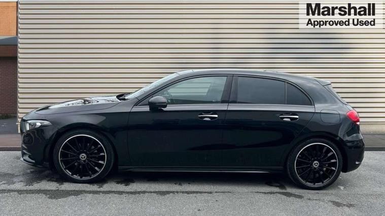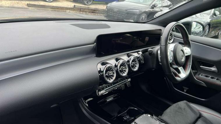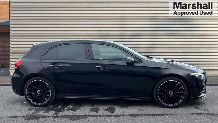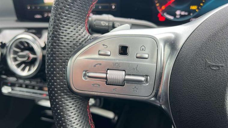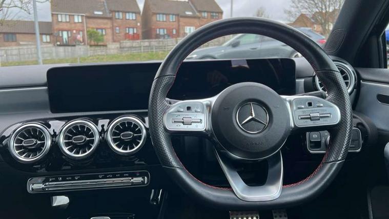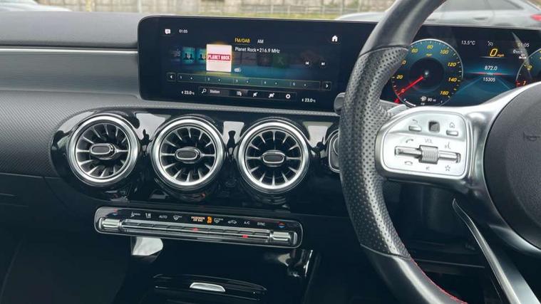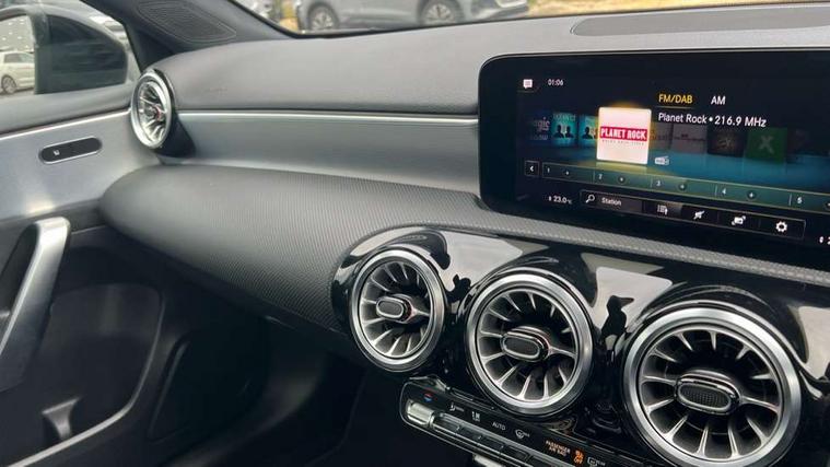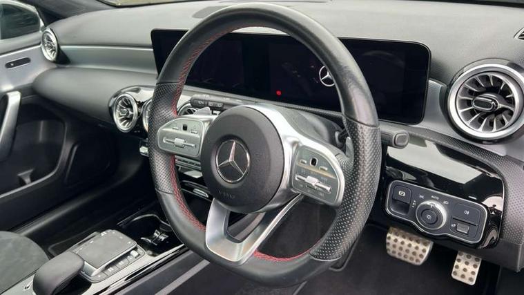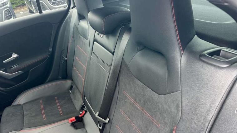 10.25" Digital instrument cluster display screen, 10.25" media display, 180 degree rear view camera with parking guidelines, Active parking assist with visual and audible warning of detected obstacles, Attention assist, Brake pad wear indicator warning light, Car wash mode, Cruise control + speed limiter, Direct steering, Dual bluetooth interfaces, DYNAMIC SELECT with a choice of driving modes (ECO, Comfort, Sport and Individual), ECO start/stop function, Fluid level warning indicator for fuel, oil, coolant and washer fluid, Hard-disk navigation, Hey Mercedes Voice activation, Lamp failure indicator, Lane keeping system, Mercedes me connect including emergency call system, accident recovery, breakdown and maintenance management, Mercedes me remote services, Outside temperature gauge, Owners manual in English, Pre-installation for private car sharing, Preinstallation for Mercedes Benz link, Service indicator (ASSYST), Smartphone integration with Apple CarPlay and Android auto, Speed limit assist, Speed sensitive power steering, Traffic sign assist, Trip computer, Ultrasonic sensors positioned in the front and rear bumpers, Lowered comfort suspension, Rear axle torsion beam, 2 USB ports (type C) in rear stowage compartment and one in front of center console, 6 speakers, DAB Digital radio, MBUX multimedia system with DAB digital radio and touchpad including satellite navigation, Mercedes-Benz sound system - 100W, 4 Electric Front and Rear windows, Adaptive brake lights, AMG bodystyling - Front apron with splitter in chrome, rear apron with chrome trim and chrome visible trim elements in tailpipe, Automatic headlights, Black weather strip, Body colour bumpers, Body colour door handles with chrome inserts, Body colour side skirt, Electric adjustable and heated door mirrors with integrated LED side indicators, Exclusive diamond radiator grille, Exhaust system - Twin visible tailpipes in polished stainless steel, Headlamp assist automatic headlamp activation, Heated glass rear windscreen + timer control, LED daytime running lights, LED High level third brake light, LED tail lamp, Multibeam LED headlights with adaptive highbeam assist plus, Panoramic sliding sunroof, Privacy glass, Radio aerial, Rain sensing windscreen wipers with two sensitivity settings, Rear fog lights, Rear side wing doors, Rear wiper, 3 seat bench in 2nd row, 3 Spoke flat bottom leather multi function steering wheel with perforated leather in grip area, 40:20:40 split folding rear seats, Artico man-made leather/Microfibre Dinamica upholstery with red contrast stitching, Auto Mercedes-Benz child seat recognition sensor, Black air vents with surround in silver chrome, Black roof lining, Brushed stainless steel sports pedals with rubber studs, Controller on centre console with chrome surround, Floor mats with AMG lettering, Front centre armrest with storage compartment, Front seat backs luggage nets, Galvanished gear shift paddles on steering wheel, Heated front seats, Height/reach adjustable steering column, Illuminated Mercedes Benz lettering front door sills with changeable cover, Interior lighting - 64 colour Ambient lighting, Interior mirror with reading lamps in black and frameless, Rear armrest with 2 cupholders, Rear head restraints, Seat occupancy sensor for front passenger seat, Single front passenger seat, Sports seats with integrated headrests, Stowage compartment in centre console with retractable cover, Sunvisors with illuminated vanity mirrors, Touchpad on center console, Twin front cupholders, Two zone thermotronic luxury automatic climate control, Light and sight pack - A Class, Mirror package - A Class, Night pack - A Class Saloon/Hatchback, Seat comfort pack - A Class, 3 rear 3 point seatbelts, ABS with Brake Assist, Active bonnet, Active brake assist includes forward collision warning system with autonomous braking, Adaptive brake assist with hold function and hill start assist, Black seatbelts, Childproof locks manually operated for rear doors and electrically operated for rear power windows, Crash responsive emergency lighting, Driver and passenger head and side airbags, Drivers knee airbag, Dual stage driver/passenger airbags, Electronic parking brake, ESP curve dynamic assist, ESP with ASR, Front and rear seatbelt reminder, Front brake callipers with Mercedes Benz lettering, ISOFIX and top tether child seat fixing points in two outer rear seats, Tyre pressure monitoring system, Warning triangle and first aid kit, Window airbags, Alarm system/interior protection/immobiliser, Keyless entry lock/unlock, Keyless Go, Remote central locking and crash sensor with emergency opening function, Urban guard vehicle protection system with immobiliser and interior protection, Matrix look light longitudinal grain aluminium trim element, 19" multi spoke light alloy wheels painted in black with a high sheen rim flange, Summer tyres, Tirefit sealant kit,