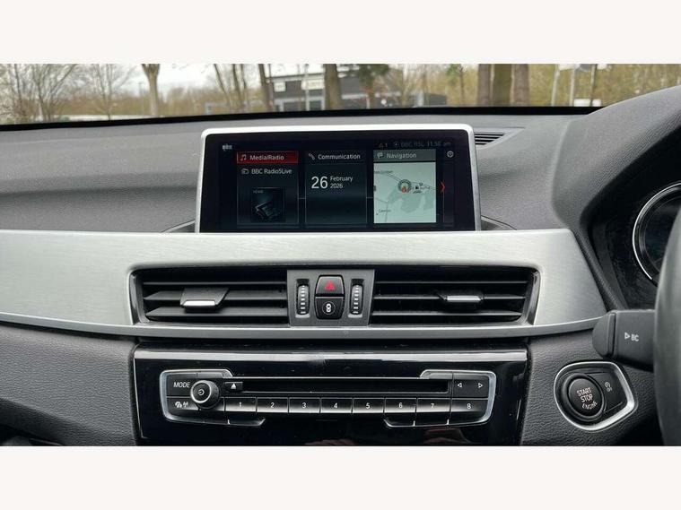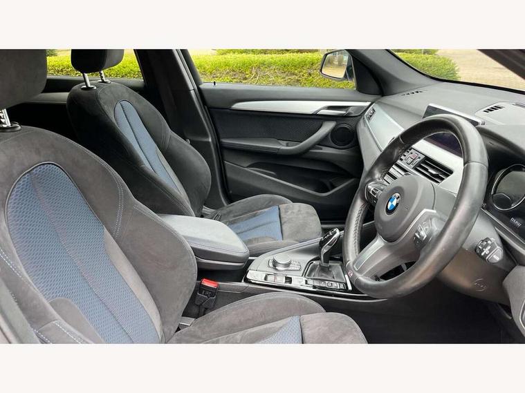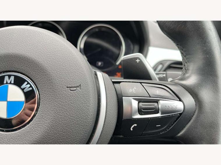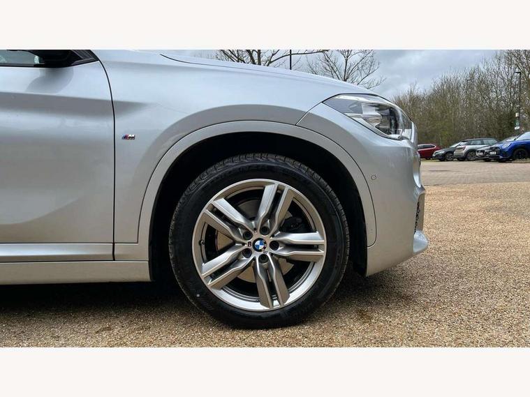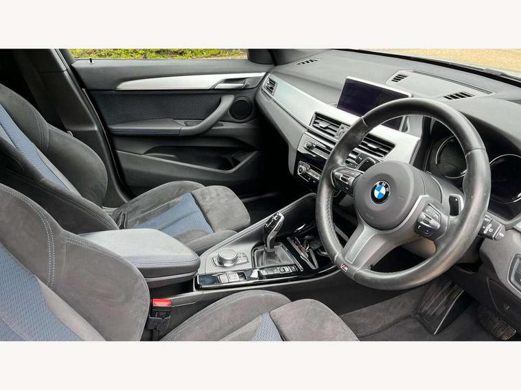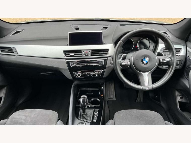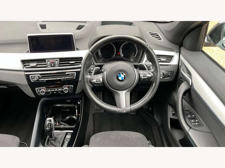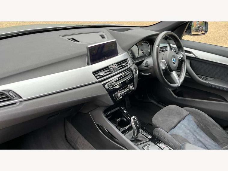 Active Guard incl speed limiting and lane departure functions with auto steering, and front collision warning with brake intervention, Ambient temperature display, Attentiveness assist, Automatic tailgate opening, BMW Online services, BMW remote services, BMW Teleservices, Brake pad wear indicator in front and rear, Instrument cluster with speedometer with miles per hour read out, tachometer and fuel gauge, Lights on warning by audio warning signal when ignition is switched off, On board computer, Outside temperature gauge, Personal Profile - automatic lock when driving away selectable, Real time traffic information, Service interval indicator, Speed limiter, Stop/start button, Tyre puncture warning system, 12V compressor with integrated sealant injection bottle and hose, Drive performance control with ECO PRO comfort + sport mode, Electronic differential lock, High precision injection, Performance Control, 2 USB Power socket for rear seat, BMW professional radio with CD player, DAB Digital radio, USB connection located in centre console, USB/audio interface, Adaptive LED Headlights, Adjustable headlights, Body colour bumpers, Body colour door handles, Body colour door mirrors, Clear lenses direction indicator lights, Direction indicator side lights integrated exterior mirrors, Dynamic brake lights, Electrically adjustable and heated door mirrors, Fingertip control / anti-trap function on electric window, Follow me home headlights, Front air inlets with black matt finisher and silver matt highlight, Front and rear electric windows, Front fog lights, Halogen headlights, Headlight beam throw control, Heat insulating tinted glass, Heated windscreen washer jets, High level third brake light, kidney grille with high gloss black vertical slats, LED daytime running lights, Lightweight engineering, M aerodynamic body styling, M door entry sills, M logo designation in side chrome, Rain sensor including auto headlights activation, Rear fog lights, Rear window aerial, Rear window wash/wipe, Reversing light in rear light cluster, Shark fin antenna, Sill cover in silver matt insert, Twin chrome exhaust tailpipes x2, Visible VIN plate, Welcome home function, 12v power point in centre console, 3 rear headrests, 3 spoke sport nappa leather steering wheel, 4 grab handles, Anthracite headlining, Boot light, Centre console with cupholders, Child seat ISOFIX attachment for two outer rear seats and front passenger seat with anchorage points, Driver and front passenger heated seats, Driver/passenger sunvisors with ticket holders, Drivers folding storage compartment, Dual zone automatic air conditioning, Extended storage, Front and rear door armrests, Front centre armrest/sliding cover, Front sports seats, Front/rear adjustable head restraints, Gearshift lever with M designation, Illuminated glovebox, Leather gearknob/gaiter/handbrake grip, LED ambient lighting in door trim, Luggage area underfloor compartment, Luggage compartment lighting, Luggage compartment loading edge with stainless steel insert, Multifunction steering wheel, Rake/reach adjustable steering wheel, Rear coded belt buckles, Sliding/split/reclining 40/20/40 rear seat with 60/40 split rear seat base, Steering wheel gearshift paddles, Velour floor carpets, Extended storage package - X1, 3 rear 3 point seatbelts, ABS/EBD, Audio/visual collision warning system, Automatic Stability Control (ASC), Battery safety cut-off, BMW emergency call, Brake drying, Brake energy regeneration, Braking readiness, Collision mitigation braking system, Cornering brake control (CBC), Crash Sensor - activates hazard/interior lighting + unlocks doors, Driver/Front Passenger airbags, Driver/front passenger side airbags, Dynamic brake control, Dynamic stability control + (DSC+), Dynamic Traction Control - DTC, Electronic parking brake, Front and rear head airbags, Front passenger airbag deactivation, Front seatbelt force limiters, Front ventilated disc brakes, Hill start assist, Pyrotechnically pre-tensioned front seatbelts, Rear disc brakes, Rear door child safety locks, Seatbelt warning, Side impact protection, Twin horns, Tyre pressure monitor, Warning triangle and first aid kit, Auto door lock when driving, Central locking including boot and fuel flap with deadlocks, Engine immobiliser, Locking wheel nuts, Remote control Thatcham category 1 alarm, Remote control with integrated key with M specific highlight, High gloss black centre console, Low rolling resistance tyres,