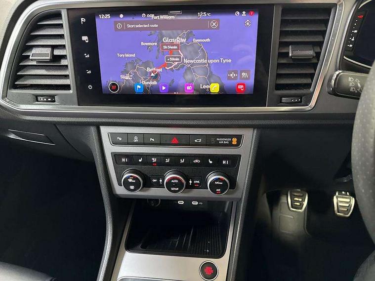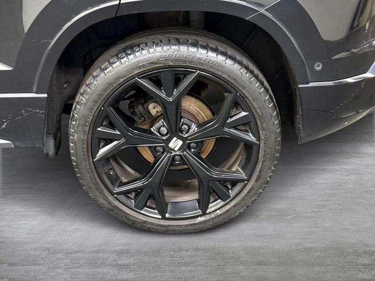 10" Digital cockpit, Cruise control system with speed limiter, E-call, Electric tailgate with virtual pedal, Outside temperature gauge, Progressive power assisted steering, Rear view camera, SEAT drive profile with driving experience button - Normal, Sport, Eco and Individual mode, steering and throttle response, Self parking functionality (includes front and rear parking sensors), Start/stop system, Trip computer, Wireless full link smartphone integration, Wireless phone charger, Beats audio system, Steering wheel mounted audio/phone controls, Black roof rails, Black side window trim, Body colour bumpers, Body coloured wheel arch surrounds, Chrome front grille frame, Dark tinted rear windows, Daytime running lights, Door mirrors with welcome light silhouette, Dynamic headlight range control with self adjusting whilst driving, Electric adjustable/heated/folding door mirrors, Front and rear electric windows, Full LED headlamps with lens and LED front fog lamps with cornering function, Illuminated aluminium front door sill, LED rear tail lights with dynamic indicators, Rear exhaust tailpipe, Rear fog lights, Rear side wing doors, Rear wash/wipe, Roof spoiler, Third brake light, Variable front intermittent wipers, 12V socket in front, 3 seat bench in 2nd row, 60/40 split folding rear seat, Aluminium pedals, Driver seat memory function, Dual zone climate control, Electric adjustable driver seat with lumbar adjustment, Front and rear head restraints, Front centre armrest, Front seat back storage pockets, Heated front seats, Height adjustable passenger seats with lumbar adjustment, ISOFIX points in outer rear seats with top tether anchorage points, Leather sports steering wheel and gear knob, Leather upholstery with front comfort seats, Multicoloured ambient lighting with LED interior illumination, Rear armrest and easy back seat release mechanism from boot, Single front passenger seat, Storage compartment in roof console for sunglass, Convenience pack - Ateca, Interior lighting pack - Ateca, Navigation system pack with DAB - Ateca, 3x3 point rear seatbelts, ABS, Traction control system (TCS), Electronic stability control (ESC) and Electronic differential lock system (XDS), Airbags - Driver and front passenger airbag with deactivation, front side, two curtain and driver's knee airbags, Electric parking brake with auto hold function, Front and rear seatbelt reminder, Front assist with autonomous emergency braking, Hill hold control, Manual rear child locks, Single tone horn, Tiredness recognition system, Tyre pressure monitoring system, Alarm, Keyless entry, Locking wheel bolts, Remote central locking, Chrome interior detailing, 19" Exclusive alloy wheels 36/10 in glossy black, Emergency spare wheel,