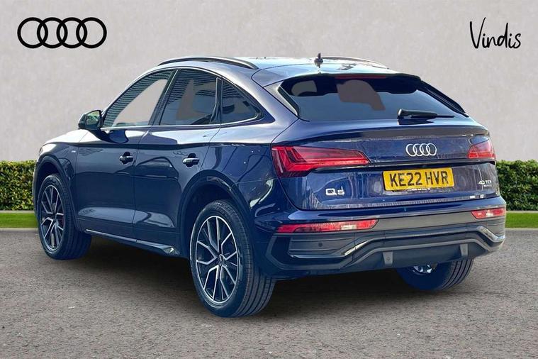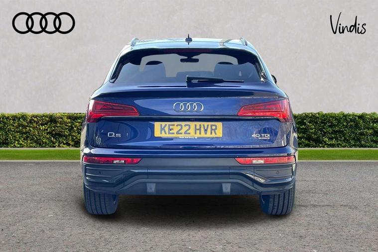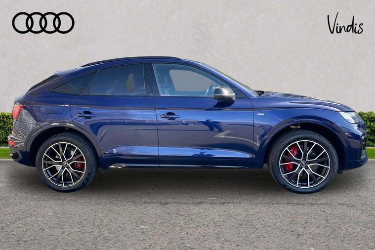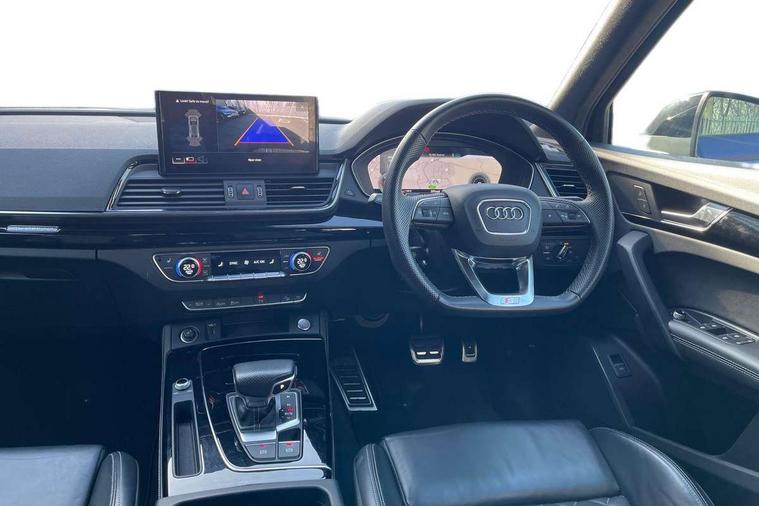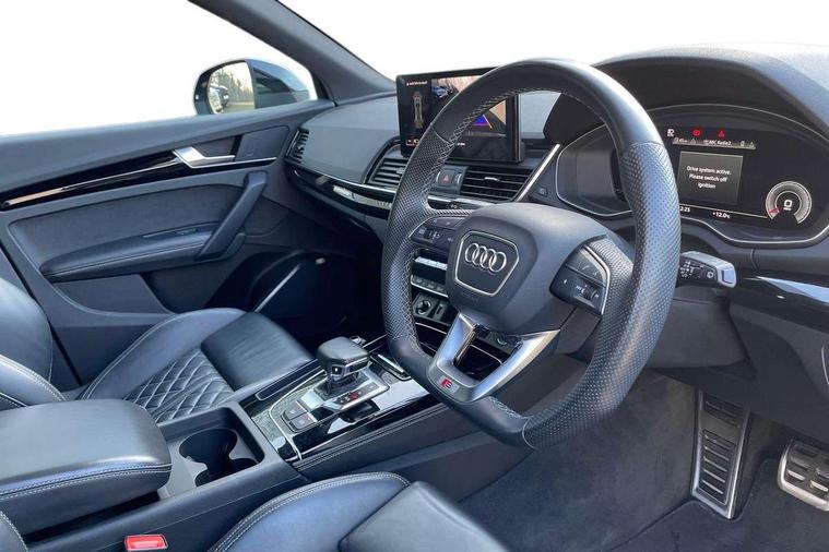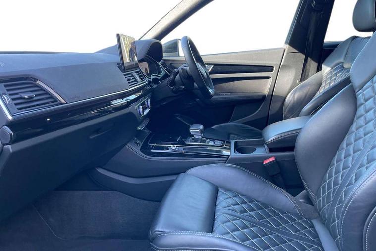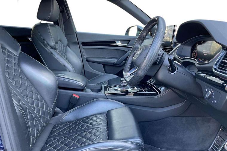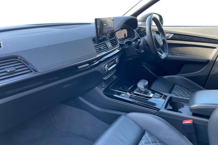 Advanced key with electric hands free boot opening system, Audi connect safety and service (e-call), Audi connect with Amazon Alexa Integration, Audi drive select, Audi virtual cockpit plus with 12.3" screen and three different layout designs, Audi wireless smartphone interface, Automatic start-stop system with coasting functionality and efficiency programme, Bluetooth interface, Electro - mechanical power assisted steering, MMI navigation plus with 10.1" touch screen, Power tailgate, Reversing camera, Service interval indicator, Voice control system with Audi hotword activation "Hey Audi", Diesel particulate filter, Quattro on demand, S line sports suspension, 2 x USB charging port with aux input socket, Bang + Olufsen sound system, DAB Digital radio, Acoustic windscreen, Audi beam with Audi rings logo, Audi matrix LED headlights with dynamic front and rear indicators, Audi rings at front and rear in black, Audi rings decal on rear doors, Auto dimming door mirrors, Auto dimming rear view mirror, Automatic headlights and windscreen wipers, Black door mirrors, Black roof rails, Body colour underbody protection, Chrome plated exhaust trims, Daytime running lights, Door sills in Selenite silver, Electric adjustable/heated/folding door mirrors, Front air inlet surrounds in aluminium, Front and rear electric windows, Headlight washers, High gloss black B pillar trims and triangular rear door trim, High level LED brake light, Rear chrome trim strip below lights, Rear privacy glass and rear side windows, Rear side wing doors, Rear spoiler, Rear wiper, Roof bars, Without model and engine badging at rear, 3 rear headrests, 4 way electric lumbar support for driver and front passenger, 40:20:40 split folding 3 rear bench seat in 2nd row with rear centre armrest, Black cloth headlining, Comfort front centre armrest, Contrast stitching on seats, steering wheel and gear lever gaiter, Deluxe 3 zone electronic climate control, Electrically adjustable front seats, Fine Nappa leather upholstery with diamond pattern contrast stitching + front sport seats with S embossed logo, Front head restraints, Front/rear floor mats, Gear lever in black leather, Heated front seats, Height/reach adjustable steering column, Illuminated door sill trims with S logo, ISOFIX child seat mounting and top tether, Rear seat bench plus, Removable luggage compartment floor, Single front passenger seat, Stainless steel pedals, Sunvisors with vanity mirrors, Trunk roller cover, Artificial leather pack - Q5, Black styling package - Q5 Edition 1, Extended LED Interior multi coloured Lighting Pack - Q5, 3 point seatbelts on all seats, 6 airbags - Driver, front passenger, curtain and side airbags, Electrically operated child locks on rear doors, Electromechanical parking brake, Electronic stabilisation control including ABS, ASR and EDL, Front and rear brake calipers painted in red, Front passenger airbag deactivation, Hill descent control, Hill hold assist, Multi collision brake assist, Pop-up bonnet for pedestrian protection, Pre sense city, Seat belt force limiter, Seatbelt monitoring, Tyre pressure warning, Warning triangle and first aid kit, Anti theft alarm, Anti-theft wheel bolts, Keyless Go access/ignition system, Remote central locking, Piano black finish inlay,