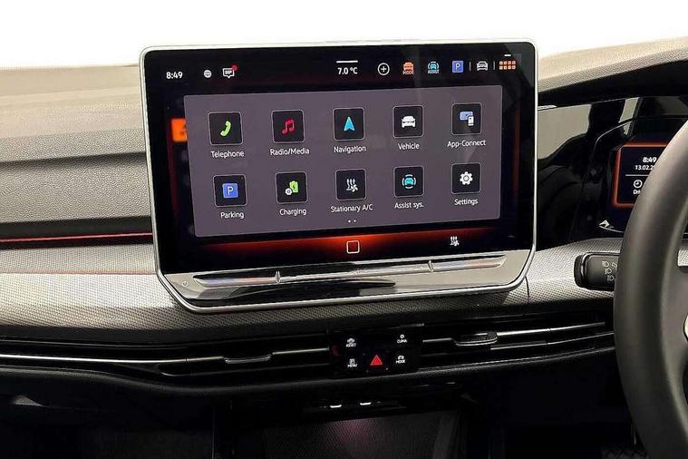 Activated carbon canister, Adaptive cruise control (ACC), Advanced driver attention and drowsiness monitor, Dynamic road sign display, E-Sim card for online connectivity, eCall emergency call system, Multi-color Digital cockpit pro, selection of different info profile possible, Multifunction front facing camera for distance control, Navigation system, Oncoming vehicle braking when turning including swerve support, Side assist blind spot lane change system, rear traffic alert and exit warning system, Speed limiter, Speedo, rev counter, electronic odometer, trip, service interval display, exterior temperature and fuel gauge, Traffic jam assist, Voice enhancer and voice control, Warning signal and warning light for front and rear seatbelts not fastened, We connect plus preparation, We connect preparation, Wireless app connect, Charging cable Mode 2 Type 2 (10A), Charging cable mode 3, type 2 32 A, Hybrid propulsion system, Start-stop system with battery regeneration (recuperation - energy recovery during braking), XDS electronic differential lock for improved traction and handling, 2 USB C ports in front, 2 USB charging sockets on the centre console in the rear charging capacity upto 45W, 6 Speakers - 4 in front and 2 in rear with central speaker, Digital radio reception (DAB), Diversity antenna for FM reception, Gaming platform via car app, Infotainment system with 12.9" display, Mobile phone interface with inductive charging feature, 3rd brake light, Automatic headlamp activation with Coming home and Leaving home feature, Body colour bumpers, Body colour door handles, Body colour door mirrors, Chrome trimmed front air intake surrounds, Chrome trims on the side window bottom, Exterior mirrors convex on the left and aspherical on the right, Front and rear electric windows, Heat insulating windshield made of laminated glass, LED separate daytime running light, Rear exhaust tailpipe, Rear fog light on one side and reversing lights on both sides, Rear side wing doors, Rear windscreen washer and wiper with interval delay, Remote electrically foldable door mirrors, puddle lights and reverse activated passenger's door mirror, Welcome light with surround lighting, 12V socket in front centre console, 12V socket in luggage compartment, 3 rear head restraints, 3 seat bench in 2nd row, Air care climatronic 3 Zone automatic climate control with rear air conditioning control panel, Ambient lighting with 30 colour including LED light unit in front footwell with selectable light colour, Chrome plated radiator grille inserts, air vent surrounds and light switch surrounds, Front + rear black carpet mats, Front centre armrest, ISOFIX anchors for child seats on outer rear bench seats and on front passanger seat compatible for i-Size, Luggage compartment lighting, Plastic gear knob, Rear cupholder and loadthough, Single front passenger seat, Soul black instrument panel, Split folding backrest with centre armrest and unsplit rear seat bench, Standard pedal cluster, Storm grey roof lining, Sun visors with illuminated vanity mirrors, Driver assistance pack - Golf Estate/Hatchback Auto, 3 point height adj front seatbelts + pretensioners, 3 rear three point seatbelts, ABS, Autonomous emergency braking front assist with pedestrian and cyclist monitoring, Child locks on rear doors, Driver and front passenger airbag with front passenger airbag deactivation, Electronic parking brake with auto hold, ESC (Electronic Stability Control), Extended pedestrian protection measures, Hill start assist, Rear disc brakes, Two tone horn, Tyre pressure loss indicator, Volkswagen roadside assistance, Anti theft wheel bolts, Preparation for alcohol interlock, New brushed dark metal decorative inserts for dashboard and front door panels, Tool kit for tyre mobility set, Tyre mobility kit Includes 12V compressor and tyre sealant,