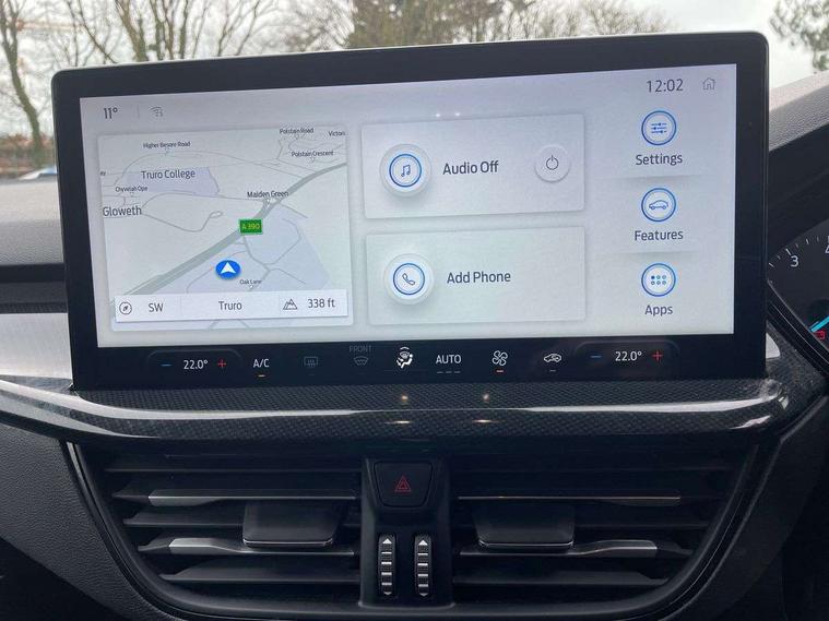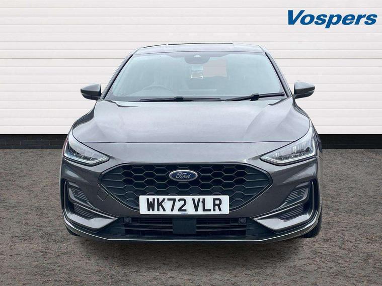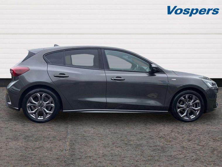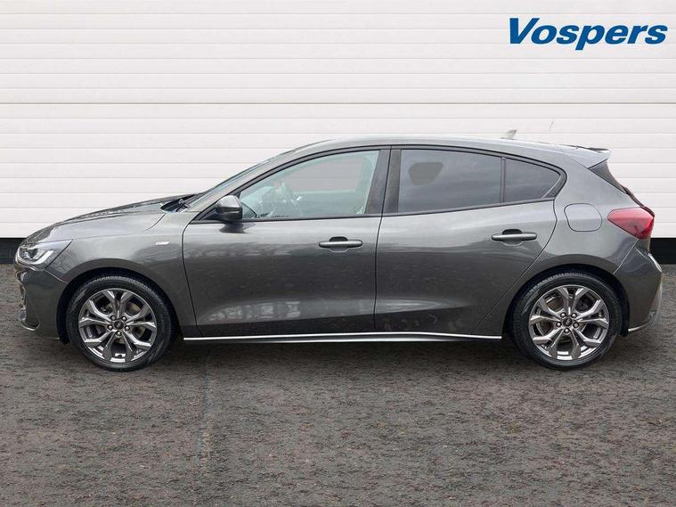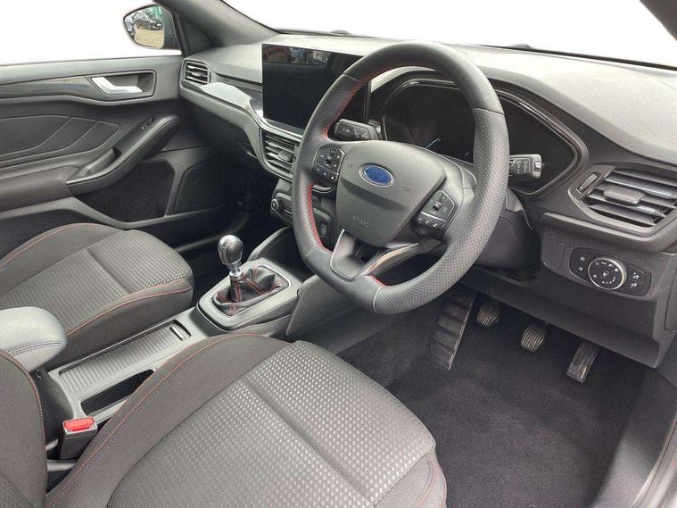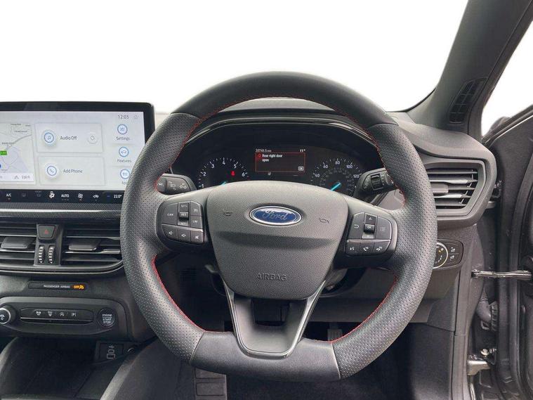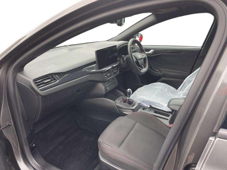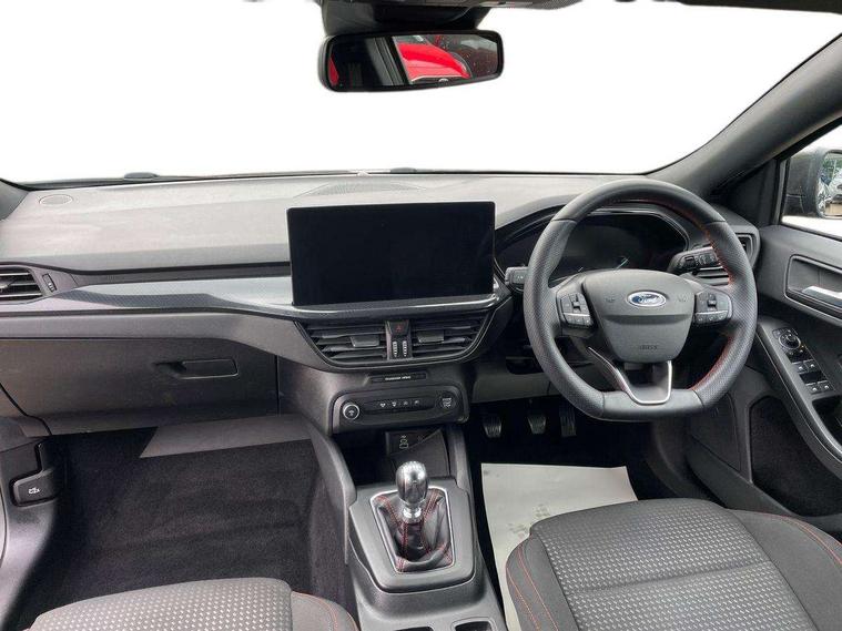 4.2" Colour TFT Ice blue illumination analogue cluster with trip computer, Bluetooth system, Digital clock, Easy fuel capless refuelling system, Eco mode, Ford SYNC 4 Navigation with 13.2'' touchscreen, DAB radio, Emergency Assistance, Apple Carplay & Android Auto, 6 speakers & FordPass Connect, Lane keeping system - lane keeping alert and lane keeping aid, PAS, Rev counter, Selectable drive mode, Service interval indicator, Sports tuned suspension, 2 USB ports, Auto headlamps (on/off), Body coloured door handles, Electrically operated front and rear windows with one touch opening and closing, Electrically operated heated power fold door mirrors with puddle lamp with side indicators, Front variable intermittent wipers with electric wash, Full fixed LED headlamps, Heated rear window, LED daytime running lamp, LED rear lamps, LED third brake light, Polished twin tailpipe, Privacy glass, Quickclear heated windscreen, Rain sensor, Rear side wing doors, Tailgate wash/wipe, Unique ST-Line grille, full bodystyling kit, and large body coloured rear spoiler, 3 rear headrests, 3 seat bench in 2nd row, Cloth upholstery, Dual zone electronic air temperature control, Height adjustable front headrests, Isofix child seat preparation, Reach + rake adjustable steering column, Single front passenger seat, 3x3 point rear seatbelts, ABS+Electronic Brake force Distribution, Auto hold function, Driver airbag, EDL traction control, Electronic parking brake, Electronic stability control, Front and rear seatbelt reminder, Front inertia reel height adjustable seatbelts with pre-tensioners, Front passenger airbag, Front side airbags, Passenger airbag deactivate switch, Post collision braking, Pre collision assist with autonomous emergency braking and pedestrian/cyclist detection, Remote/power child rear door locks, Side curtain airbags, Three rear inertia reel lap/diagonal seatbelts, Tyre pressure monitoring system, Keyless entry and keyless start, MyKey system, Remote central locking & engine immobiliser, Thatcham alarm with power door dead locks, 17" 5 spoke Rock mettalic finish alloy wheels with mini spare wheel,