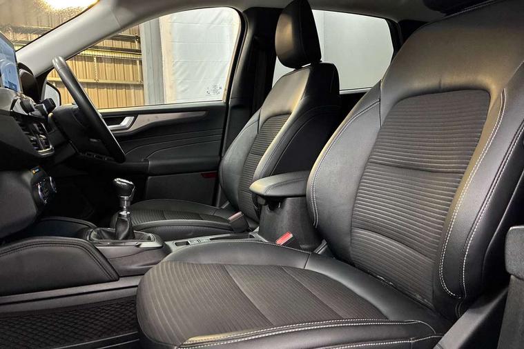 12.3" digital colour instrument cluster, Ford easy fuel, Ford SYNC 3 with 8" TFT LCD touchscreen, App Link, andriod auto/apple carPlay, emergency assistance and navigation with Ford pass connect, Front and rear parking sensors, Hands free power tailgate, Lane keeping aid with lane departure warning, Power assist steering, Rear view camera, Selectable drive modes, Service interval indicator, Standard suspension, Twist beam rear suspension, B&O premium audio system with 10 speakers and subwoofer, 2 USB ports, DAB radio/CD, Auto dimming rear view mirror, Auto headlamps with high and low beam, Auto wipers, Front LED fog lamps, LED daytime running lights, LED rear lights, Power folding heated door mirrors with puddle lights, Power front/rear windows with global close, Privacy glass, Quickclear heated windscreen, Rear side wing doors, Rear spoiler, Rear wiper, Silver roof rails, Third brake light, Twin exhausts, 10 way power adjustable drivers seat, 2nd row sliding seats with 60:40 split, 8 way manual passenger seat including lumbar support and height adjust, Ambient lighting, Centre console with electronic parking brake, Electronic automatic temperature control (EATC), Front and rear floor mats, Front and rear head restraints, Partial premium touch sensico leather upholstery with black cloth inserts, Single front passenger seat, Sports seats, 3x3 point rear seatbelts, Airbags - front driver/passenger, front and rear curtain, Drivers knee airbag, Electronic stability control (ESC) and ABS, Ford MyKey Gen 2 safety system, Manual child proof rear door locks, Post collision braking, Pre collision assist with autonomous emergency braking, Rear seat Occupancy alert, Tyre pressure monitoring system, Engine immobiliser, Keyless entry and Ford power start button (Keyless start), Locking wheel nuts, Remote powered central double locking doors, Thatcham category 1 alarm, 18" 5x2 spoke magnetic and machined finish alloy wheels,
