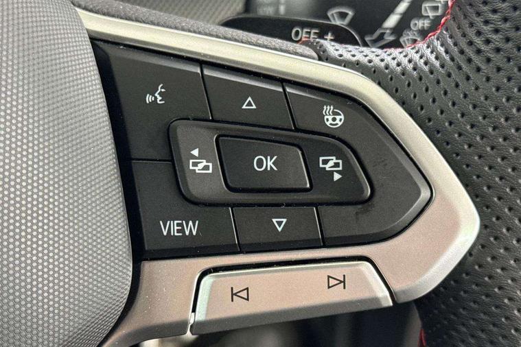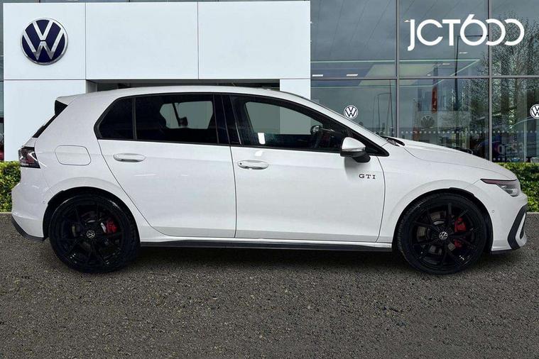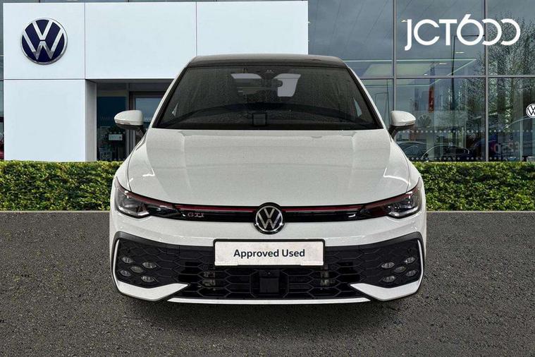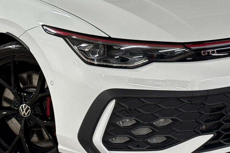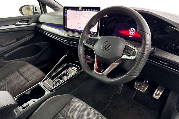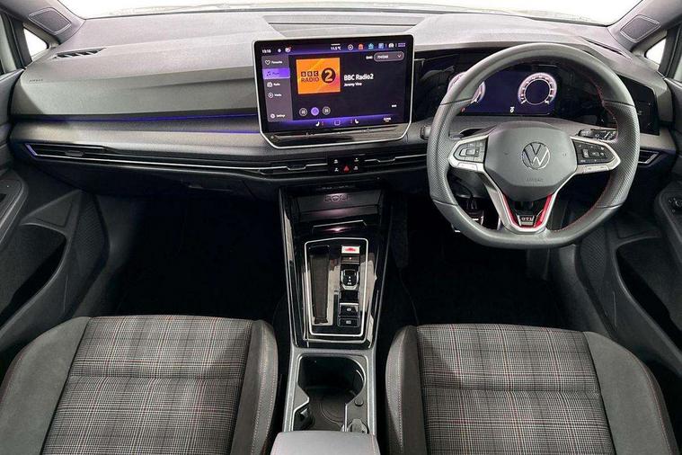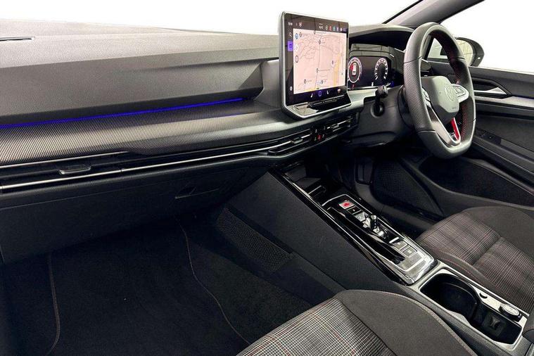 Activated carbon canister, Adaptive cruise control (ACC), Advanced driver attention and drowsiness monitor, Dynamic road sign display, Dynamic steering, E-Sim card for online connectivity, eCall emergency call system, Multi-color Digital cockpit pro, selection of different info profile possible, Multifunction front facing camera for distance control, Navigation system, Oncoming vehicle braking when turning including swerve support, Preparation for light assist system, Side assist blind spot lane change system, rear traffic alert and exit warning system, Speed limiter, Speedo, rev counter, electronic odometer, trip, service interval display, exterior temperature and fuel gauge, Traffic jam assist, Voice enhancer and voice control, Warning signal and warning light for front and rear seatbelts not fastened, We connect plus preparation, We connect preparation, Wireless app connect, Front differential lock, Petrol Particulate Filter, Sports suspension, Start-stop system with battery regeneration (recuperation - energy recovery during braking), 2 USB C ports in front, 2 USB charging sockets on the centre console in the rear charging capacity upto 45W, Comfort telephony + wireless charging, without wireless aerial connection, Digital radio reception (DAB), Diversity antenna for FM reception, Gaming platform via car app, Infotainment system with 12.9" display, Mobile phone interface with inductive charging feature, 3rd brake light, Auto dimming rear view mirror, Auto headlights, Automatic headlamp activation with Coming home and Leaving home feature, Body colour door handles, Body coloured bumpers, air intake in honeycomb structure, Exterior ambient lighting with illuminated lighting animation and wake up/goodbye scenario, Exterior mirrors convex on the left and aspherical on the right, Front and rear electric windows, Front fog lamps and cornering light, Heat insulating windshield made of laminated glass, LED daytime running lights, Nameplate 'GTI' set, Rain sensor, Rear exhaust tailpipe, Rear fog light on one side and reversing lights on both sides, Rear side wing doors, Rear windscreen washer and wiper with interval delay, Remote electrically foldable door mirrors, puddle lights and reverse activated passenger's door mirror, Welcome light with surround lighting, 12V socket in front centre console, 12V socket in luggage compartment, 3 rear head restraints, 3 seat bench in 2nd row, 30 colour ambient lighting, illuminated center console storage compartment in front, Air care climatronic 3 Zone automatic climate control with rear air conditioning control panel, Aluminium gearshift handle, Brushed stainless steel pedals, Carpet mats, front and rear, Chrome plated radiator grille inserts, air vent surrounds and light switch surrounds, Front centre armrest, ISOFIX anchors for child seats on outer rear bench seats and on front passanger seat compatible for i-Size, Luggage compartment lighting, Rear cupholder and loadthough, Single front passenger seat, Soul black instrument panel, Split folding backrest with centre armrest and unsplit rear seat bench, Storm grey roof lining, Sun visors with illuminated vanity mirrors, Driver assistance pack - Golf DSG Estate/Hatchback, Technology park and comfort pro package - Golf Hatchback, 3 point height adj front seatbelts + pretensioners, 3 rear three point seatbelts, ABS, Autonomous emergency braking front assist with pedestrian and cyclist monitoring, Child locks on rear doors, Driver and front passenger airbag with front passenger airbag deactivation, Electronic parking brake with auto hold, ESC (Electronic Stability Control), Extended pedestrian protection measures, Hill start assist, Rear disc brakes, Two tone horn, Tyre pressure loss indicator, Volkswagen roadside assistance, Anti theft wheel bolts, Preparation for alcohol interlock, Decorative inserts carbon grey for dashboard and front door trim panels,