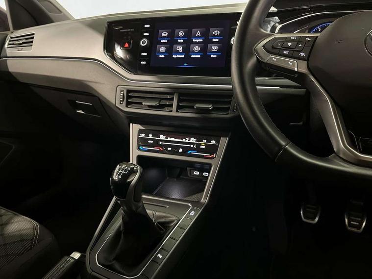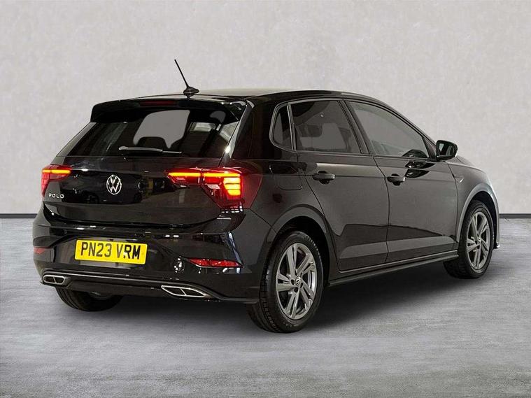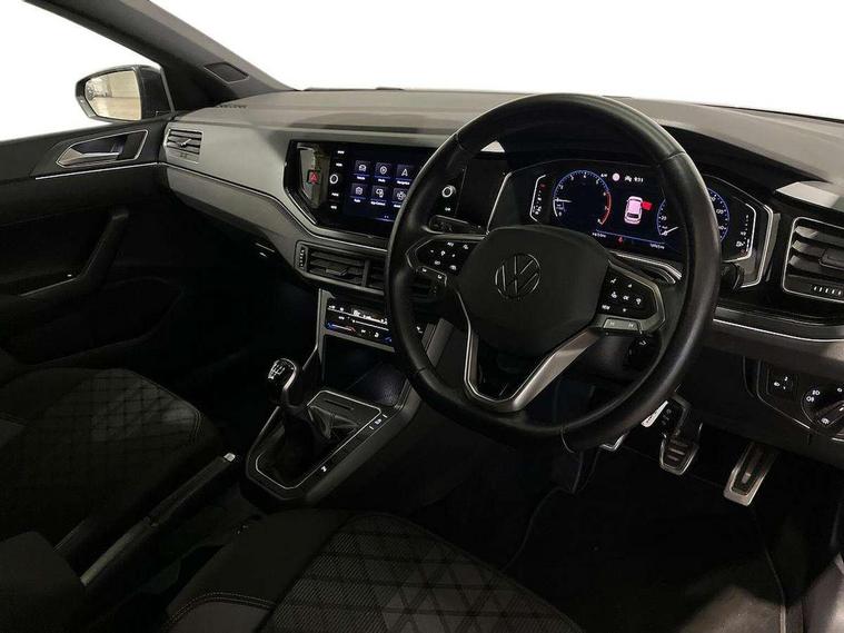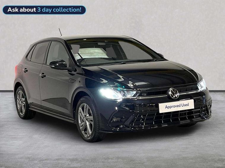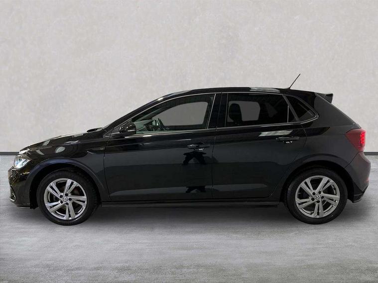Adaptive cruise control without follow-to-stop and speed limiter, Bluetooth mobile phone interface, Digital Cockpit Pro with 10.25" Display, Driver alert system, Dynamic road sign display, Emergency call service, Power assisted speed sensitive steering, Preparation for We connect and We connect plus, Speedo and rev counter, electronic odometer, trip, service interval display and fuel gauge, Standard rear axle, Travel Assist - Lane keeping system and traffic jam assist, Travel assist including emergency assist, Trip computer, Warning signal and warning light for front and rear seatbelts not fastened, Washer fluid level indicator, Wireless app connect, Front wheel drive, Rear shock absorpion, Start-stop system with battery regeneration (recuperation - energy recovery during braking), DAB Digital radio, Diversity antenna for FM reception, Front and rear 6 speakers, Body colour bumpers, Body colour door handles, Electric front windows, Front scuff plates with R-Line logo, Heat insulating darkened glass in side and rear windows, Heat insulating glass windscreen, Power folding adjustable/heated exterior mirrors and front passenger exterior mirror lowering function, Rear electric windows, Rear fog light, Rear side wing doors, Rear windscreen washer and wiper with interval delay, Third brake light, 12V power socket in centre console, 2 USB-C ports in the front, 2 USB-C charging sockets on the center console in the rear, 3 rear head restraints, 60/40 split folding rear seat and rear seat bench not split, Air care climatronic air conditoning system with active combination filter and 2-zone temperature control, Black roof lining, Chrome plated radiator grille inserts, air vent surrounds and light switch surrounds, Door and side trim panel, Driver and front passenger seat height adjustment, Driver/passenger sunvisors with illuminated vanity mirrors, Front + rear carpet mats in recycled material, Front centre armrest, Front footwell illumination, Front seat backrest storage pockets, Front sports comfort seats, Handbrake lever handle in leather, Headliner in recycled material, Isofix child seat preparation easy-fit (for two outer rear seats, and front passenger seat) compatible with I-size, Karoso artvelours cloth upholstery, Leather trimmed gear knob, LED interior light with switch off delay and dimmer, 2 reading lights front and rear, Luggage compartment cover, Luggage compartment floor, Luggage compartment lighting, Lumbar adjustment for front seats, Multifunction steering wheel, Single front passenger seat, Stainless steel pedals, Standard pedal cluster, Light and sight pack - Polo R-Line/Black Edition, 3 point height adj front seatbelts + pretensioners, 3x3 point rear seatbelts, ABS, Driver and front passenger airbag with front passenger airbag deactivation, Drivers and front passengers safety optimised head restraints, ESC (Electronic stability control) + EDL (Electronic Differntial lock) and ASR (Traction control), Extended and predictive pedestrian/ cyclist protection, Front curtain and side airbags with center airbag, Hill hold control, Manual child lock in rear doors, Single tone horn, Tyre pressure loss indicator, Alarm with interior protection, Anti-theft alarm system with interior monitoring, backup horn, and towing protection, Anti-theft wheel bolts, Electronic engine immobiliser, Chrome applications on rotary light, mirror adjustment, window regulator switches, outlet with frame in black, Dark grey anodised matt decorative inserts in dash and front door panels, Low rolling resistance tyres,