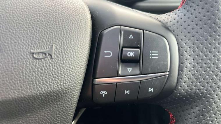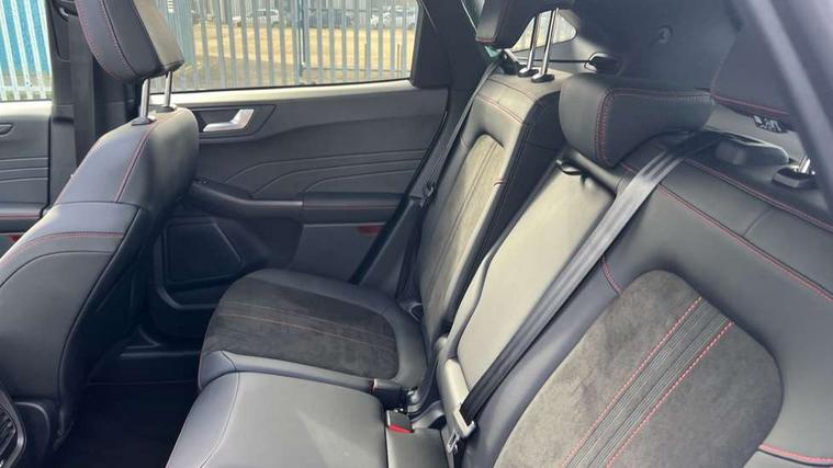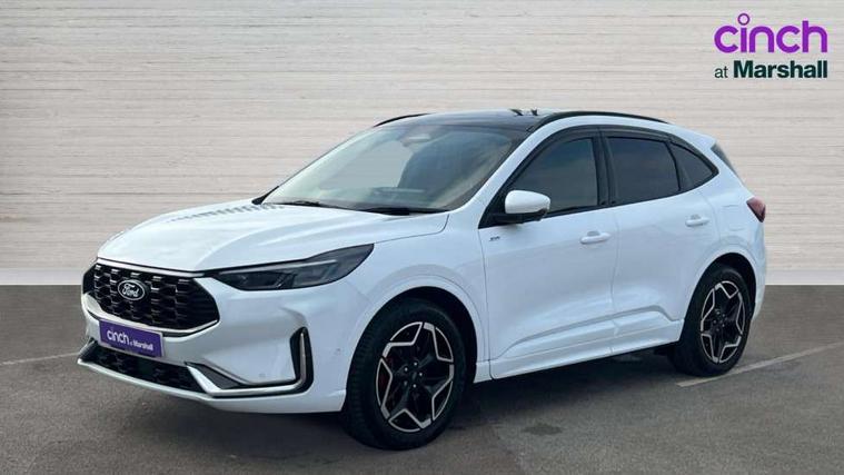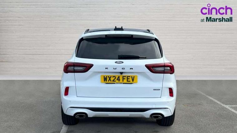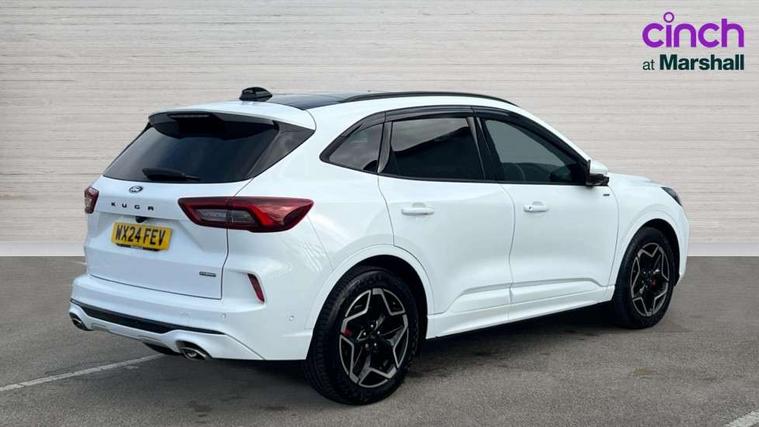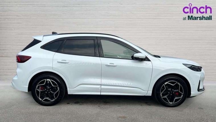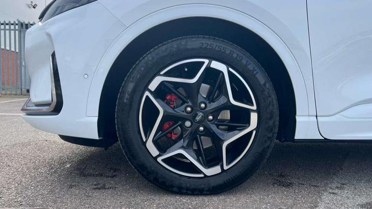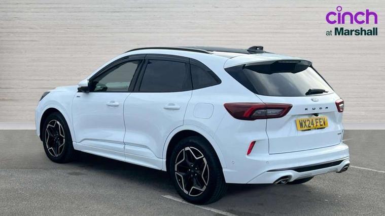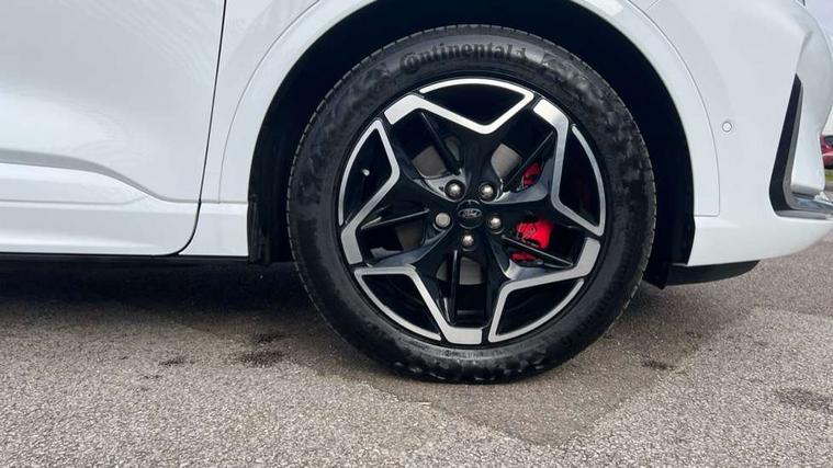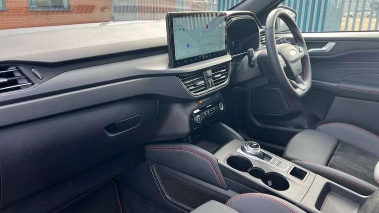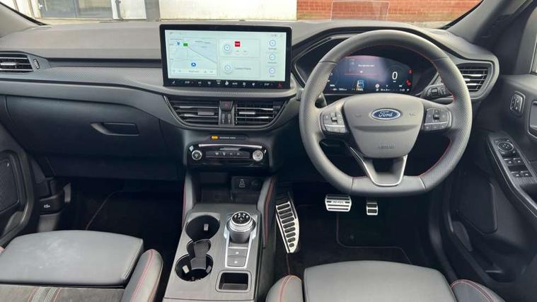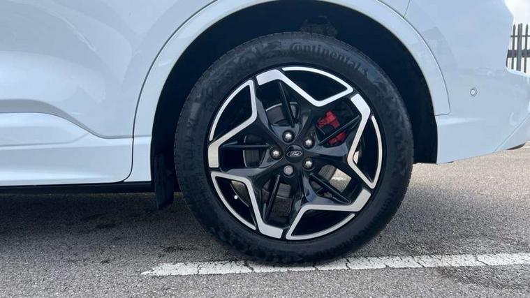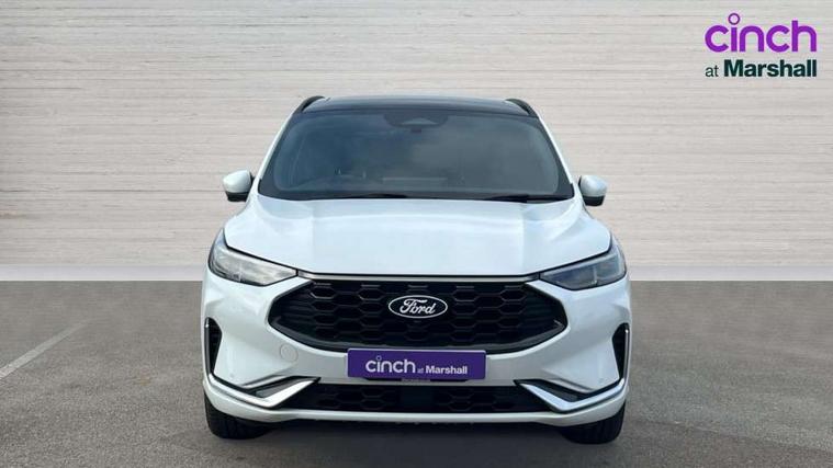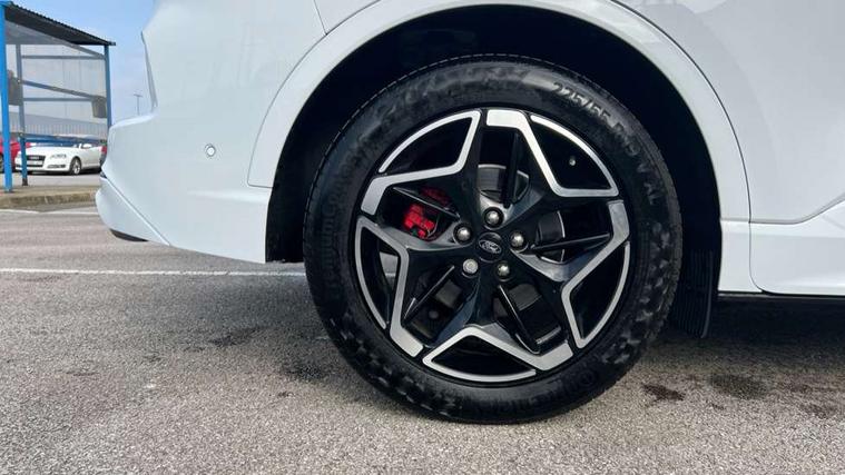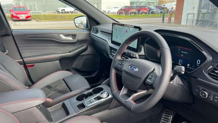 12.3" digital colour instrument cluster, 360 degree camera, e-Call (emergency call), Ford easy fuel, Ford SYNC 4 Navigation with 13" touchscreen, DAB radio, emergency assistance, Andriod Auto/Apple CarPlay, 5G modem & Ford Pass connect, Front and rear parking sensors, Hands free power tailgate, Lane centering assist, Lane keeping aid with lane departure warning, Power assist steering, Selectable drive modes, Service interval indicator, Sports suspension, Twist beam rear suspension, B&O premium audio system with 10 speakers, subwoofer and 2 USB ports, Auto headlamps with high and low beam, Black roof rails, Body colour bumpers, Front LED fog lamps, Large rear spoiler, LED daytime running lights, LED rear lights, Pop out door edge protectors, Power front/rear windows with global close, Power heated folding door mirrors with puddle lights, memory function and camera, Power opening panoramic roof, Quickclear heated windscreen, Rain sensing wipers, Rear privacy glass, Rear side wing doors, Rear wiper, ST-Line body styling kit, Third brake light, 12 way ergonomic power adjust driver's seat with memory (AGR certified), 12 way ergonomic power adjust passenger seat (AGR certified), 2nd row sliding seats, Electronic automatic temperature control (EATC), Front and rear head restraints, Partial premium touch sensico upholstery, Rear centre head restraint, Single front passenger seat, Sports seats, Driver assistance pack with intelligent adaptive cruise control - Kuga FHEV/PHEV, Winter pack - Kuga, 3x3 point rear seatbelts, Airbags - front driver/passenger, front and rear curtain, Drivers knee airbag, Dynamic brake support, Electronic stability control (ESC) and ABS, Evasive steering assist, Ford MyKey Gen 2 safety system, Manual child proof rear door locks, Pre collision assist with autonomous emergency braking, Rear seat Occupancy alert, Red brake calipers, Tyre pressure monitoring system, Engine immobiliser, Keyless entry and Ford power start button (Keyless start), Locking wheel nuts, Remote powered central double locking doors, Thatcham category 1 alarm,