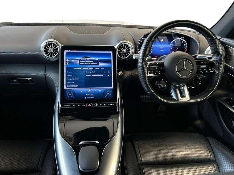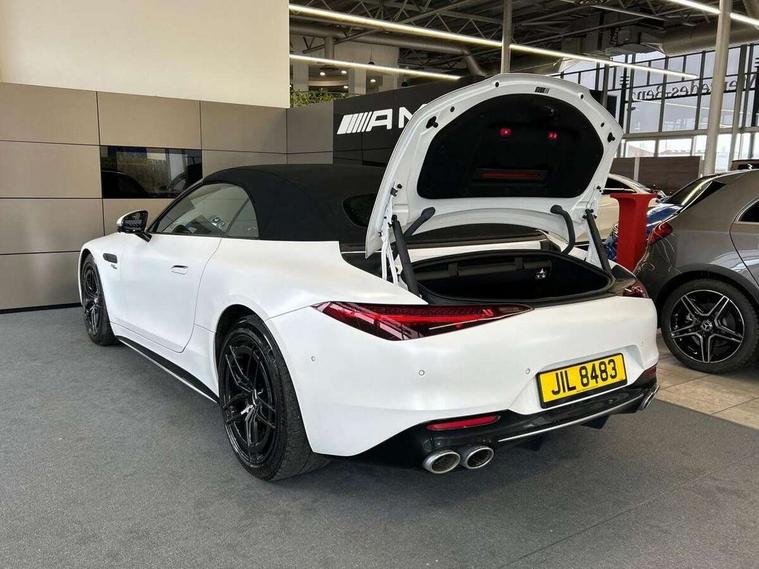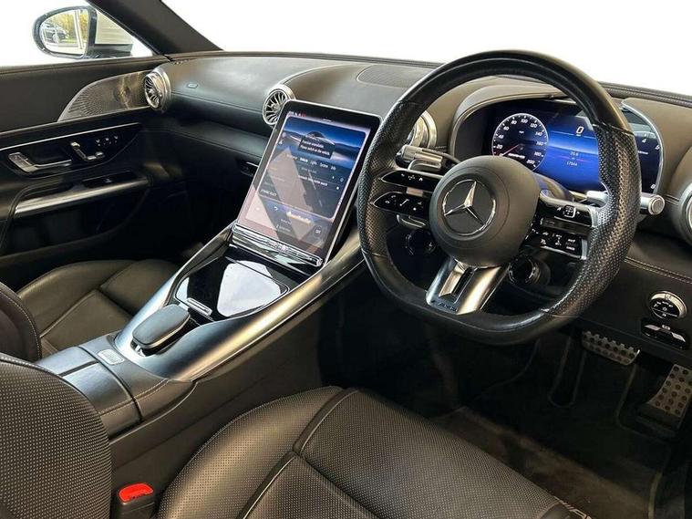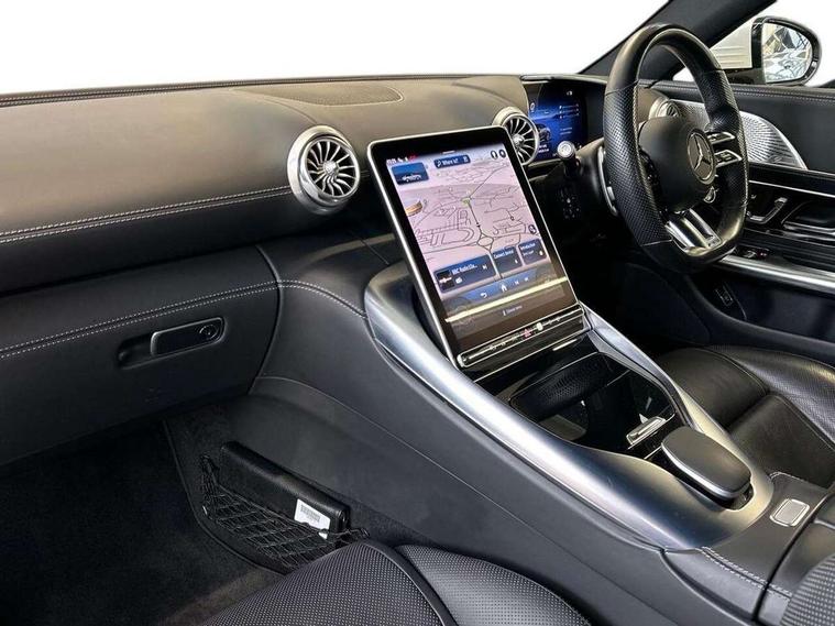 360 degree view camera, AMG track pace, Attention assist, Bluetooth interface for hands free telephone, Central display, Cruise control, Driver display, Fingerprint scanner, Head up Display, Lane keeping assistant (LKA), MBUX augmented reality for navigation, MBUX Interior assistant, MBUX navigation premium, Mercedes-Benz emergency call system, Outside temperature gauge, PAS, Remote Services Premium, Service indicator (ASSYST), Smartphone integration with Apple CarPlay, Traffic sign assist, Trip computer, USB adapter cable, Wireless charging system for mobile devices in the front, AMG SPEEDSHIFT MCT 9-speed automatic sports transmission, EQ Boost starter alternator, Sport suspension, Burmester surround sound system, DAB Digital radio, 2 Electric windows, 3rd brake light, Adaptive high beam assist plus, AMG body styling, AMG boot lid spoiler in body colour, AMG illuminated door sills with AMG lettering and with exchangeable cover, AMG Light Display - The projector fitted in the side skirts casts AMG lettering onto the asphalt, AMG Real Performance Sound, AMG spoiler lip, Automatic headlights, Body colour bumpers, Darkened headlamps and tail lights, Digital light headlamps, LED daytime running lights, Magic vision control, Model badge on boot lid and wings in high-gloss black, Radiator fins painted black, Rain sensor windscreen wipers, Rear boot, 2 cup holders in front, 2 individual rear seats, Airscarf - neck level heating, AMG Performance steering wheel in nappa leather, AMG steering wheel buttons, Front gesture control, Heated front seats, Neck-pro front headrests, Single front passenger seat, Steering wheel heating, THERMOTRONIC automatic climate control, AMG Night pack - SL Class, AMG Night pack II - SL Class, Energizing pack plus - SL Class, Load compartment pack - SL Class, Memory package - SL Class, Mirror pack - SL Class, Parking pack - SL Class, USB pack plus - SL Class, 19" silver painted brake calipers, ABS, Active pedestrian safety system, AMG high performance compound brake system, Automatic roll over protection, Driver and passenger head and side airbags, Dual stage driver/passenger airbags, Electronic parking brake, ESP with ASR, Hill hold function, Manual passenger airbag deactivation function, Pedestrian protection, Tyre pressure monitoring system, Warning triangle and first aid kit, Keyless go with seemless door handles, KEYLESS-GO starting function, Remote central locking, Urban guard vehicle protection plus, AMG high gloss black trim, Summer tyres, Tyre sealant kit,