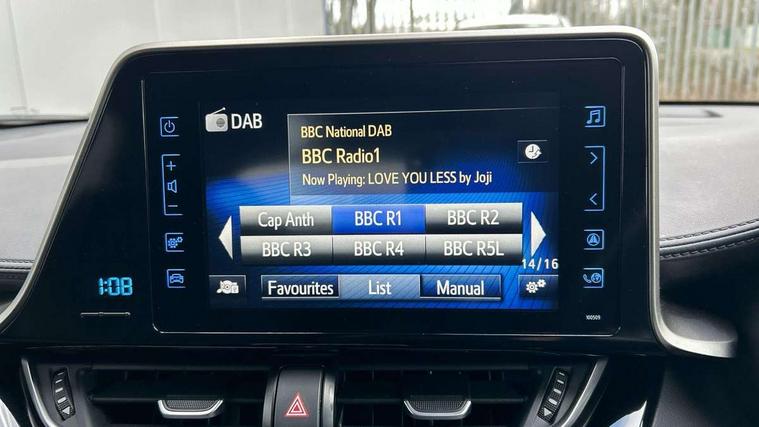7" Coloured TFT multi informational display, 8" touch screen, Adaptive cruise control, Adjustable speed limiter, Bluetooth connectivity, Electric power steering, Intelligent parking assist with front & rear parking sensors, Lane departure alert with steering control, Lights on warning, Push button starter, Reversing camera, Reversing camera display in audio screen, Road sign assist - RSA, Touch 2 Go navigation system, Trip computer, Voice recognition, Vehicle Stability Control (VSC), 6 speakers, DAB Radio (Digital Audio Broadcasting), Steering wheel mounted controls, USB and Aux in connectors + 12V front outlet, Wi-fi connectivity, Auto high beam, Automatic headlight levelling, Automatic headlights, Automatic retractable door mirrors, Body colour door handles, Body colour door mirrors, Body coloured bumpers, Boot door release with push button, Electric folding/heated door mirrors with integrated indicators, Electrochromatic rear view mirror, Follow me home headlights, Front and rear electric windows, Front fog lights, Hard tonneau cover, Heated rear windscreen, Intermittent wipe, LED daytime running lights, LED High mounted stop lamp, LED rear brake lights, Projector and reflector halogen headlights, Rain sensitive windscreen wipers, Rear combination lamp, Rear privacy glass, Rear spoiler, Rear wiper, Shark fin antenna, Trailer Sway Control, 12V Accessory socket, 3 spoke leather steering wheel with multimedia switches, Ambient lighting, Chrome interior door handles, Clean air filter, Cloth upholstery, Driver + front passenger electric lumbar support, Driver and front passenger personal light, Driver and front passenger Whiplash Injury Lessening seats, Driver/passenger sunvisors and illuminated vanity mirrors, Dual zone automatic air conditioning, Folding rear seats, Front and rear door pockets, Front console box and front cupholders, Front cupholders x 2, Front head restraints, Gear shift indicator, Glovebox with internal light, Heated driver and front passenger seats, Illuminated entry system, Isofix seat fixing, Leather effect padded armrest on front console box, Leather gearshift, Light blue ambient lighting on front doors, Pollen filter, Rear headrests, Tilt/telescopic steering column, 3x3 point rear seatbelts, ABS+EBD+Brake assist, Electronic parking brake, ESP + traction control, Front and rear seatbelt reminder, Front passenger airbag on/off switch, Hill start assist control (HAC), Pre collision system with pedestrian detection, Rear child proof door locks, Road sign information display, Supplemental restraint system (SRS) airbags - 7 airbags including driver, front passenger, curtain, side and knee airbags, Toyota safety sense, Tyre pressure monitoring system, Immobiliser, Intrusion alarm, Motion sensor alarm, Remote central locking, Smart entry + Smart start, 18" 5 double spoke black machined face alloy wheels, Tyre repair kit,