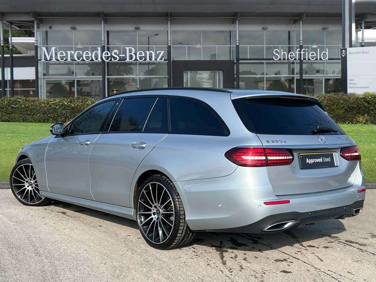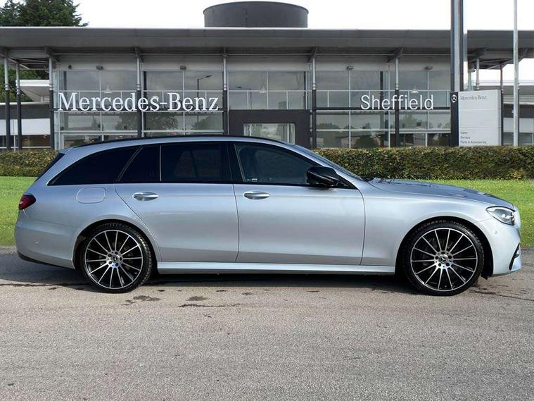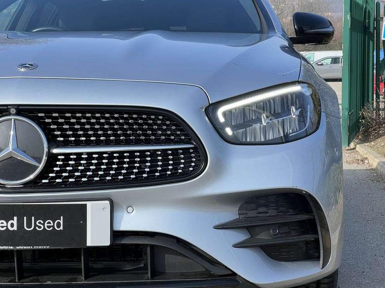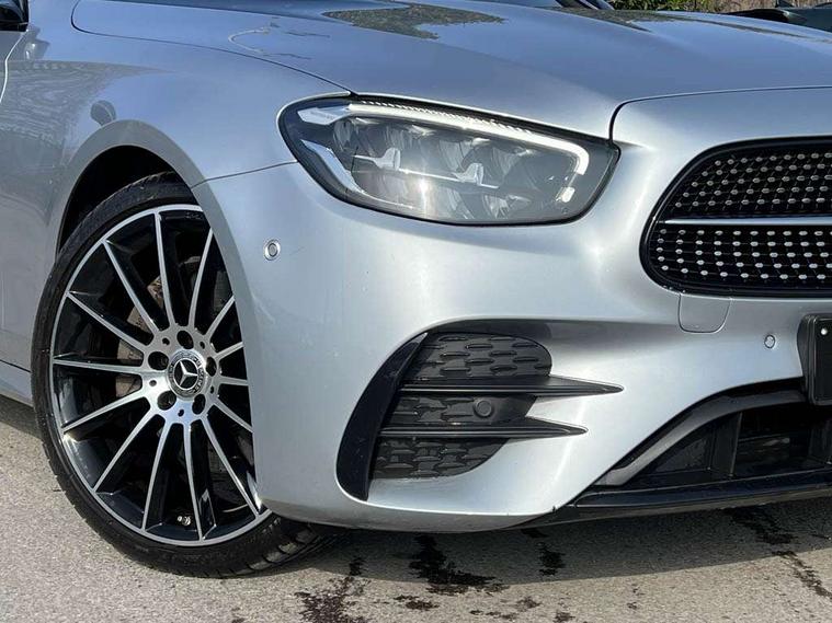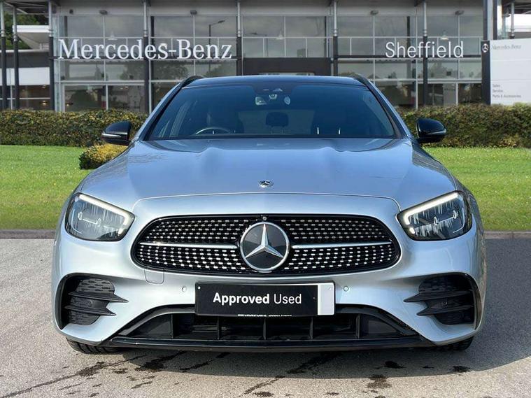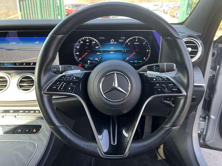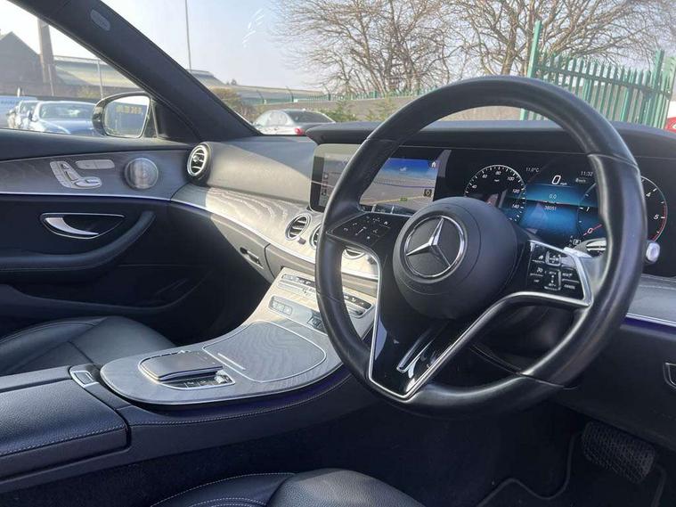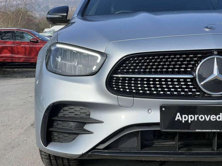 Attention assist, Brake wear warning display, Cockpit display 10.25" widescreen digital instrument cluster, Direct steer speed sensitive steering, DYNAMIC SELECT with a choice of driving modes (ECO, Comfort, Sport, Sport+ and Individual), Easy-pack tailgate - Powered opening/closing automatically, ECO start/stop function, Emergency call service, High resolution 10.25" multimedia colour display, MBUX voice control activated by keywords "Hey Mercedes", Mercedes connect me, Outside temperature display, Remote boot release, Service indicator (ASSYST), Smartphone integration via Android Auto/Apple CarPlay, Media Interface, USB and Bluetooth interface, Status display for rear seat belts in instrument cluster, Touchpad without controller, Traffic sign assist, Trip computer in multifunction display showing current fuel consumption, Wireless charging, 25 litre AdBlue tank, 66 litre fuel tank, 9G TRONIC 9 speed automatic transmission, Agility control sports suspension with selective damping system and lowered by 15mm, Diesel particulate filter, Incorrect fuelling protection, Rear air suspension with level control, 2 USB ports in centre console, 2 USB ports in the rear, Burmester surround sound system with 13 speakers and a 9 channel amplifier with total output of 590 watts, MBUX multimedia system with DAB digital radio and touchpad including satellite navigation, 3rd brake light, Adaptive brake lights, Aerial integrated in rear window, AMG bodystyling front and rear aprons in polished aluminium, Chrome pins diamond radiator grille, surround in high gloss black, single louvre in chrome with insert in high gloss black and integral star, Chrome roof rails, Electric windows with one touch opening/closing and obstruction sensors, Electrically adjustable and heated door mirrors, Front apron in high gloss black, High gloss black exterior mirror housing, High gloss black rear bumper with chrome trim, Illuminated front door sill panels with Mercedes-Benz lettering, LED High Performance headlamps including integral LED daytime running lamps and adaptive highbeam assist, LED rear lights, Panoramic electric glass sunroof, Privacy glass Includes rear side windows and rear windscreen, Rain sensor with automatic headlight activation, Rear side wing doors, Rear wiper, Tail lights, Top surround of side windows in polished aluminium, Visible twin pipe exhaust system integrated into bumper, Waistline trim strip in high gloss black, 3 seat bench in 2nd row, 3 spoke multifunction flat bottom AMG steering wheel with chrome inserts and touch control buttons, trimmed in black nappa leather, 40:20:40 split folding rear bench seat, Artico man-made leather upper dashboard and beltlines with contrast stitching, Automatic child seat recognition sensor, Black door pins, Black roof lining, Central stowage compartment with 12 V socket in centre console, USB socket for use with Android Auto and Apple CarPlay, Courtesy lights in rear grab handles with reading light functionality, Floor mats with AMG lettering, Four way partially front electric seat adjustment, Front centre armrest with stowage compartment, Glasses compartment in overhead control panel, Glove compartment - lockable, air conditioned and illuminated, Head restraints for driver and front passenger (four-way adjustability) and in rear (two-way), Heated front seats, Interior lighting - 64 colour Ambient lighting, Leather upholstery, Seat occupancy sensor for front passenger seat, Single front passenger seat, Steering column electrically adjustable for height and reach, Steering wheel multifunction with gearshift paddles, Steering wheel touch control buttons for audio and onboard settings, Sunvisors with illuminated vanity mirrors, THERMOTRONIC automatic climate control system with 3 climate zones, Mirror pack - E Class, Parking package including 360 degree camera - E Class, Seat comfort pack - E Class, Stowage pack - E Class Estate, 3x3 point rear seatbelts, Active bonnet pedestrian safety measure which detects an impact and raises bonnet, Adaptive brake system with HOLD function and brake drying in the wet, Airbags - sidebag for driver and front passenger with combined thorax/pelvis bag, Anti-lock braking system (ABS), Childproof locks manually operated for rear doors and electrically operated for rear power windows, Driver and adaptive front passenger airbags, Drivers knee airbag, Electronic parking brake, Electronic Stability Programme, Hill start assist, ISOFIX child seat attachment points two outer rear seats, Perforated brake discs with Mercedes Benz lettering, Pre-Safe anticipatory safety system, Tyre pressure monitoring system, Warning triangle and first aid kit, Window airbags, Alarm system/interior protection/immobiliser, Central locking with interior switch, automatic locking and crash sensor with emergency opening function, Chrome surround in electric key, Keyless entry go starting function, Grey open pore ash wood trim and centre console in grey open pored ash wood, 20" AMG multi spoke light alloy wheels painted in high gloss black with high sheen finsih, Summer tyres, TIREFIT with tyre inflation compressor,