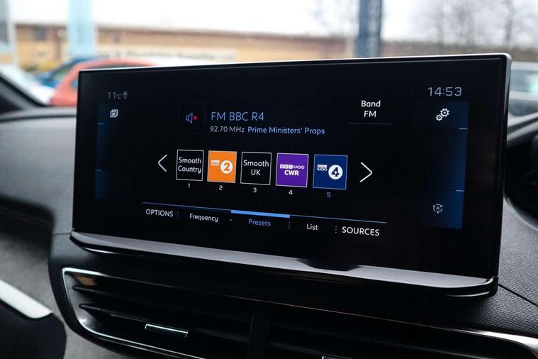 3D connected navigation with 10" HD touchscreen, Bluetooth telephone facility, Drive modes select (Eco, normal and sport), Driving Time Warning (DAA1), Emergency services call system, Extended traffic sign recognition, Exterior temperature indicator with ice warning, Front and rear parking sensors, Mirror screen with mirror link, apple carplay and android auto, Multi function trip computer, Passive blind spot monitoring without Steering correction, PEUGEOT i-Cockpit with 10" high definition capacitive touchscreen, Peugeot i-cockpit with compact multi-function sports steering wheel, PEUGEOT i-Cockpit with configurable 12.3" Head-up digital instrument panel, PEUGEOT SOS and assistance, Rear passenger USB charging sockets (x2) (type A), Speed limit recognition and recommendation, Visio park assist 360 with colour camera system + automatic parking assist, Voice recognition, Dynamic stability control and electronic anti-skid system, Stop/start function, DAB Digital radio, Focal premium HiFi sound system, USB socket, Auto self levelling headlights, Automatic hazard light activation upon heavy brake application, Automatic triggered rear windscreen wiper in reverse gear, Black with chrome detailed front wing trim, Body colour door handles, Body colour rear roof spoiler with stainless steel edging trim, Body protectors (bottom of front and rear bumpers + wheel arches + protection at bottom of doors) in black, Dark tinted rear side windows + tailgate window, Diamond Black door mirror shells, Door mirror mounted LED courtesy floor lighting, Electric folding door mirrors with exterior courtesy LED lighting, Electric operated/heated door mirrors, Fog Mode, Front windscreen wiper with magic wash cleaning system, Full LED headlights with LED fog lights with static cornering function, Gloss black B and C pillar and aerodynamic deflector trim, Gloss black front bumper air scoops, Gloss black rear cluster connecting strip, Gloss black windscreen trim, GT emblem in satin copper (front wings and tailgate), Headlights left on audible warning, Heated rear windscreen with integrated antenna, LED daytime running lights, LED front indicator, LED rear number plate lighting, LED side indicator lights integrated into door mirrors, LED third brake light, One touch electric front/rear windows with pinch protection, Rear LED Peugeot signature 'Claw Effect' lights, Rear side wing doors, Stainless steel roof arches, Twin exhaust tailpipe, 1/3 to 2/3 split folding rear seats, 12V Sockets in dashboard, rear cabin and load area, 2 cupholders in front centre console, 2 cupholders in rear armrest, 2 x Rear reading spotlights, 2x Rear coat hooks, 3x Isofix child seat fittings in the front passenger and outer rear seats, 4 Grab handles retractable and damped, Aikinite stitching in armrest, gear lever and dashboard facia, Aluminium pedals, Blue ambient lighting for connecting zone, Blue ambient lighting to front door panels, central storage and cupholders, Blue ambient lighting to headup instrument panel, Centre front armrest with butterfly wing opening and illuminated storage compartment, Dual zone automatic climate control, Electric power steering with reach and rake adjustable steering column, Flocked front door pocket interior with blue ambient lighting, Flocked glovebox interior, Focal tweeter speaker grilles in Belem bronze metal effect finish, Foldable front passenger seat with picnic table, Footwell illumination, Front interior light with 2 reading spotlights and rear interior light with timer, Front passenger seat manual adjustment (longitudinal and back rest angle), Front seat back map pockets, Gear shift indicator, Illuminated glovebox, Individual left and right controls in boot for seat folding, LED interior lighting in storage spaces and load area, LED roof interior lighting, Mistral floor mats with Aikinite contrast stitching, Mistral full grain perforated leather steering wheel with aikinite stitch detail and satin chrome 'GT' emblem, Rear bench seat with central armrest and ski hatch, Rear centre console ventilation system, Roof lining - Mistral black, Satin chrome dashboard trim, Satin chrome digital instrument panel and touchscreen trim, Satin chrome front door panel recess trim, Satin chrome interior door handles, Satin chrome scorpion's tail and toggle switch trim, Seatbelt not fastened audible and visual alert for front seats, Seatbelt unfastened on the move audible and visual alert for front and rear seats, Sunvisors with illuminated vanity mirrors, Two position boot floor, Drive assist plus pack - 3008, Driver sport pack - 3008 Auto, Safety plus pack with high beam assist - 3008, Visibility pack - 3008, 3x Rear three-point retractable seatbelts with force limiters in the outer rear seats, ABS (Anti-lock Braking System) with EBD (Electronic Brakeforce Distribution) and EBA (Emergency Braking Assistance), Adaptive driver and front passenger airbags with passenger airbag deactivation function, Driver and front passenger side airbags, Electric child locking functionality on rear windows and doors, Electric parking brake, Front and rear curtain airbags, Front optimised safety headrests and 3 x rear retractable headrests with height adjustable, Front three point retractable seatbelts with pre tensioners and force limiters, Front ventilated disc brakes and rear disc brakes, Hill start assist, Two tone horn, Automatic door locking when moving off, Electronic immobiliser, key operated exterior door lock from the left hand door, Perimetric and volumetric alarm with lift and tilt sensor, Peugeot Open and Go System, Remote control central locking with two plip keys, Puncture repair kit including compressor, sealant cartridge and towing eye,