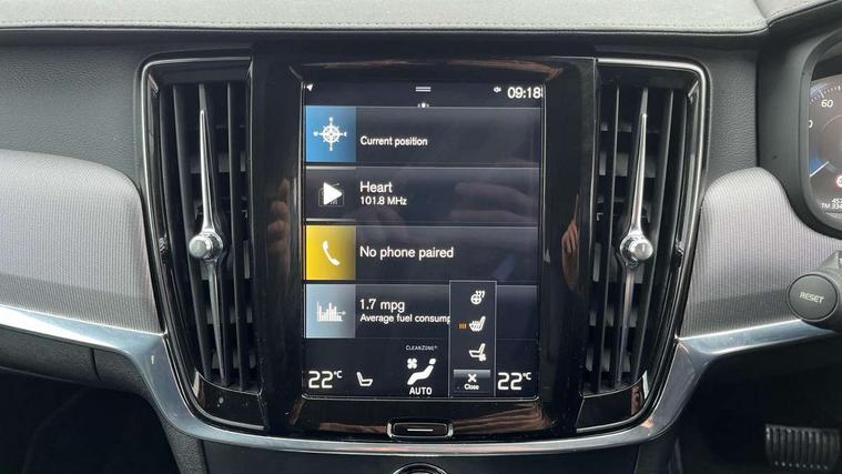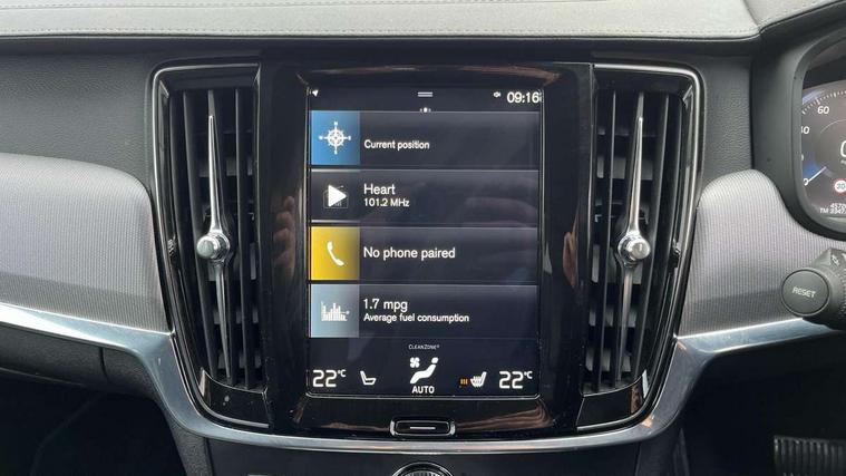 12.3" Active TFT crystal driver's instrument display, 9" centre console touch screen, Adjustable steering wheel force, Bluetooth Handsfree Phone Connection, Drive mode settings, Handsfree bootlid opening/closing, Intellisafe Assist (Pilot Assist and Adaptive Cruise Control), Lane keep assist with driver alert control, Oncoming Lane Mitigation, Power operated tailgate, Sensus navigation with European mapping and traffic information, Speed limiter, Speed sensitive steering, Voice activated control for key functions, Volvo on call, 8 speed automatic transmission with start/stop + manual change functions, DAB Radio (Digital Audio Broadcasting), Steering wheel remote infotainment controls, Active bending headlights with adaptive shadow technology, Adaptive brake lights with high level LED brake lights, Auto dimming interior + exterior mirrors, Automatic headlamp levelling, Automatic LED Headlights + Active high beam incorporating daytime running lights, Chrome door handles, Chrome front lower bumper, Chrome lower door mouldings, Chrome window surround, Colour coordinated auto folding and heated power door mirrors, Dual integrated exhaust pipes, Front and rear power windows, Headlight cleaning system, High gloss black front grille with chrome inserts, Home safe and approach lighting, Integrated roof rails in silver, LED front fog lights with static cornering light function, Puddle lights in exterior door handles, Rain sensor with automatic windscreen wiper activation, Roof antenna, Roof spoiler, Twin exhaust tailpipes with chrome sleeves, Visible VIN plate, 60/40 split folding rear seat, A-pillar parking ticket holder, Ambient door and instrument panel lighting, B Pillar ventilation, Bright metal luggage threshold, Cargo divider with grocery bag holder, Centre armrest storage illumination, Centre console cupholders and storage, Colour coordinated nappa Leather Key Integrated Remote, Driver's side lower dashboard storage compartment, Extended front seat cushions, Front and rear aluminium tread plates, Front footwell and side step illumination, Front head restraints, Front seat backrest massage, Front tunnel net pocket, Front/rear door pockets and front cupholder illumination, Front/rear reading lights, Heated front seats, Height/reach adjustable steering column, Illuminated front and rear tread plates, Illuminated gear knob, Illuminated glovebox with lock, Illuminated luggage compartment, Illuminated tailgate, Illuminated vanity mirrors + ticket holder, Isofix system on outer rear seats, Load cover, Load protection net, Luxury floor mats, Multicolour theatre lights, Nappa soft leather perforated /ventilated upholstery, Passenger seat lumbar support, Power driver seat with multi directional lumbar support and memory for seat and exterior mirrors, Power Folding Rear Seat Backrests and Headrests, Power front seat side support, Power passenger seat with memory, Rear armrest with storage + cupholders, Rear footwell and side step illumination, Ski hatch, Sports steering wheel with gear shift paddles, Underfloor cargo storage, 3x3 point rear seatbelts, Active bonnet, City safety with steering support with Pedestrian + cyclist + large animal detection + front collision warning with full auto brake, Drivers knee airbag, Dual stage driver/passenger airbags, Fasten seatbelt reminder, Front seats SIPS airbags, Hill start assist, IC (Inflatable Curtains) - Full Length, Passenger airbag cut-off device, Power parking brake with auto hold function, Road sign information display, Run off Road Mitigation, Run off Road Protection, Seatbelt pre-tensioners, Seatbelt reminder and pretensioners for all seats, SIPS (Side Impact Protection System), Slippery road and hazard light alert, Stability and Traction Control with Spin control, Engine Drag Control and Corner Traction Control, Tyre pressure monitoring system, Vehicle deceleration control with Anti-lock Brake System, Electronic Brake Distribution and Emergency Brake Assist, Warning triangle and first aid kit, WHIPS whiplash protection system - front, Anti-theft alarm including immobiliser/volume sensor + level sensor, Key integrated remote control central locking + fuel flap with deadlocking system and auto open/close power windows, Keyless drive with remote tag, Locking wheel nuts, Private locking for tailgate, Tailored Instrument Panel and Door Tops with Contrast Stitching,