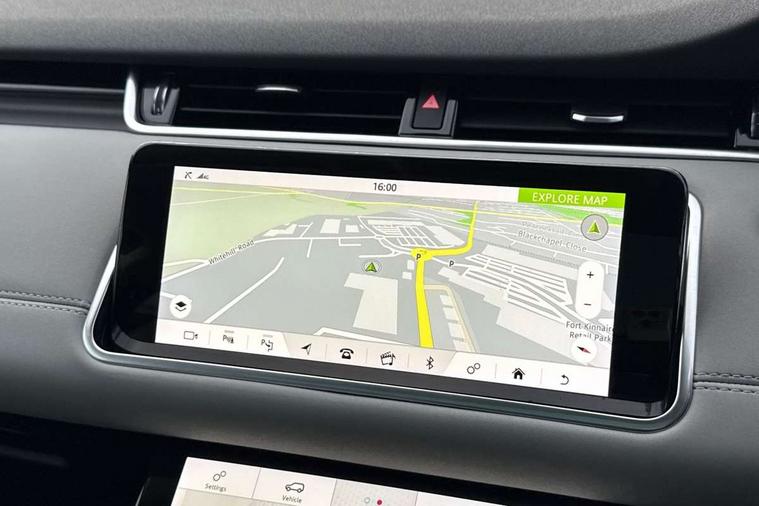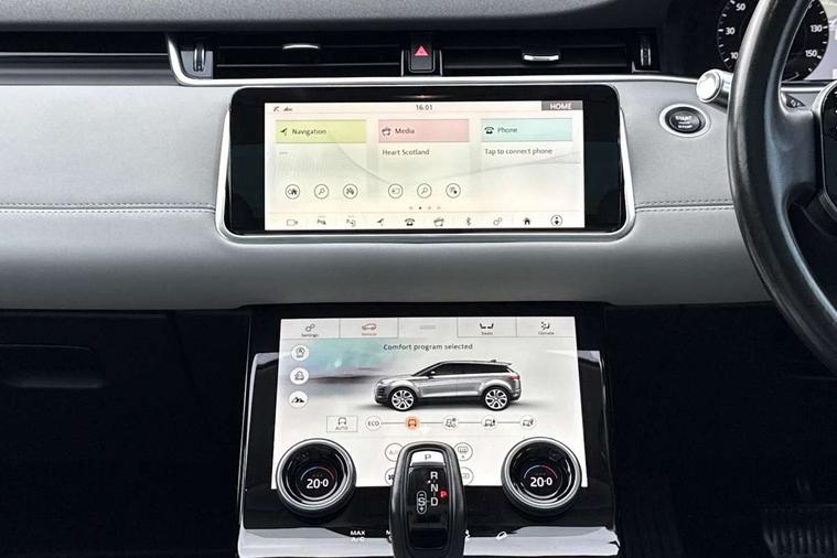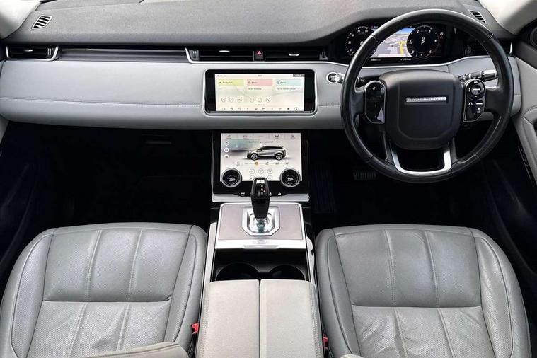 360 degree parking aid, Android Auto, Apple car play, Bluetooth connectivity, Brake pad wear indicator warning light, Clear exit monitor, Driver condition monitor, Duo touch pro, Electronic power assisted steering (EPAS), InControl remote, Interactive Driver display instrument cluster, Land Rover InControl apps, Lane keep assist, Navigation pro system, Park assist - Parallel, perpendicular and parking exit, Pro services and wifi hotspot, Push button starter, Rear traffic monitor, Smart settings, Traffic sign recognition with adaptive speed limiter, Voice control system, All terrain progress control, Efficient Driveline, Passive suspension, Terrain Response 2 Auto, Digital Audio Broadcast radio-DAB, Steering wheel mounted controls, Automatic headlight levelling, Electric windows with one touch open/close and anti trap, Evoque badge, Flush deployable exterior door handles, Heated rear window with timer, Heated washer jets, Heated windscreen, Power fold, auto-dimming, heated door mirrors with memory and approach lights, Rain sensing windscreen wipers, Rear fog lights, Standard roof, Tailgate spoiler, 40:20:40 split folding rear seats, Isofix system on outer rear seats, Overhead lighting console, Overhead stowage for sunglasses, Passive front head restraints, Rear air vents, Rear centre headrest, Sunvisors with illuminated vanity mirrors, Twin front cupholders with cover, Twin sliding front centre armrest, Two zone climate control, Anti-lock braking system (ABS), Customer configurable autolock, DSC - Dynamic Stability Control, Electronic brake force distribution, Electronic parking brake, Electronic traction control, Front and rear seatbelt reminder, Hill descent control, Hill launch assist, Low traction launch, Power operated child locks, Roll stability control, Six airbags - Driver and passenger airbags/driver knee airbag/front side airbag and curtain airbags, Torque vectoring brake, Tyre pressure monitoring system, Alarm, Immobiliser, Intrusion sensor, Locking wheel nuts,
