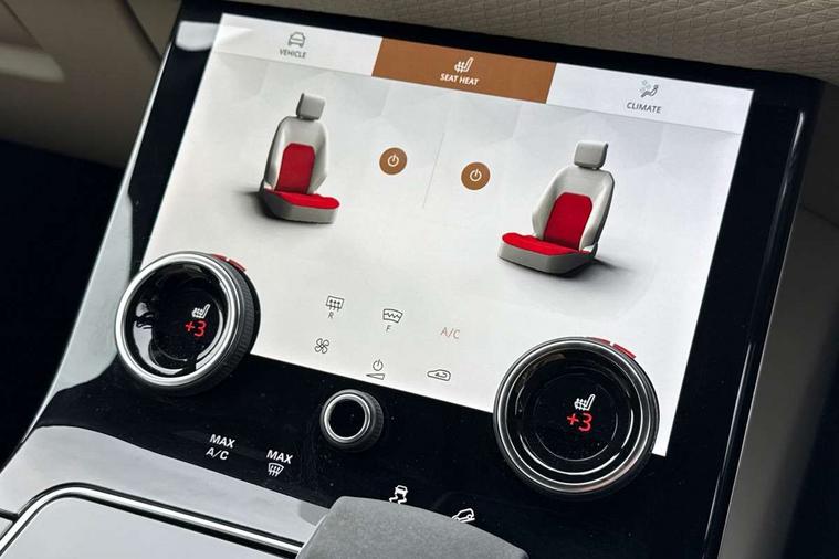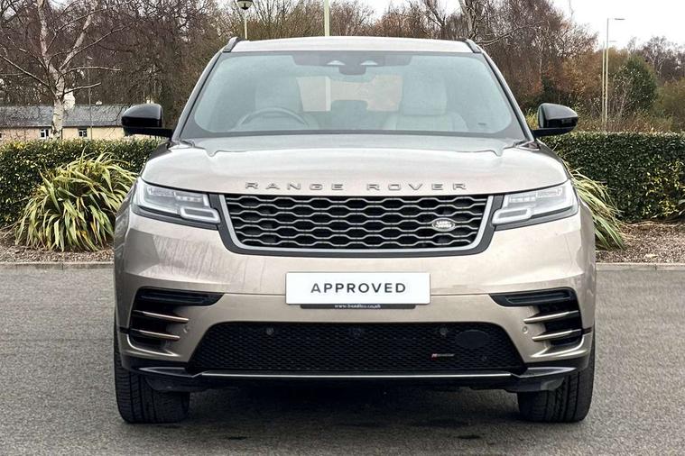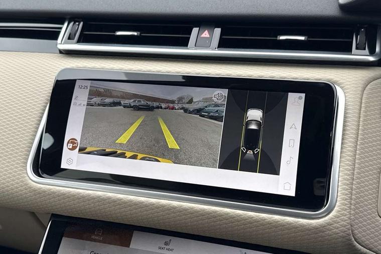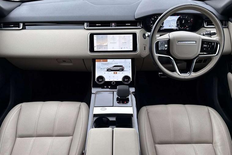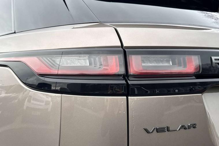 10" deployable touchscreen, Android Auto, Apple car play, Blind spot assist, Bluetooth connectivity, Brake pad wear indicator warning light, Driver condition monitor, eCall emergency call system, InControl remote, Land Rover InControl apps, Lane keep assist, Pivi pro with connected navigation, Push button start, Rear traffic monitor, Service indicator, Speed proportional electronic power assisted steering (EPAS), Traffic sign recognition with adaptive speed limiter, Trip computer, Voice control system, 8 speed automatic transmission, All terrain progress control, Open differential with torque vectoring by braking, Single speed transfer box, Digital Audio Broadcast radio-DAB, Steering wheel mounted controls, Acoustic laminated windscreen, Adaptive front lighting system, Auto dimming interior rear view mirror, Automatic headlamp levelling, Automatic headlights, Body coloured bumpers, Boot protection plate, Electric heated/power fold door mirrors with approach lights and auto dimming driver side, Electric windows with one touch open/close and anti trap, Flush deployable exterior door handles, Follow me home headlights, Heated rear window with timer, Heated washer jets, Heated windscreen, LED 3rd brake light, Metal load space scuff plates, No badge - Removes engine badge, Rain sensor windscreen wipers, Rear animated directional indicators, Rear fog lights, Rear side wing doors, Rear wash/wipe, Tailgate/boot lid spoiler, Trailer stability assist, Velar and R-dynamic badge, 3 seat bench in 2nd row, Ambient lighting, Bright metal pedals, Driver/passenger sunvisors with illuminated vanity mirrors, Isofix system on outer rear seats, Loadspace cover, Overhead lighting console, Overhead stowage for sunglasses, Passive front headrests, Rear air vents, Rear centre headrest, Satin chrome gearshift paddles, Single front passenger seat, Standard interior, Twin front cupholders, Twin sliding front centre armrest, Online pack with data plan - Velar, 355mm front brakes and 325mm rear brakes, 3x3 point rear seatbelts, Anti-lock braking system (ABS), Cornering brake control, Curtain airbags, Customer configurable autolock, Door side intrusion beams, Driver airbag, DSC - Dynamic Stability Control, Electronic brake force distribution, Electronic parking brake, Electronic traction control, Emergency brake assist, Emergency braking, Front and rear seatbelt reminder, Hill descent control, Hill launch assist, Low traction launch, Passenger airbag, Power operated child locks, Rear airbags, Roll stability control, Side airbags, Tyre pressure monitoring system, Unpainted brake calipers, Global lock and unlock switch on driver door, Immobiliser, Intrusion sensor, Keyless entry, Lock only switch on front passenger door, Locking wheel nuts, Perimetric alarm, Remote central locking,