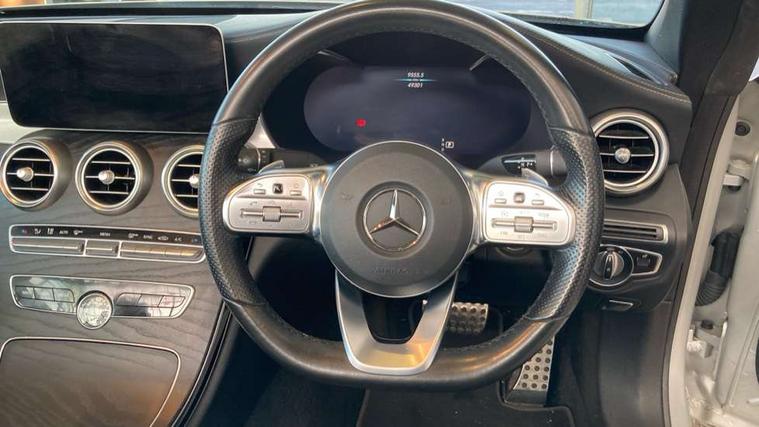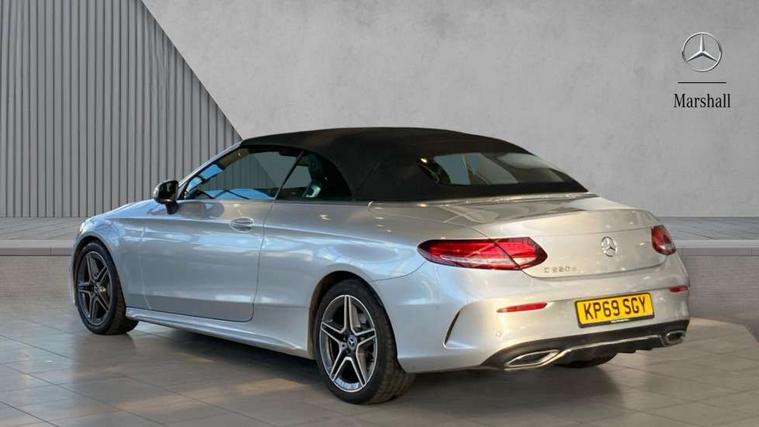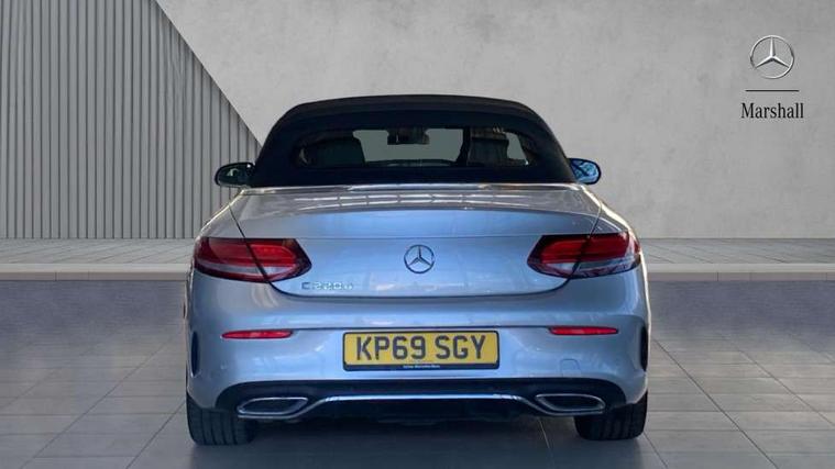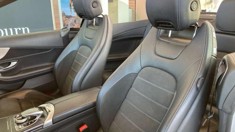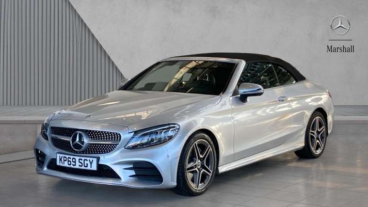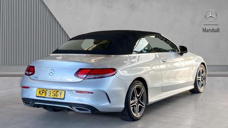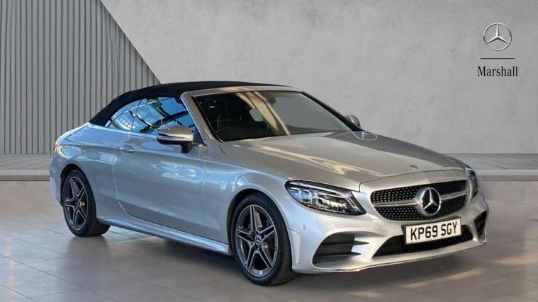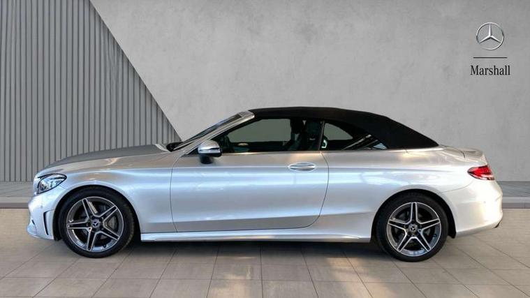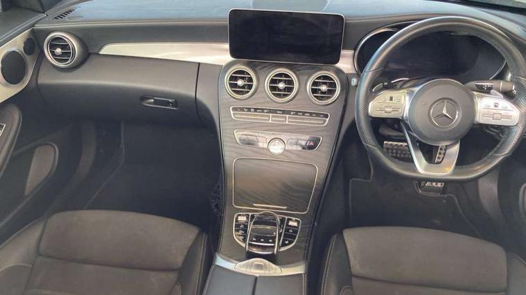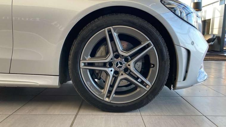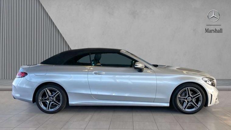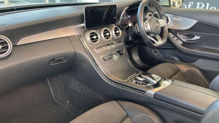 12.3" Active TFT crystal driver's instrument display, Active park assist with parktronic system, Attention assist, Bluetooth interface for hands free telephone, Collision prevention assist plus, Comand Online HDD Nav with media interface, radio/CD/DVD/MP3, 10.25 screen, linguatronic voice control, DYNAMIC SELECT with a choice of driving modes (ECO, Comfort, Sport, Sport+ and Individual), ECO start/stop function, Mercedes me connect including emergency call system, accident recovery, breakdown and maintenance management, Multi function trip computer, Outside temperature gauge, Pre-wiring for SD navigation system, Remote boot release, Reversing camera, Service indicator (ASSYST), Smartphone integration with Apple CarPlay and Android auto, Speed sensitive steering, Sports direct steer speed sensitive steering, Status display for rear seat belts in instrument cluster, Wireless charging, 66l fuel tank with increased capacity, 9G Tronic plus 9 speed automatic, Diesel particulate filter, Audio 20 with integrated media interface and bluetooth handsfree function, DAB digital radio tuner, Mid-range sound system, SD card slot, Steering wheel audio controls, Two USB ports and one SD Card slot in centre console, Acoustic soft-top with enhanced climate and noise comfort, Adaptive brake lights, AIRCAP wind deflector and draught stop, AMG front, rear apron and side skirts, Body coloured bumpers, Body coloured door mirrors, Chrome grille surround, Chrome pins diamond radiator grille with integrated stars, Door sill plates with "Mercedes-Benz" lettering, Electric windows with one touch opening/closing and obstruction sensors, Exterior mirrors heated and electronically adjustable, Full LED tail lamps, Green tinted glass, LED daytime running lights, LED Indicators, LED third brake light, Multi beam LED headlights, Radio aerial integrated into rear window, Rain sensor windscreen wipers, Semi-automatic boot separator, Side windows surround in polished aluminium, Visible twin pipe exhaust trim integrated into rear bumper, 2 cupholders in front centre console, 2 rear head restraints, 3 spoke flat bottom multi-function leather AMG steering wheel, 40:20:40 split folding rear seats, Airscarf - neck level heating, Artico man-made leather upper dashboard and beltlines with contrast stitching, Auto Mercedes-Benz child seat recognition sensor, Black floor mats with AMG lettering, Front centre armrest with storage compartment, Front LED reading lights, Heated front seats, Illuminated glove compartment stowage, Interior lighting - 64 colour Ambient lighting, Sports pedals with stainless steel surfaces and rubber studs, Sports seats with integrated headrests, Steering wheel gearshift paddles, Sunvisors with illuminated vanity mirrors, THERMATIC 2 zone automatic climate control, Interior lighting package - C Class, Mirror package - C Class, Seat comfort pack - C Class, Stowage space pack - C Class, 2 rear seatbelts, 3 point automatic seatbelts, Active bonnet, Adaptive brake system with hold function, hill start assist and brake drying function, Anti-lock braking system (ABS), Automatic seatbelt pretensioner for driver and front passenger, Black seat belts, Brake calipers with Mercedes-Benz lettering + perforated brake discs, Dual stage airbags - driver and front passenger, front sidebags, driver kneebag, pelvis bag and windowbags for driver, front and rear passengers, Electronic parking brake, Electronic Stability Programme (ESP), Front seatbelt pretensioners, ISOFIX child seat attachment points with top tether in rear, Tyre pressure monitoring system, Warning triangle and first aid kit, Anti-theft alarm system/interior protection with tow-away protection and interior monitoring systems, Central locking with interior switch, automatic locking and crash sensor with emergency opening function, Chrome surround in electric key, Immobiliser, Black ash wood with aluminium door trims and analogue clock, TIREFIT with tyre inflation compressor,