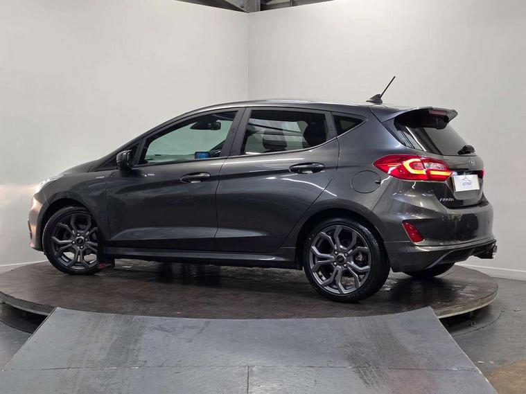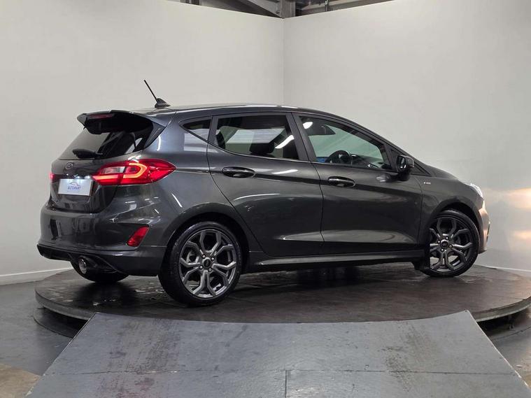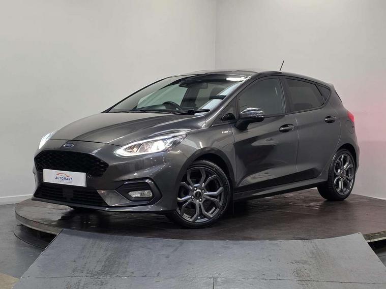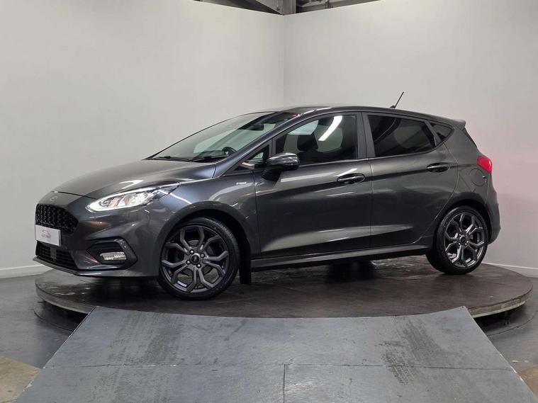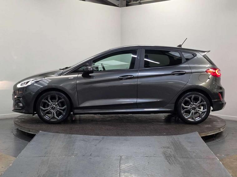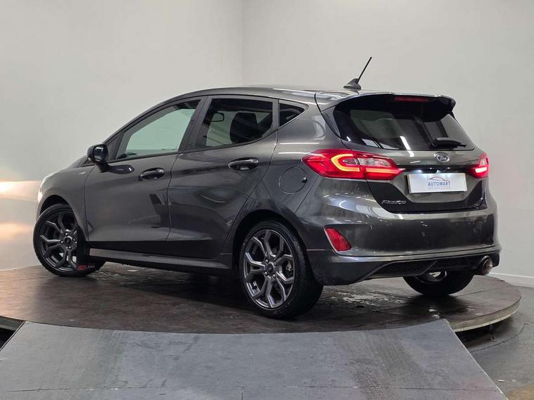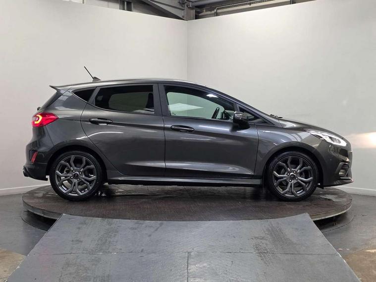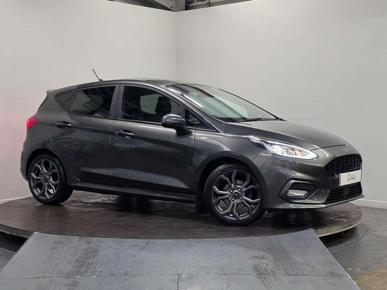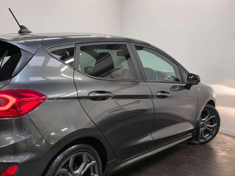 Bluetooth system, Electric power steering, Ford easy fuel, Trip computer, Sports suspension, 2 USB ports, Auxiliary input socket, DAB Digital radio, Steering wheel mounted controls, Auto dimming rear view mirror, Automatic headlights, Body colour bumpers, Body colour door handles, Body colour electric adjustable heated door mirrors with integral indicators, Body colour large rear spoiler, Chrome door handles, Chrome lower window surround, Cornering front fog lights, Electric front windows/one touch facility, LED Night signature to rear lights, LED rear lights, Power foldable door mirrors with puddle lights, Quickclear heated windscreen, Rain sensing wipers and auto dimming rear view mirror, Rear privacy glass, Rear wiper, Rugged body styling kit with active front wing badges, Tinted glass, Unique ST-Line upper grille & full bodystyling kit with ST-Line wing badges, 12V Accessory socket in centre console, 3 spoke flat bottomed leather steering wheel, 60/40 split folding rear seat, Adjustable head restraints, Black headlining, Boot carpet, Centre console with armrest and illuminated cupholders, Chrome inner door handles, Drivers and Passenger lumbar support, EATC - Electronic Auto Temperature control, Footwell illumination, Front and rear velour floor mats, Front map reading lights, Front seat and rear pockets, Illuminated glovebox, Leather gear knob, Leather trimmed handbrake handle, Load area light, Overhead console with sunglasses holder, Pollen filter, Rake/reach adjustable steering wheel, Rear centre head restraint, Sports front seats, Sports pedals, Driver assistance pack - Fiesta/Titanium/Titanium X/Active B+O/Active X/ST-Line X, NCAP Pack - Fiesta, Red pack - Fiesta ST-Line X, 3 point seatbelts on all rear seats, ABS+EBA, Curtain airbags, Driver and passenger airbags, Drivers knee airbag, Electronic stability control with hill start assist, Front passenger airbag deactivation, Front side airbags, Seatbelt warning, Tyre pressure monitoring system, MyKey system, Remote central locking & engine immobiliser, Thatcham Cat.1 alarm,