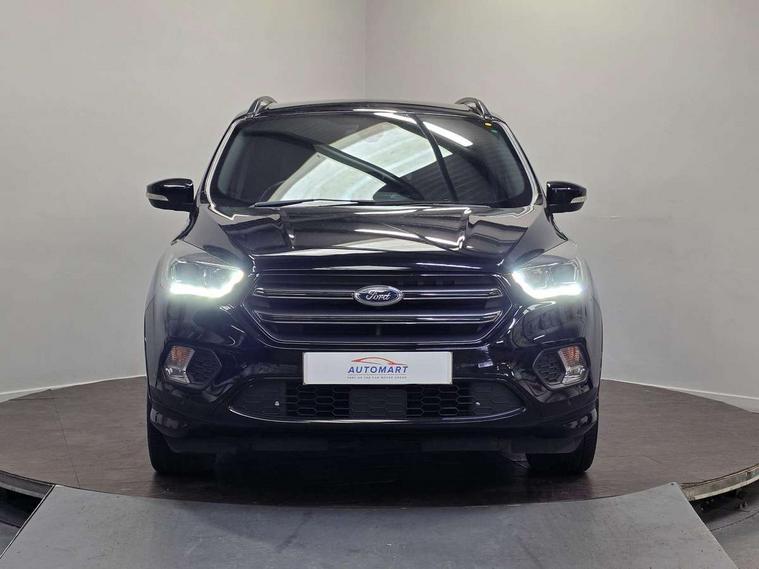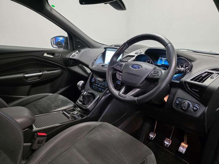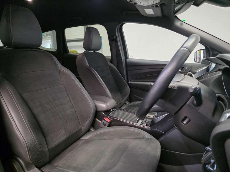 Enhanced active park assist including perpendicular parking pull out assist and flank guard, EPAS, Rear parking sensor, SYNC Emergency Assistance, Trip computer, Sports suspension, Auxiliary socket for external device, Remote audio controls on steering wheel, USB connection, Auto dimming rear view mirror, Automatic headlights, Black roof rails, Body colour bumpers, Body styling kit, Electric folding mirrors, Electrically heated door mirrors, Front scuff plate, LED daytime running lights, Power front and rear windows, Quickclear heated windscreen, Rain sensor windscreen wipers, Rear diffuser, Tailgate wash/wipe, Twin exhaust pipes, 60/40 split/folding rear back and cushion, Alloy Foot Pedals, Auxiliary power socket in luggage area, Centre console with stowage tray/bottle holder/CD stowage/front and rear 12V power point, Dark headlining, Dinamica/Leather Upholstery, Driver seat lumbar adjustment, Driver/passenger front seatback pockets, Driver/passenger seats fore/aft adjustment, Dual electronic automatic temperature control, Floor mats with contrast stitching, Folding rear centre armrest, Footwell courtesy lights front and rear, Front head restraints, Front overhead courtesy lights with theatre style dimming and delay, Front/rear reading lights, Isofix system on outer rear seats, Leather gearknob, Leather steering wheel, Passenger lumbar support, Reach + rake adjustable steering column, Rear floor mats, Rear head restraints, Sports style front seats, Stowage unit in upper instrument panel, Tie down hooks, Tonneau cover, Variable intensity instrument illumination, 3 point seatbelts on all 3 rear seats, ABS/EBD, Driver and passenger airbags, Driver and passenger side airbags, Electric traction assist system, Electronic parking brake, ESP+EBA, Front and rear curtain airbags, Hill start assist, Intelligent Protection System (IPS), Tyre pressure monitoring system, Immobiliser, Keyless start, Locking wheel nuts, Remote central locking, Thatcham Cat.1 alarm, Mini steel spare wheel,