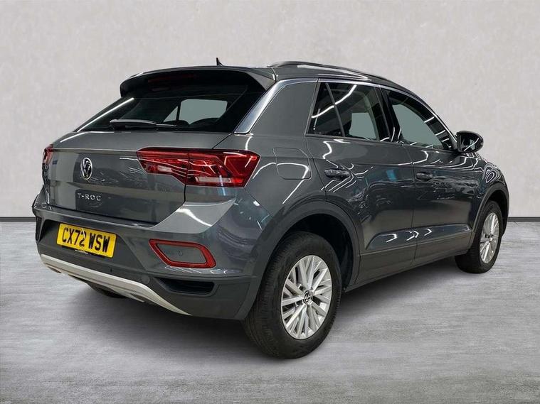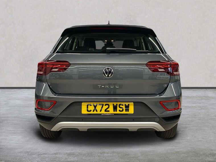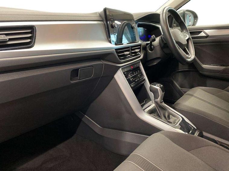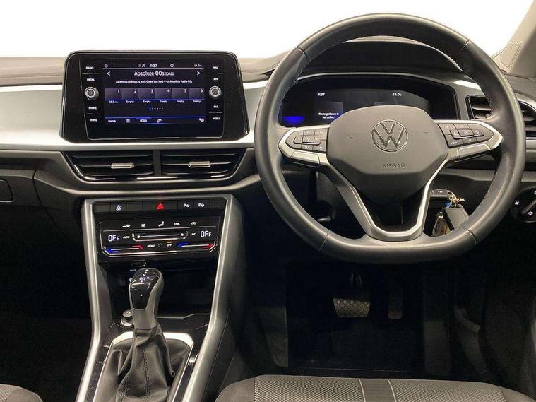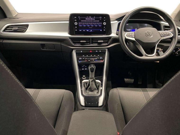 Bluetooth mobile phone interface, Driver alert system with fatigue detection, Driver tips and journey analysis, Emergency call service, Lane keeping system Lane Assist, Modified key software - reduce switch off time for key status change to Long no motion, Online services, Park assist including front and rear parking sensors, Power assisted speed sensitive steering, Service interval indicator, Tailgate/trunk lid release from outside, Think blue trainer driver tips and journey analysis, Warning sound and light for front seatbelts unfastened, Wireless app connect, Battery regeneration during braking, Front shock absorption, Rear shock absorption chassis with increased ride height, Start/stop function with battery regeneration, DAB Digital radio, Diversity antenna for FM reception, Front and rear 6 speakers, Music playback - MP3, WMA and AAC files, Premium USB cable in choice of either Apple or Android smartphone compatibility, SD card slot, Simultaneous pairing of 2 compatible mobile devices, Title and cover art display, We Connect and We Connect Plus functionality, 3rd brake light, Auto dimming interior rear view mirror, Automatic hazard lights activation under emergency braking, Automatic headlight control with LED separate daytime running lights with coming/leaving home function, Black roof rails, Body coloured bumpers and radiator grille with chrome trim and front fog lamps with chrome bezel, Body coloured exterior mirror housings and door handles, Extended roof spoiler, Exterior mirrors aspherical on driver side, convex on front passenger side, External USB type C socket and charging sockets, Front windscreen wiper with intermittent wipe and 4 position delay, Heated rear window, LED Headlights, LED rear combination lamps, LED rear number plate lights, LED tail lamp rear comination lamps, Power windows with comfort operation and circuit breaker, Rain sensor, Rear exhaust tailpipe, Rear fog light on one side and reversing lights on both sides, Rear side wing doors, Rear wash/wipe with intermittent wipe setting, Remote electrically foldable door mirrors, puddle lights and reverse activated passenger's door mirror, 12V power socket in centre console, 3 rear head restraints, 3 seat bench in 2nd row, 4 load lashing points in luggage compartment, Air care climatronic air conditoning system with active combination filter and 2-zone temperature control, Ambient lighting with mirror logo projection, Cloth upholstery, Door and side trim panel in cloth, Drawer under drivers seat, Driver/front passenger seat height adjustment, Front centre armrest, Front comfort sports seats, Front cupholders x 2, Front reading light, Instrument lighting, white adjustable panel illumination, Interior light delay, Isofix child seat preparation, Leather gearshift handle, Load-through provision with cup holder when folded down ('Unsplit rear seat bench, split folding backrest, with centre armrest), Luggage compartment lighting, Lumbar support for driver's and front passengers seat, Non-folding front passenger seat backrest, Single front passenger seat, Storage compartment in left and right luggage area, Storage compartment in rear doors, Storage compartments in driver and front passenger doors, Sunvisors with illuminated vanity mirrors, Variable boot floor, height adjustable and removable, Driver assistance pack without proactive passenger protection - T-Roc, 3 point height adj front seatbelts + pretensioners, 3 point seatbelts in outer rear with ECE label, ABS, Child locks on rear doors, Driver and front passenger airbag with front passenger airbag deactivation, Driver and front passenger safety-optimised head restraints, Drivers seatbelt reminder, Electronic parking brake, Electronic Stability Control (ESC) inc EDL (Electronic Differential Lock) and ASR (Traction Control), Front and rear passengers curtain airbag system including front side airbags, Front assist with city emergency braking and pedestrian monitoring, Front disc brakes, Front seat side impact airbags, Hill start assist, Predictive pedestrian protection, Rear disc brakes, Single tone horn, Tyre pressure loss indicator, Volkswagen roadside assistance, Alarm with interior protection, Anti-theft alarm system with interior monitoring, backup horn, and towing protection, Remote central locking with SAFELOCK, radio remote control with 2 remote control folding keys, Pewter matt decorative inserts for intrument panel, centre console and door panels at the front, Trims for alloy wheels,