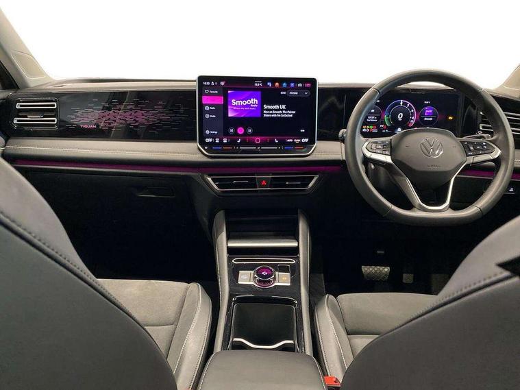 Adaptive cruise control (ACC), Advanced driver attention and drowsiness monitor, Bluetooth mobile phone interface, Car2X technology, Comfort drive travel assist, lane keeping system, lane assist and emergency assist, Digital Cockpit Pro - 10.25" high resolution dash display screen with customisable menus and information, Dynamic road sign display, E-Sim card for online connectivity, eCall emergency call service, Front Assist - Autonomous emergency braking with pedestrian and cyclist monitoring, Lane change system, Side assist, Rear traffic alert and Exit warning system, Multifunction front facing camera, Oncoming vehicle braking when turning including swerve support, Park assist pro with park distance control (Remote park assist), Power assisted steering with speed sensitive, Start/stop system with regenerative braking, Warning signal and warning light for front and rear seatbelts not fastened, Wireless App-Connect, Adaptive chassis control DCC pro includes driving mode selection, Charging cable Mode 3 Type 2 / 3 (16A), Front shock absorption, Front wheel drive, Rear shock absorption, Digital radio reception (DAB), Diversity antenna for FM reception, Air intake with Chrome trim, Ambient lighting with logo projection, Auto dimming interior rear view mirror, Automatic headlight control system, Body colored bumpers in R-Line style, Body coloured door handles, Body-coloured exterior mirror housings, Chrome moldings on the side windows, Coming/leaving home lighting function, Heat insulating glass in side and rear windows, Heated rear window, Heated windscreen washer jets, High level 3rd brake light, Illuminated door handle recesses, Illuminated lightline between headlamps, Laminated safety glass from B-pillar backwards 90% tinted, Laminated safety glass windshield, Rain sensor windscreen wipers, Rear fog light on one side, reversing light on both sides, Rear side wing doors, Rear wiper, Silver roof rails, 12V outlet in center console rear and in luggage compartment, 12V socket in centre console, 3 bench rear seats in 2nd row, Air care climatronic 3 zone air conditioning system with rear air conditioning control panel, Carpet mats, front and rear, Centre console with illuminated storage compartment with sliding cover and two drinks holders, Ceramique headlining, Chrome elements on the mirror switch and power window switches and door pulls, Door and side trim panel with leatherette insert, Door sill protectors, Front centre armrest, Interior ambient lighting with 30 colour options, ISOFIX anchors for child seats on outer rear seats and front passenger seat compatible with i-Size, Mechanical rear seat release, Power adjustable lumbar support in front, Rear bench seat, split folding, longitudinally movable and folding with load-through hatch and centre armrest, Safety optimised front head restraints, Single front passenger seat, Sports comfort seats in front, Sun visors with illuminated vanity mirrors, Three rear head restraints, Variable luggage compartment floor, Comfort package incl. Memory feature for Park assist and Safelock - Tiguan, Driver assistance package - Tiguan, 3 point seat belt for centre rear seats, 3 Point seat belts in front with pretensioners, 3 point seatbelts in outer rear with ECE label, Driver and front passenger airbag with front passenger airbag deactivation, Electronic parking brake with auto hold, Front and rear curtain airbags, Front and rear side airbags, Front centre airbag, Front disc brakes, Hill start assist, Manual child proof rear door locks, Rear disc brakes, Two tone horn, Warning triangle, Anti theft wheel bolts, Decorative inserts Cross in dash and front door panels, Interior door handle in matte chrome, Soul instrument panel, Tool kit for tyre mobility set, Tyre mobility kit including compressor and sealing foam,