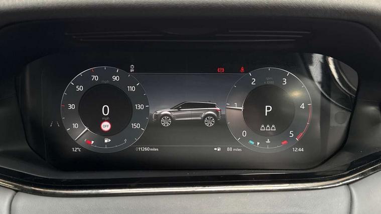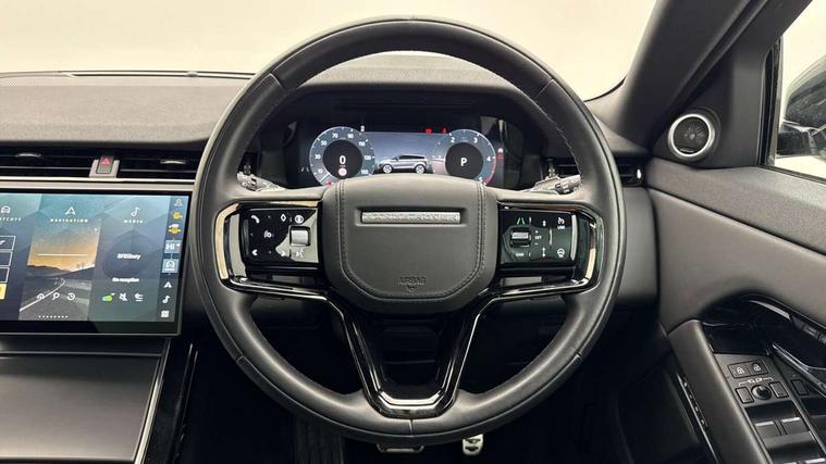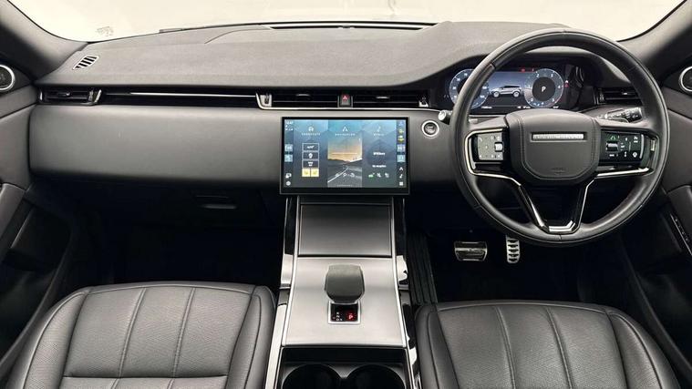 11.4" touch screen, Adaptive cruise control, Android Auto, Apple car play, Blind spot assist, Bluetooth connectivity, Brake pad wear indicator warning light, Driver condition monitor, eCall emergency system, Eco mode, Electronic power assisted steering (EPAS), Front and rear parking aid, InControl remote, Interactive driver display, Land Rover InControl apps, Lane keep assist, Pivi pro connected includes diamond pivi variant, smart settings, connected navigation pro, nuance speech licence, Powered tailgate/boot lid, Rear collision monitor, Rear traffic monitor, Traffic sign recognition with adaptive speed limiter, Voice control system, Wireless device charging, All terrain progress control, Diesel exhaust fluid (DEF) large tank, Efficient Driveline, Large fuel tank, Passive suspension, Terrain Response 2, Digital Audio Broadcast radio-DAB, Steering wheel mounted controls, Acoustic laminated windscreen, Auto headlights, Automatic headlight levelling, Electric windows with one touch open/close and anti trap, Flush deployable exterior door handles, Front and rear recovery eyes, Front fog lights, Heated rear window with timer, Heated washer jets, Heated windscreen, Pixel LED headlights with signature DRL and LED tail Lights, Power fold, auto-dimming, heated door mirrors with approach lights and auto dimming driver side, Rain sensing windscreen wipers, Rear animated directional indicators, Rear fog lights, Rear side wing doors, Rear wiper, Side repeater indicators in mirror, Tailgate spoiler, Third brake light, Winter wiper park position, 14 way driver memory electric front seats with 2 way manual headrests + 4 way lumbar support, bolsters, 40:20:40 split folding rear seats with centre headrest and armrest, Ambient interior lighting, Bright metal pedals, Carpet mats, Chrome tread plates with range rover branding Includes stainless steel loadspace scuff plate with etched graphic, Customer configurable single point entry, Electrically adjustable steering column with memory function and easy entry/exit, Front and rear cupholders, Heated steering wheel, Isofix system on outer rear seats, Overhead lighting console, Overhead stowage for sunglasses, Passive front head restraints, Rear air vents, Rear head restraints, Satin chrome gearshift paddles, Single passenger seat, Sunvisors with illuminated vanity mirrors, Twin sliding front centre armrest, Online pack with data plan - Evoque, Power socket pack 2 - Evoque, 3 rear 3 point seatbelts, Anti-lock braking system (ABS), Brake hold function, Customer configurable autolock, DSC - Dynamic Stability Control, Electronic brake force distribution, Electronic parking brake, Electronic traction control, Emergency braking, Front and rear seatbelt reminder, Hill descent control, Hill launch assist, Low traction launch, Occupant protection assist, Passenger seat occupant detector, Power operated child locks, Roll stability control, Six airbags - Driver and passenger airbags/driver knee airbag/front side airbag and curtain airbags, Torque vectoring brake, Tyre pressure monitoring system, Alarm, Immobiliser, Intrusion sensor, Keyless entry, Locking wheel nuts,