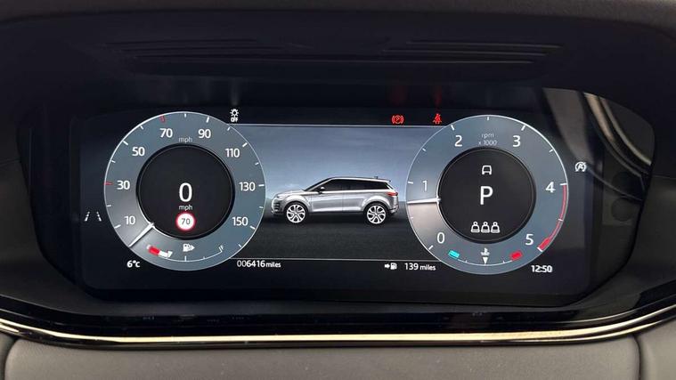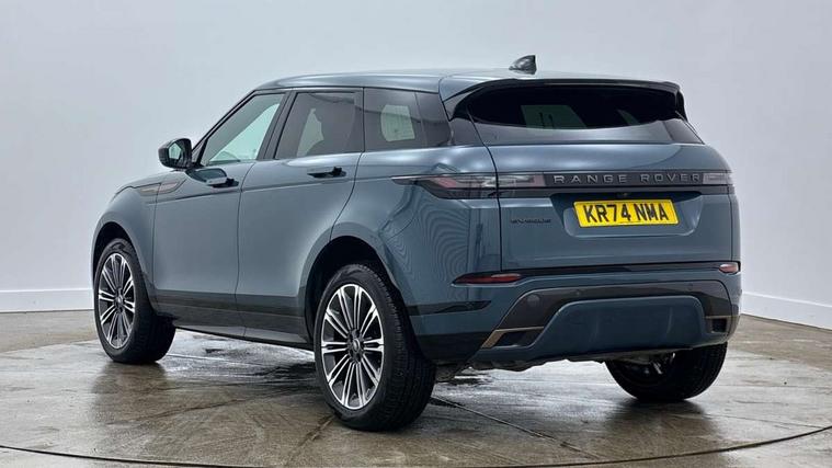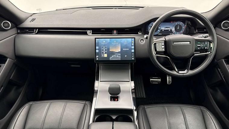 11.4" touch screen, Adaptive cruise control, Android Auto, Apple car play, Blind spot assist, Bluetooth connectivity, Brake pad wear indicator warning light, Driver condition monitor, eCall emergency system, Eco mode, Electronic power assisted steering (EPAS), Front and rear parking aid, InControl remote, Interactive driver display, Land Rover InControl apps, Lane keep assist, Pivi pro connected includes diamond pivi variant, smart settings, connected navigation pro, nuance speech licence, Powered tailgate/boot lid, Rear collision monitor, Rear traffic monitor, Traffic sign recognition with adaptive speed limiter, Voice control system, Wireless device charging, All terrain progress control, Diesel exhaust fluid (DEF) large tank, Efficient Driveline, Large fuel tank, Passive suspension, Terrain Response 2, Digital Audio Broadcast radio-DAB, Steering wheel mounted controls, Acoustic laminated windscreen, Auto headlights, Automatic headlight levelling, Electric windows with one touch open/close and anti trap, Flush deployable exterior door handles, Front and rear recovery eyes, Heated rear window with timer, Heated washer jets, Heated windscreen, Pixel LED headlights with signature DRL and LED tail Lights, Power fold, auto-dimming, heated door mirrors with approach lights and auto dimming driver side, Rain sensing windscreen wipers, Rear animated directional indicators, Rear fog lights, Rear side wing doors, Rear wiper, Side repeater indicators in mirror, Tailgate spoiler, Third brake light, Winter wiper park position, 14 way driver memory electric front seats with 2 way manual headrests + 4 way lumbar support, bolsters, 40:20:40 split folding rear seats with centre headrest and armrest, Ambient interior lighting, Bright metal pedals, Carpet mats, Chrome tread plates with range rover branding Includes stainless steel loadspace scuff plate with etched graphic, Customer configurable single point entry, Electrically adjustable steering column with memory function and easy entry/exit, Front and rear cupholders, Heated steering wheel, Isofix system on outer rear seats, Overhead lighting console, Overhead stowage for sunglasses, Passive front head restraints, Rear air vents, Rear head restraints, Satin chrome gearshift paddles, Single passenger seat, Sunvisors with illuminated vanity mirrors, Twin sliding front centre armrest, Online pack with data plan - Evoque, Power socket pack 2 - Evoque, 3 rear 3 point seatbelts, Anti-lock braking system (ABS), Brake hold function, Customer configurable autolock, DSC - Dynamic Stability Control, Electronic brake force distribution, Electronic parking brake, Electronic traction control, Emergency braking, Front and rear seatbelt reminder, Hill descent control, Hill launch assist, Low traction launch, Occupant protection assist, Passenger seat occupant detector, Power operated child locks, Roll stability control, Six airbags - Driver and passenger airbags/driver knee airbag/front side airbag and curtain airbags, Torque vectoring brake, Tyre pressure monitoring system, Alarm, Immobiliser, Intrusion sensor, Keyless entry, Locking wheel nuts,